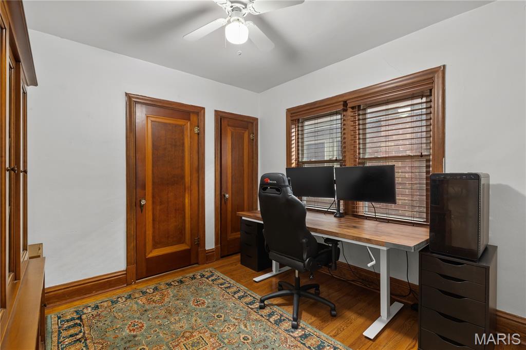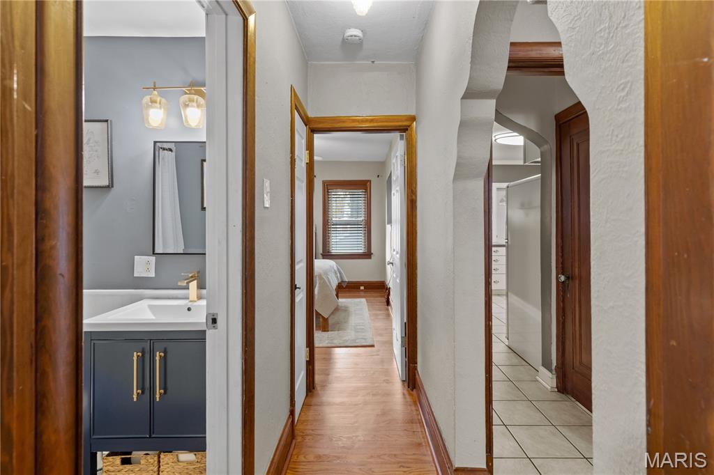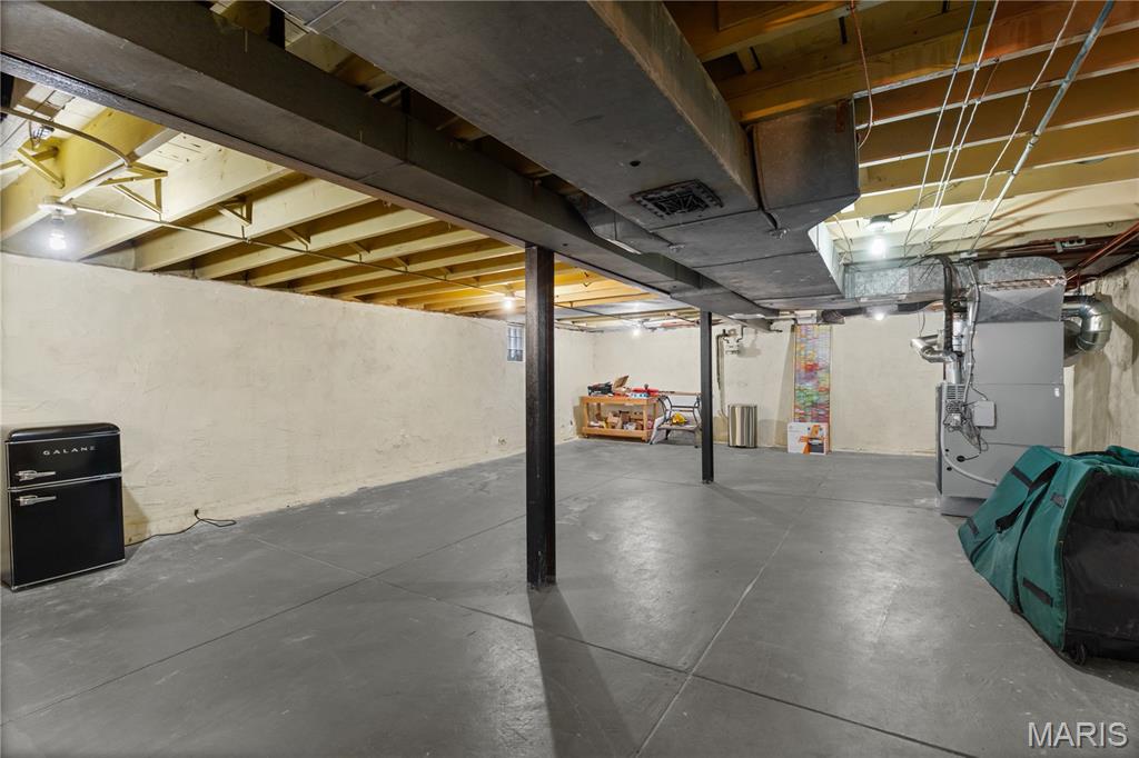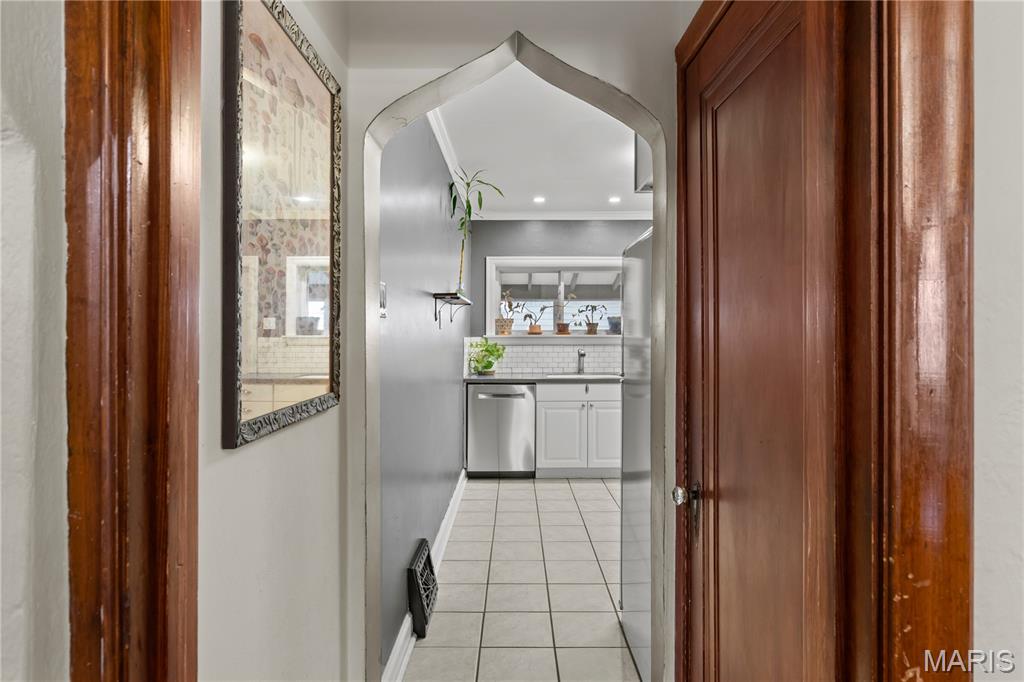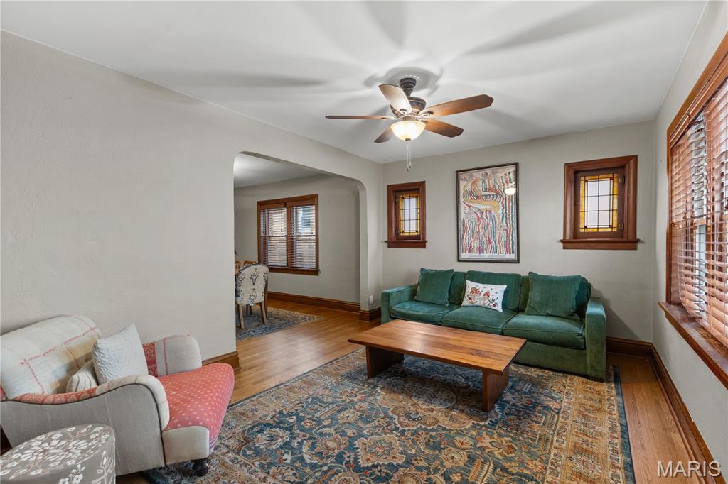 This charming brick home, featuring a welcoming front porch, is move-in ready. The entryway, with rich woodwork and graceful arched detailing, reflects the home’s era and quality. The generously sized living room, with large windows, is bright and inviting, setting the tone for comfortable everyday living. The spacious dining room flows seamlessly from the living area, creating an ideal layout for effortless entertaining. The spacious kitchen showcases abundant cabinetry and counterspace, a stylish backsplash, and stainless appliances, including a five-burner gas stove. A newer retro-style refrigerator/freezer adds both charm and practicality, making this a functional and well-appointed space for any home chef. Direct access to the back porch makes outdoor activities & hobbies so easy. The main floor includes a primary bedroom, a second bedroom, and a stylishly updated full bathroom. Upstairs, a well-sized third bedroom and a versatile bonus room provide space for a family room, home office, studio, or creative retreat. A spacious step-in closet offers ample storage, and a second full bathroom completes the upper level. The backyard is perfect for outdoor leisure and relaxation, while a detached one-car garage adds convenience and functionality. Located within walking distance of restaurants, cafes, and shops, and with easy access to Francis Park, this home combines comfortable living with an excellent location.
