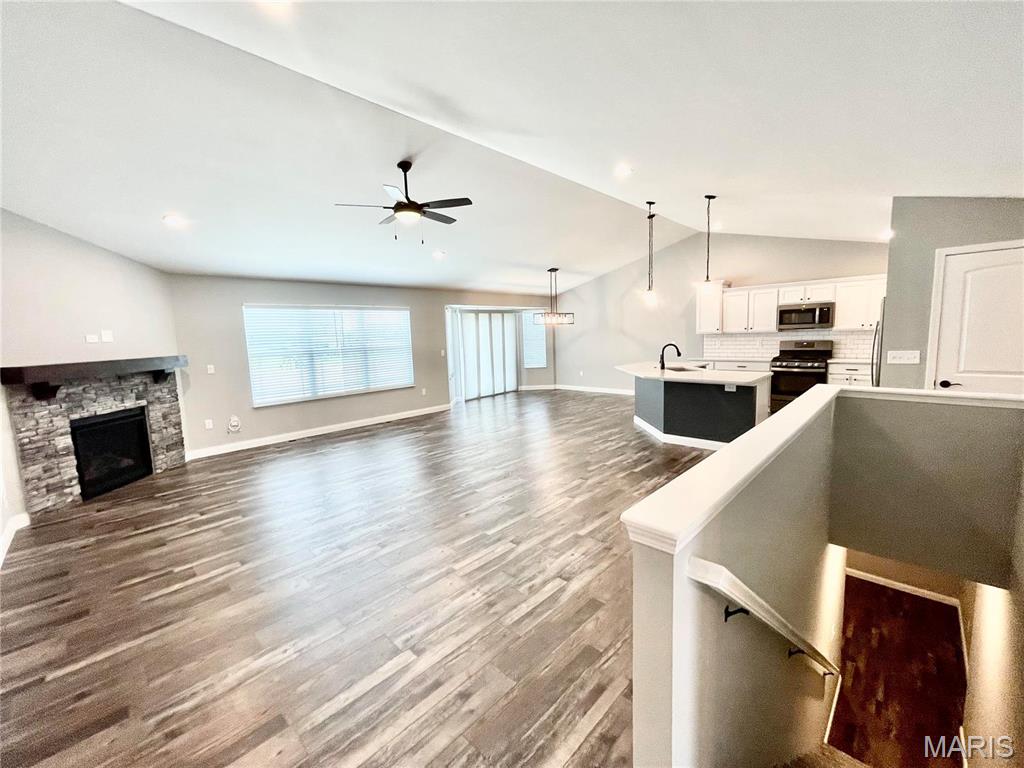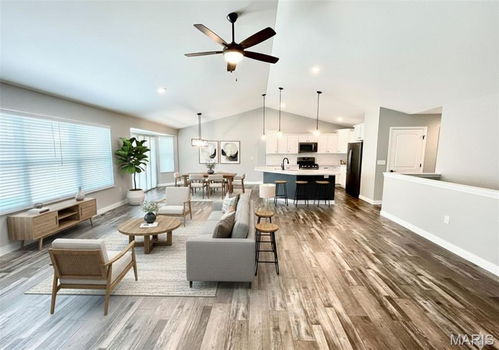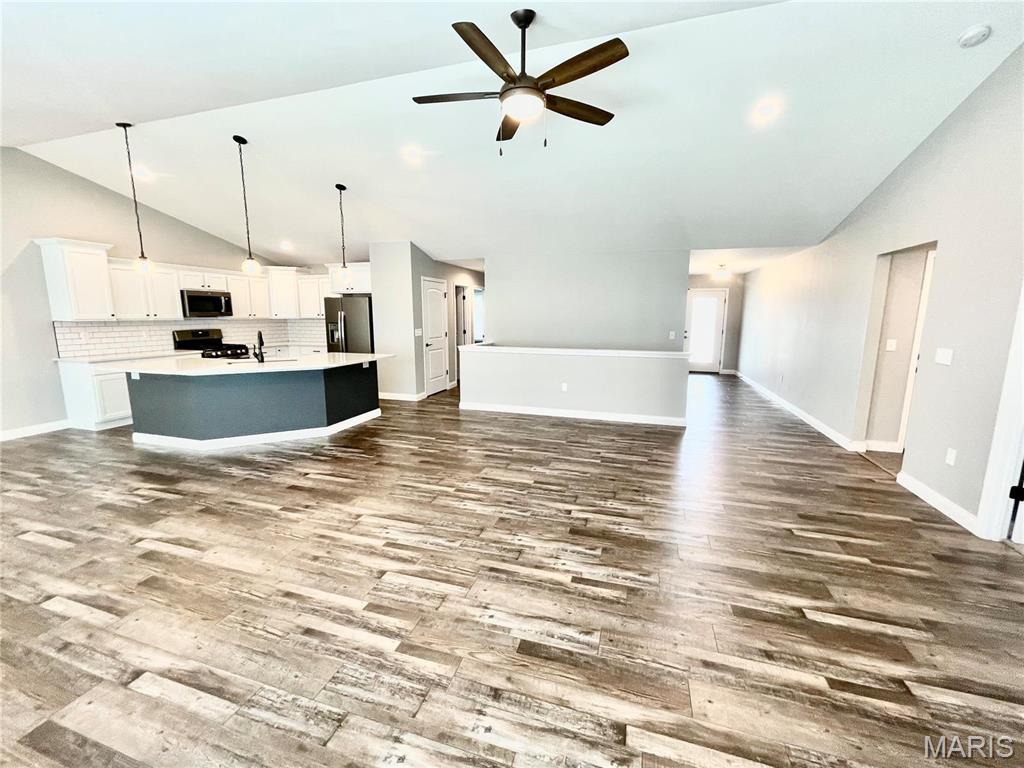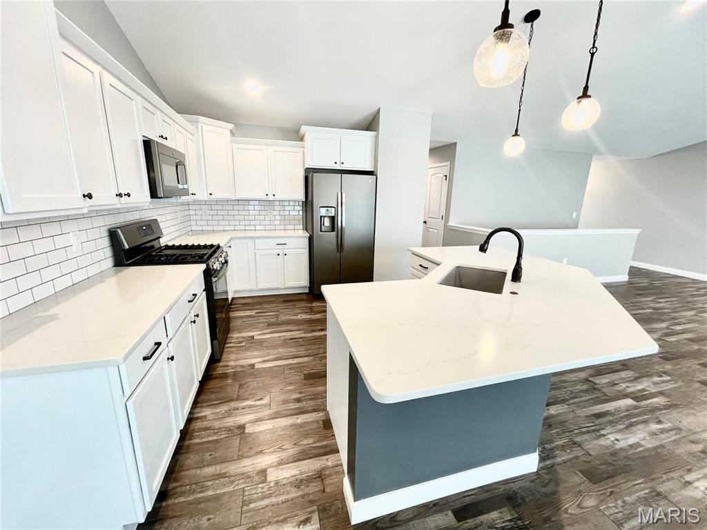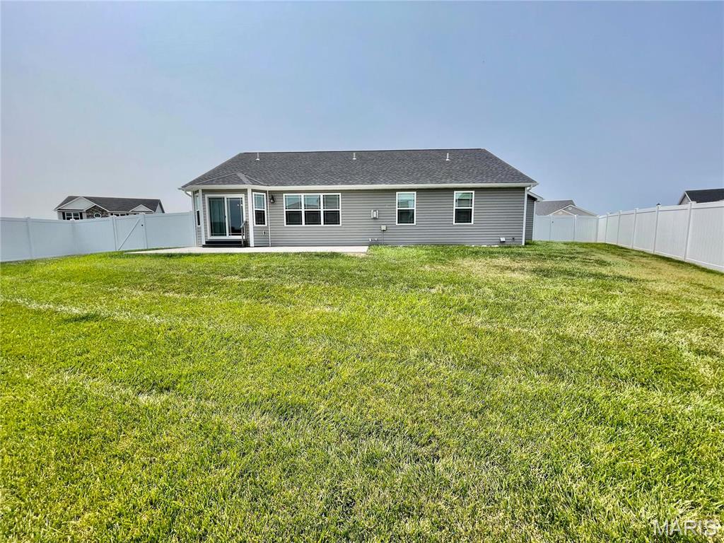 Step into an inviting open-concept layout with soaring ceilings where the living room, dining area, and kitchen flow seamlessly together, filled with abundant natural light and designed for effortless everyday living and entertaining. The kitchen serves as the heart of the home, featuring quartz counter tops and slate colored appliances that all stay with the home, blending style and functionality while expansive living spaces create a warm and welcoming atmosphere. The primary ensuite offers a relaxing, contemporary retreat, thoughtfully separated from the two additional main-level bedrooms for added privacy and comfort. The partially finished basement expands the living space with two additional bedrooms featuring egress windows and a generously sized area ideal for a family rec room, home theater, game space, home office, or fitness studio—offering versatility to meet a variety of lifestyle needs. Enjoy seamless indoor-outdoor living with a beautiful backyard, perfect for hosting gatherings, unwinding after a long day, or enjoying peaceful mornings. A spacious 3-car attached garage provides ample room for vehicles, storage, and hobbies, enhancing both convenience and curb appeal. Additional features include two water heaters, a water softener, and lower-level shelving that stays with the home to keep your storage area organized and functional. Located in the sought-after Mascoutah School District, this home is just minutes from Scott Air Force Base, shopping, dining, playgrounds, walking paths, the Metro East Bike Trail, Wingate Elementary, and everyday amenities—offering the perfect balance of neighborhood charm and accessibility. This property offers an exceptional opportunity for space, comfort, and lifestyle—don’t miss your chance to be among the first to tour this remarkable home.
