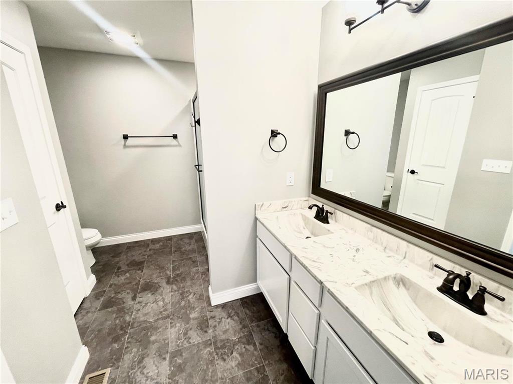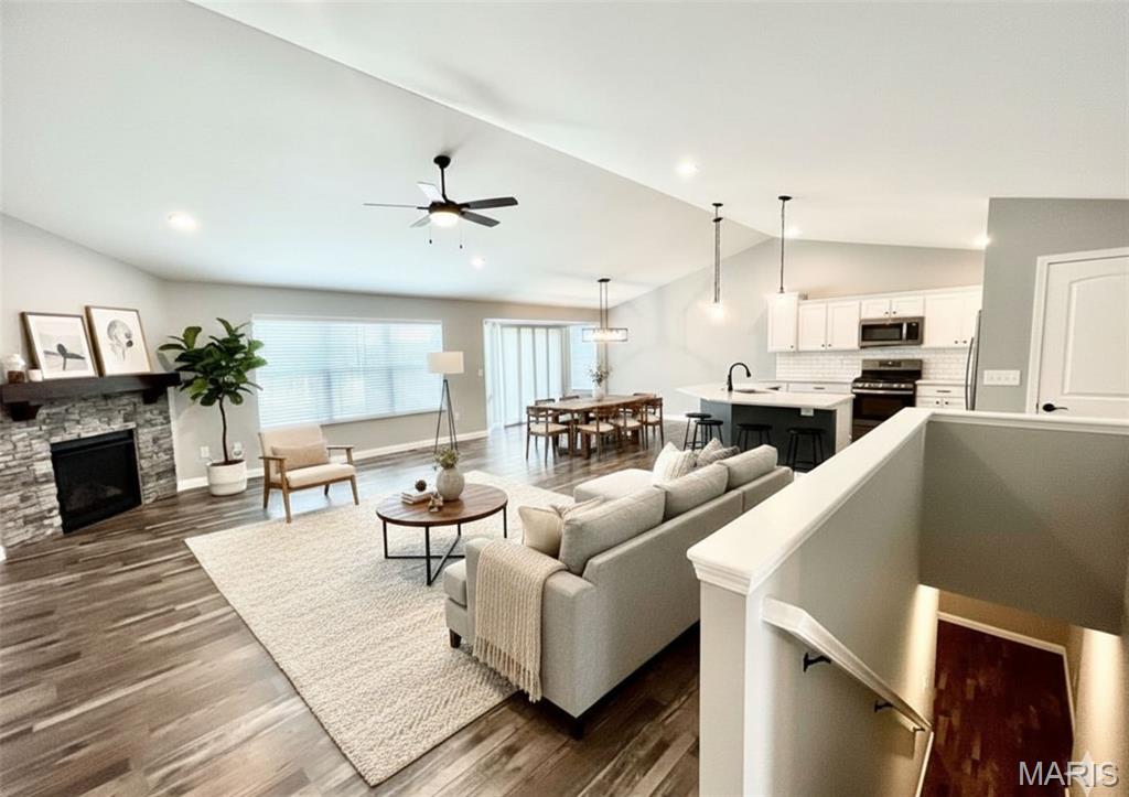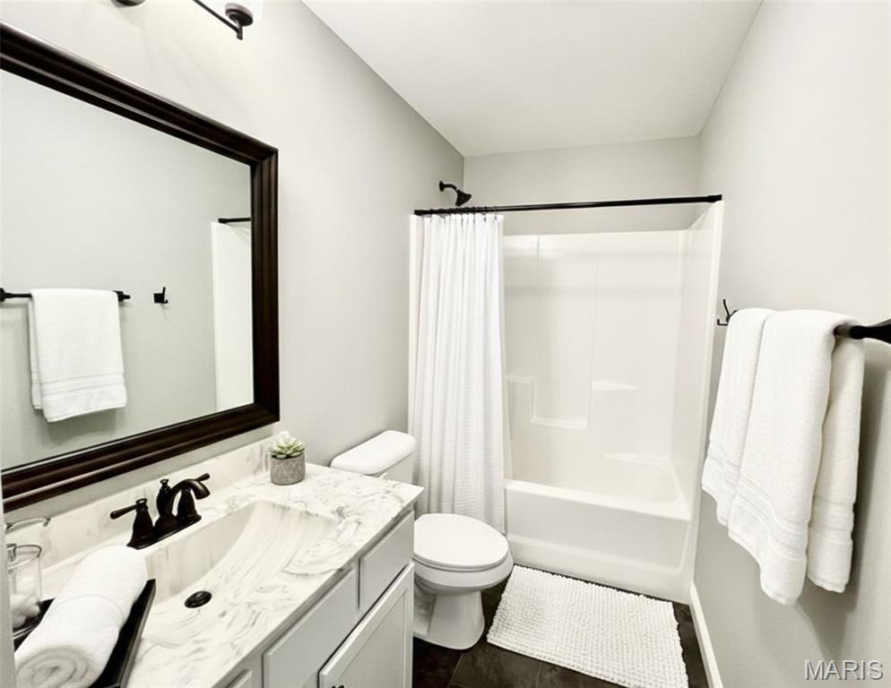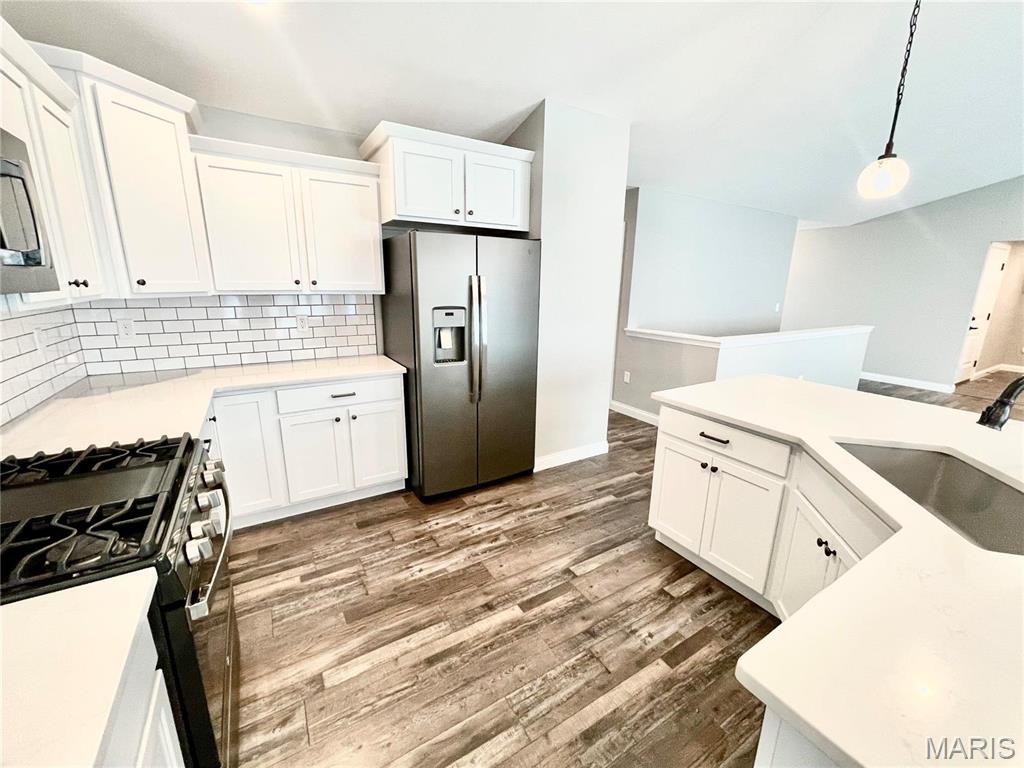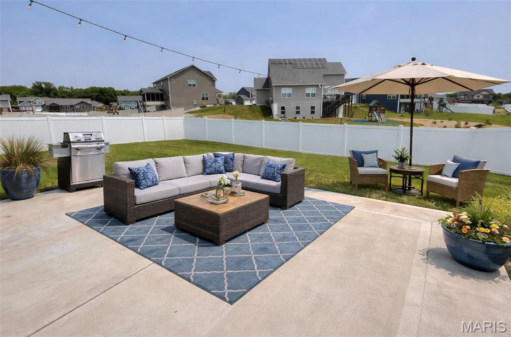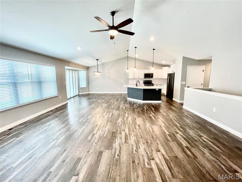Step into an inviting open-concept layout with soaring ceilings where the living room, dining area, and kitchen flow seamlessly together, filled with abundant natural light and designed for effortless everyday living and entertaining. The kitchen serves as the heart of the home, featuring quartz counter tops and slate colored appliances that all stay with the home, blending style and functionality while expansive living spaces create a warm and welcoming atmosphere. The primary ensuite offers a relaxing, contemporary retreat, thoughtfully separated from the two additional main-level bedrooms for added privacy and comfort. The partially finished basement expands the living space with two additional bedrooms featuring egress windows and a generously sized area ideal for a family rec room, home theater, game space, home office, or fitness studio—offering versatility to meet a variety of lifestyle needs. Enjoy seamless indoor-outdoor living with a beautiful backyard, perfect for hosting gatherings, unwinding after a long day, or enjoying peaceful mornings. A spacious 3-car attached garage provides ample room for vehicles, storage, and hobbies, enhancing both convenience and curb appeal. Additional features include two water heaters, a water softener, and lower-level shelving that stays with the home to keep your storage area organized and functional. Located in the sought-after Mascoutah School District, this home is just minutes from Scott Air Force Base, shopping, dining, playgrounds, walking paths, the Metro East Bike Trail, Wingate Elementary, and everyday amenities—offering the perfect balance of neighborhood charm and accessibility. This property offers an exceptional opportunity for space, comfort, and lifestyle—don’t miss your chance to be among the first to tour this remarkable home.