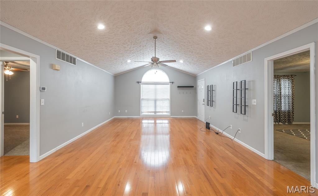 New Year, New Address?! This delightful 4-bedroom, 2.5 bath ranch offers the perfect blend of comfort and convenience in a truly desireable neighborhood. You'll fall in love with the main level vaulted ceilings, beautiful hardwood floors, updated kitchen, main level laundry, and split bedroom floorplan. The full walkout basement provides a fantastic opportunity to customize and expand your living space. You'll find a large bedroom, the half bath(plumbed for a shower), a large bonus living space, storage, and a John Deere garage. Enjoy the outdoor living space with an updated composite deck, fully fenced in yard, backyard patio, and so much more! With the Acorn walking trail, and town amenities just a short stroll away, this home offers so much at an affordable price!! Call today to schedule your private showing.
