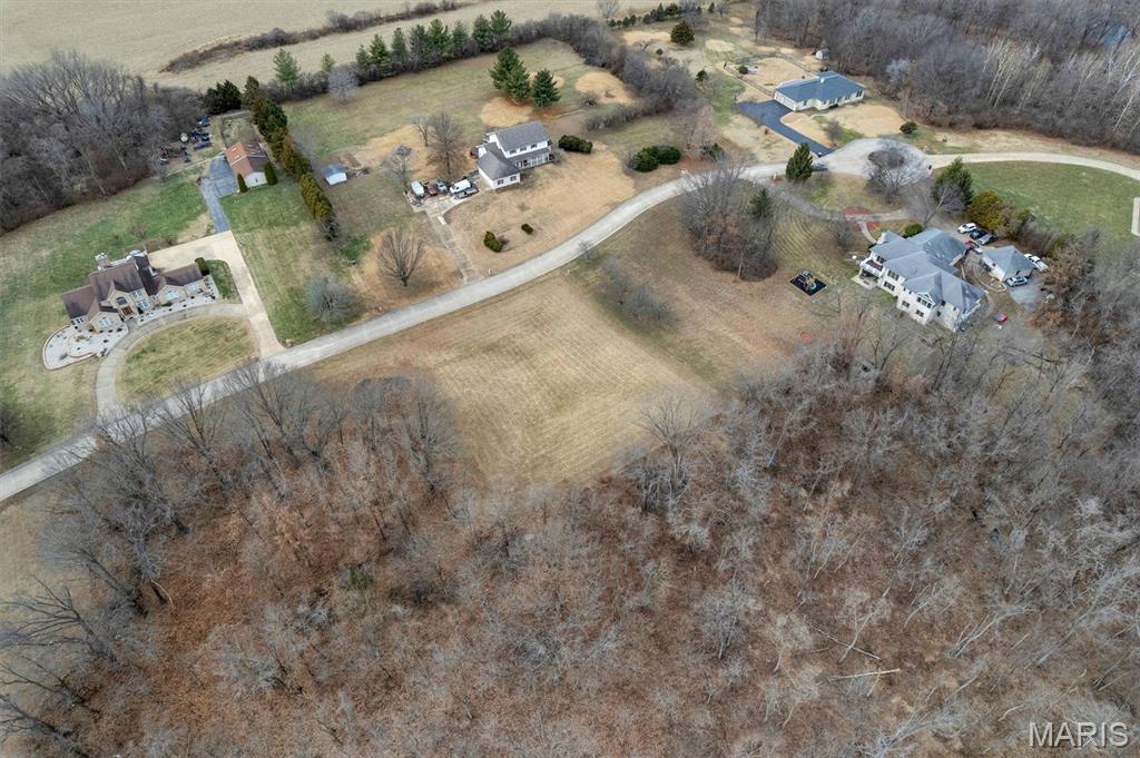 Beautiful 3.12 acre homesite in the desirable Homestead Estates subdivision, surrounded by gorgeous custom estate homes on 3+ acre lots. Approximately 65% wooded with a cleared, level building site already established—ideal love for a beautiful custom new construction home. This level lot sits on higher ground with good natural drainage and is located on a quiet paved street, offering privacy and a natural setting, set back in a quiet park like neighborhood, conveniently close to Lindbergh Blvd, northeast of New Halls Ferry. There is MO American Water (public water), Ameren electric, Spire natural gas, internet and phone in the neighborhood at the street. Neighboring homes are all on their own septic systems, there is no public sewer available. A rare opportunity to build in an established estate-style neighborhood with privacy, mature trees, and beautiful surrounding homes—while remaining convenient to major routes and amenities. Land disclosure and survey are available. Corners are marked.