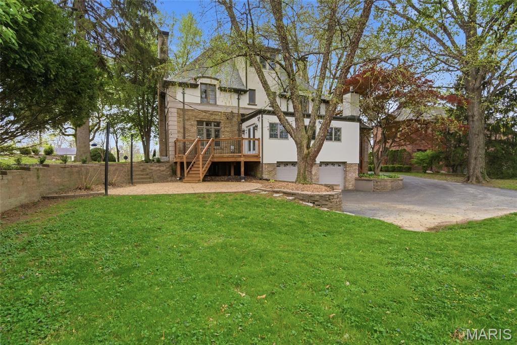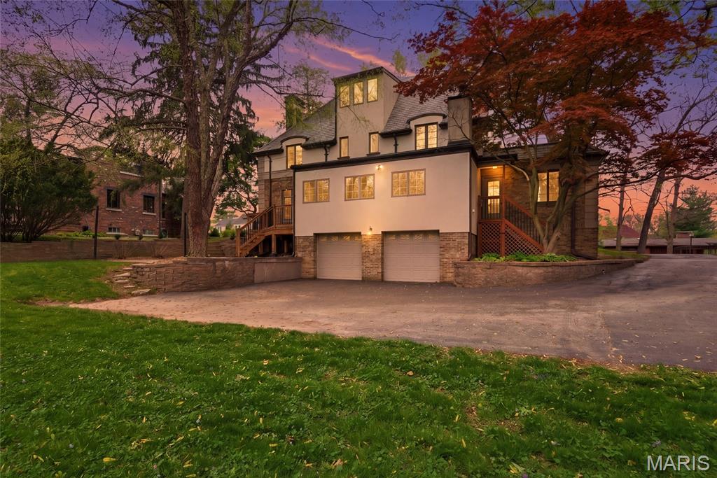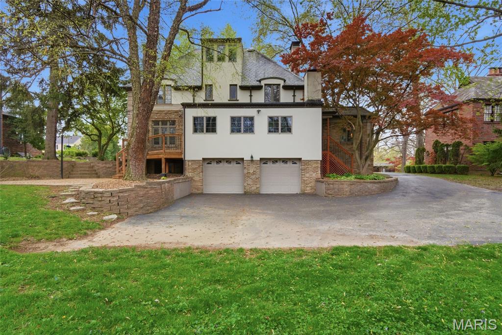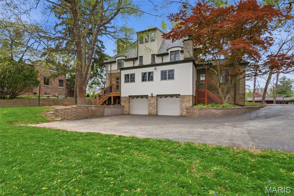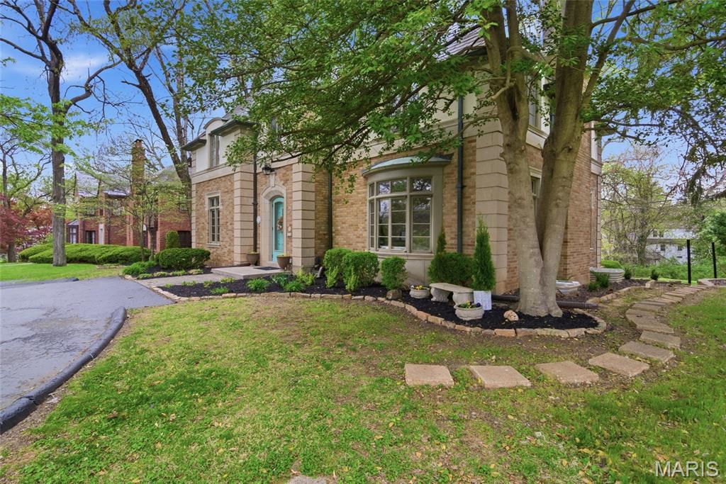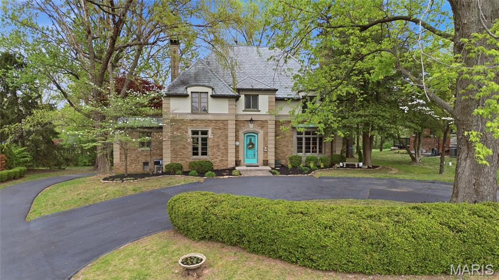A true French Provincial dream, this extraordinary residence in sought-after Country Club Place seamlessly blends timeless architecture, exquisite craftsmanship, and thoughtful modern updates across nearly 5,000 sq. ft. of refined living space. From the moment you arrive, the commanding curb appeal sets the stage featuring a circular drive, lush mature landscaping, striking masonry, and a slate roof accented by copper gutters. Step through the formal foyer and be welcomed by original millwork, gleaming hardwood floors, and elegant crown molding throughout. The main level offers exceptional flow, ideal for both everyday living and entertaining, with a formal living room, cozy family room, formal dining room, breakfast room, and a beautifully updated kitchen complete with granite countertops, stainless steel appliances, and an oversized butler’s pantry. The front living room showcases a stunning wood-burning Italian rathskeller fireplace and a charming bay window with built-in bench seating. Just beyond the breakfast room, the family room features a brick accent wall and gas fireplace, creating a warm and inviting atmosphere. This space opens to a large deck overlooking a two-tiered patio and a picturesque, tree-lined lot with a tucked-away fire pit—perfect for crisp fall evenings under the stars. The second level offers three spacious bedrooms, including the primary suite with a large walk-in closet, two additional closets, and an attached shared full bath with separate tub and shower. Two additional bedrooms and a second full bath complete this level. A tucked-away spiral staircase leads to a charming loft-style bedroom, ideal for guests, a studio, or private retreat. The finished lower level is an entertainer’s dream, featuring a large recreation room with wet bar, built-in refrigerator, a third fireplace, full bath, and bonus sleeping room. Professional waterproofing by Woods Basement Systems provides added peace of mind. Abundant storage is found throughout the home, including a tuck-under two-car garage with a separate storage room. Additional highlights include zoned heating and cooling for year-round comfort. This remarkable home is truly a showstopper—where old-world charm, character, and craftsmanship have been meticulously preserved and thoughtfully enhanced over time. Property is agent owned. Property has passed county inspection! Some photos virtually staged to show potential.