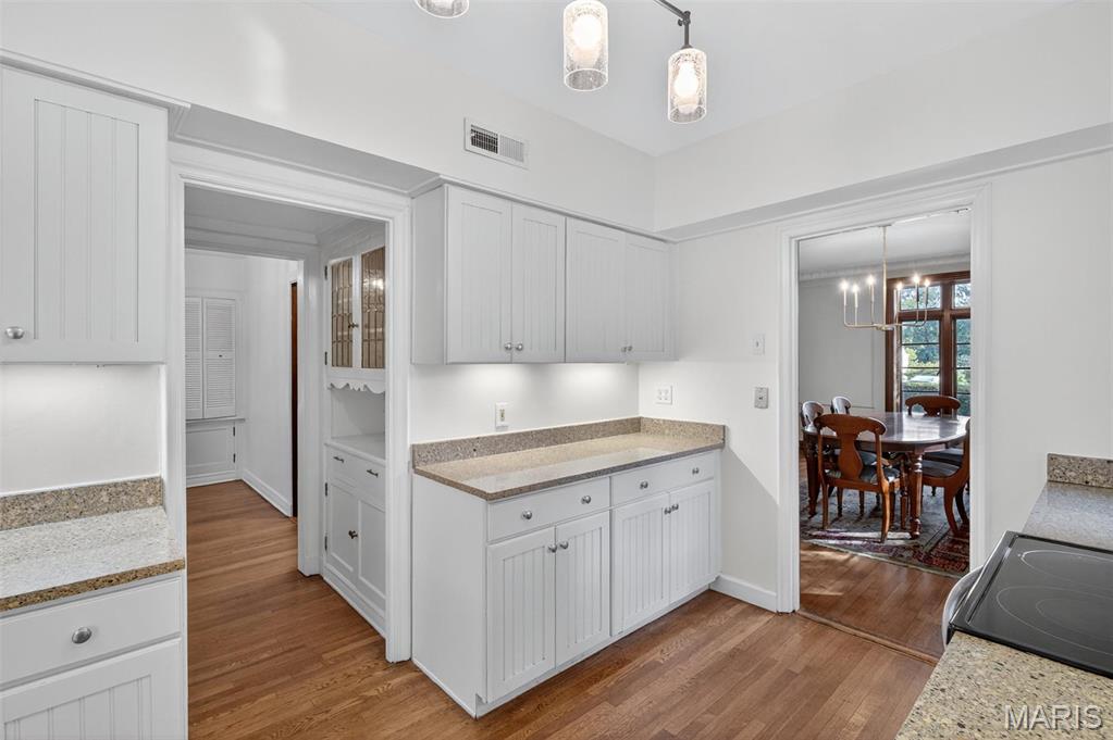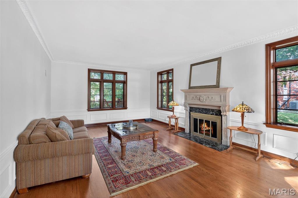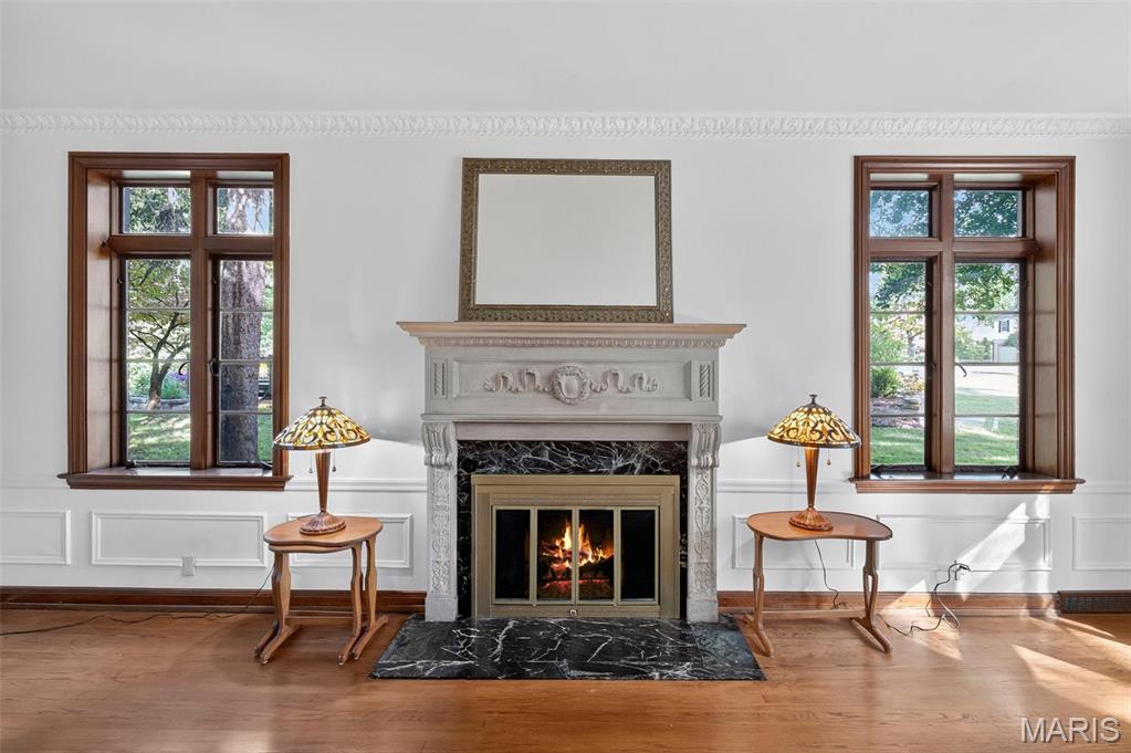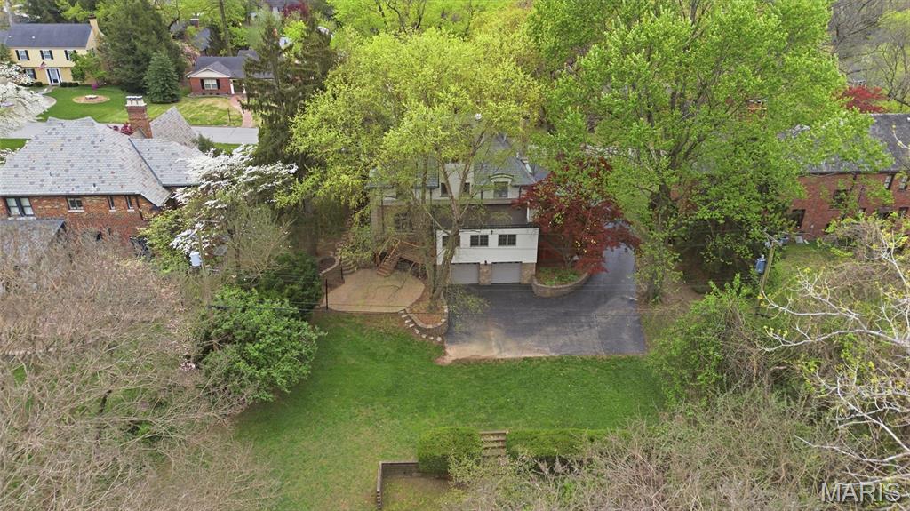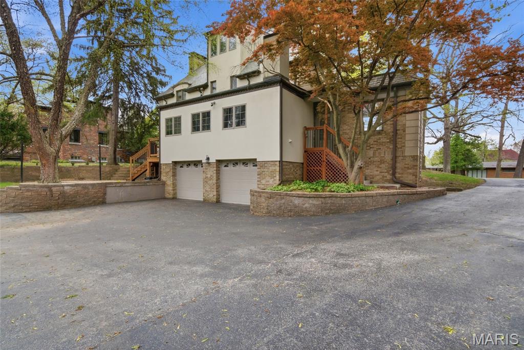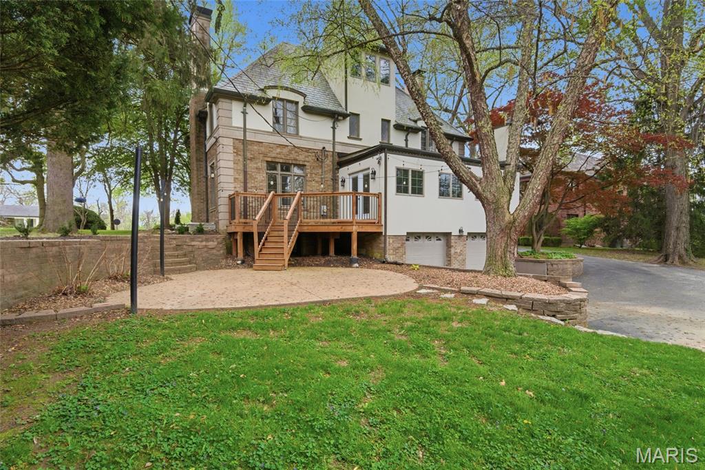 A true French Provincial dream, this extraordinary residence in sought-after Country Club Place seamlessly blends timeless architecture, exquisite craftsmanship, and thoughtful modern updates across nearly 5,000 sq. ft. of refined living space. From the moment you arrive, the commanding curb appeal sets the stage featuring a circular drive, lush mature landscaping, striking masonry, and a slate roof accented by copper gutters. Step through the formal foyer and be welcomed by original millwork, gleaming hardwood floors, and elegant crown molding throughout. The main level offers exceptional flow, ideal for both everyday living and entertaining, with a formal living room, cozy family room, formal dining room, breakfast room, and a beautifully updated kitchen complete with granite countertops, stainless steel appliances, and an oversized butler’s pantry. The front living room showcases a stunning wood-burning Italian rathskeller fireplace and a charming bay window with built-in bench seating. Just beyond the breakfast room, the family room features a brick accent wall and gas fireplace, creating a warm and inviting atmosphere. This space opens to a large deck overlooking a two-tiered patio and a picturesque, tree-lined lot with a tucked-away fire pit—perfect for crisp fall evenings under the stars. The second level offers three spacious bedrooms, including the primary suite with a large walk-in closet, two additional closets, and an attached shared full bath with separate tub and shower. Two additional bedrooms and a second full bath complete this level. A tucked-away spiral staircase leads to a charming loft-style bedroom, ideal for guests, a studio, or private retreat. The finished lower level is an entertainer’s dream, featuring a large recreation room with wet bar, built-in refrigerator, a third fireplace, full bath, and bonus sleeping room. Professional waterproofing by Woods Basement Systems provides added peace of mind. Abundant storage is found throughout the home, including a tuck-under two-car garage with a separate storage room. Additional highlights include zoned heating and cooling for year-round comfort. This remarkable home is truly a showstopper—where old-world charm, character, and craftsmanship have been meticulously preserved and thoughtfully enhanced over time. Property is agent owned. Property has passed county inspection! Some photos virtually staged to show potential.