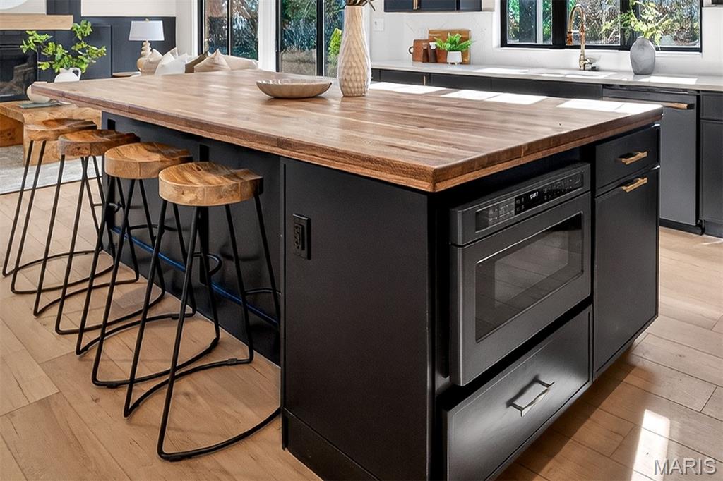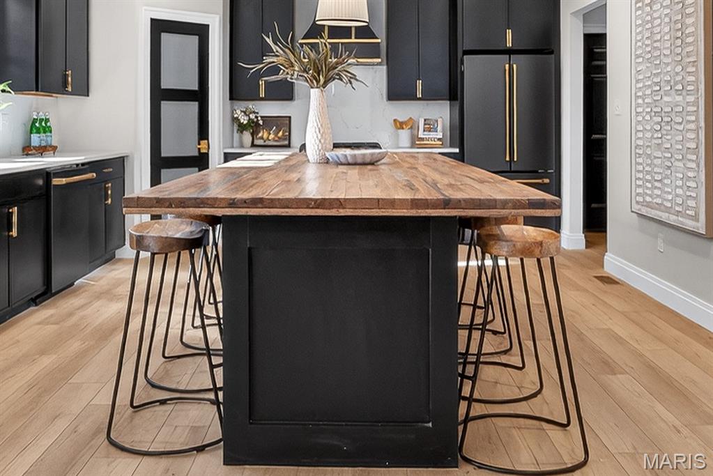 Move In ready, New Construction in Kirkwood! This spectacular home will wow you from start to finish with on-trend features and extraordinary finishes. Offering 5 possible bedrooms, 3 bathrooms, 2,458 sq ft of impressive living space and an open, high-functioning floor design. The wow starts with chic curb appeal and eye-catching color selections. Features inc 9 ft ceilings on the main, tremendous floor plan flexibility on the main with a Flex Room (easily used as a bdr with full bath or a home Office), Dining Room also able to flex as a home Office if used as a 5 bdr, gourmet Kitchen, quartz countertops-backsplash, pop up charging stations, GE Cafe' Matte black appl with brushed brass accents, beverage fridge-island micro-gas range-D/W-refrig, custom range hood, 42 in cabinets with crown, brushed brass designer hardware and lighting, huge island with seating bar and spectacular natural wood countertop, side staircase, open floor plan, gas FP with woodwork surround, oak mantle, luxury vinyl plank flooring, wrought iron stair spindles, accent wall in the DR/Office, raised height vanities, boot bench/cubbies at the Owners entrance, tray ceiling in the Primary Suite, custom tile shower with seat in the Primary Bath, raised height double bowl vanity, walk in closets, convenient second floor laundry, full basement, 12x16 covered patio and more. Desirable Kirkwood schools. Located minutes from Kirkwood Park and downtown Kirkwood. Quality built by Wool Custom Homes, a must see!