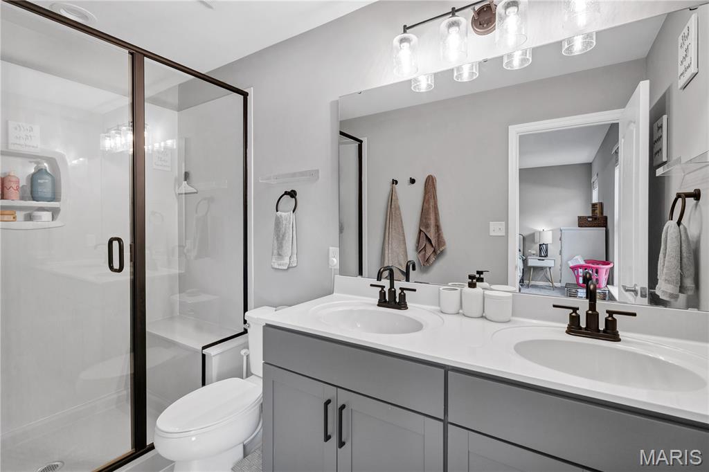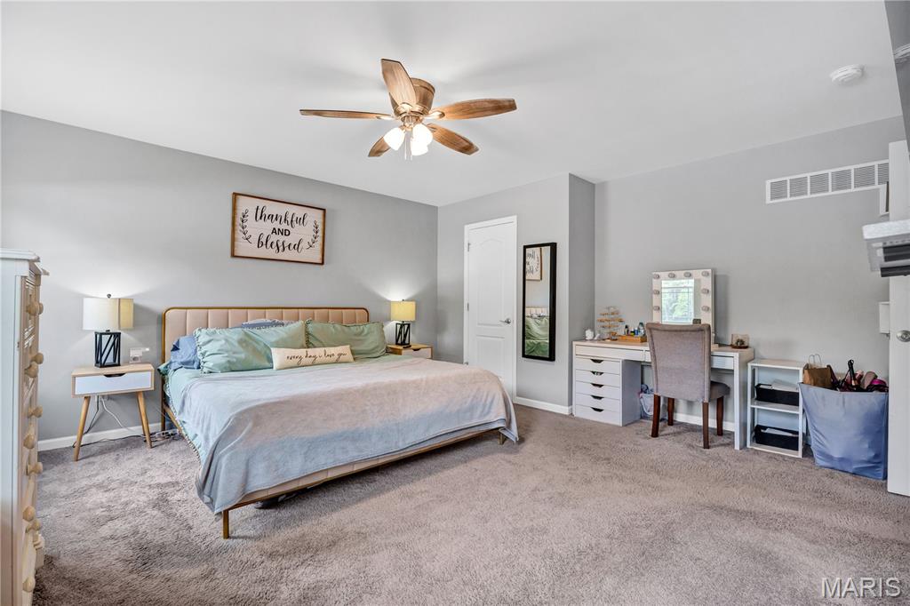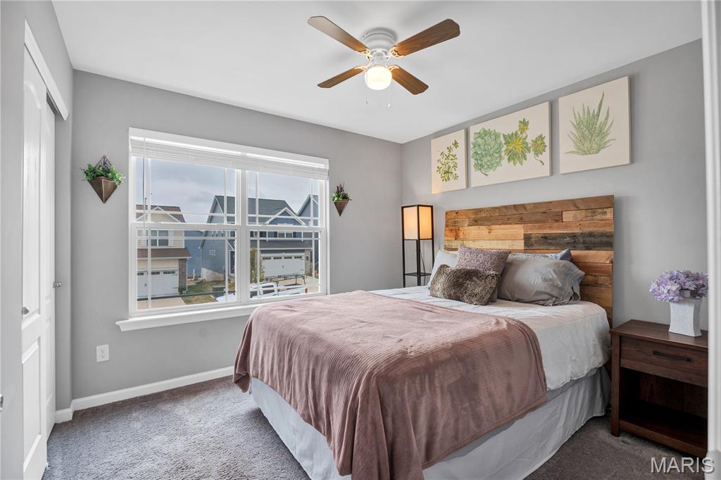 Looking for a home in the Pattonville School District? Discover this beautifully maintained 3+ bedroom, 3.5 bath home with a finished lower level and fully fenced yard—move in ready and only three years old, with thoughtful after market upgrades throughout. Built by Fischer & Frichtel, this two story home offers a layout that feels noticeably more open and spacious than many others in the neighborhood. A charming covered front porch welcomes you inside to an airy open concept main floor featuring generous Living and Dining areas with direct access to the patio and backyard. The stylish Kitchen is designed to impress with 42” cabinetry, a double pantry, quartz countertops, and a tiled backsplash. All appliances stay—including the washer and dryer. A convenient powder room and access to the attached two car garage complete the main level, which is finished with durable, easy care LVP flooring. Upstairs, the bright and spacious primary suite offers a walk in closet and private ensuite bath. Two additional bedrooms, a full hall bath with abundant counter space, and a cozy loft area round out the second floor. The finished lower level expands your living space with a full bath, laundry room, and a large family room featuring an egress window—perfect for a legal fourth bedroom if desired. Newer carpet on the upper level in the Family Room adds warmth and comfort. Located in the Mackay Vista subdivision, right on the Bridgeton/Maryland Heights border within the Pattonville School District, this small private community sits next to Mathews Community Park, offering a playground, ball field, pavilion, and restrooms. With quick access to Dorsett Road, I 70, I 270, and Highway 67—and the added benefit of the Bridgeton Community Center—this neighborhood delivers both convenience and charm. Open House Sun 3/1 1-4