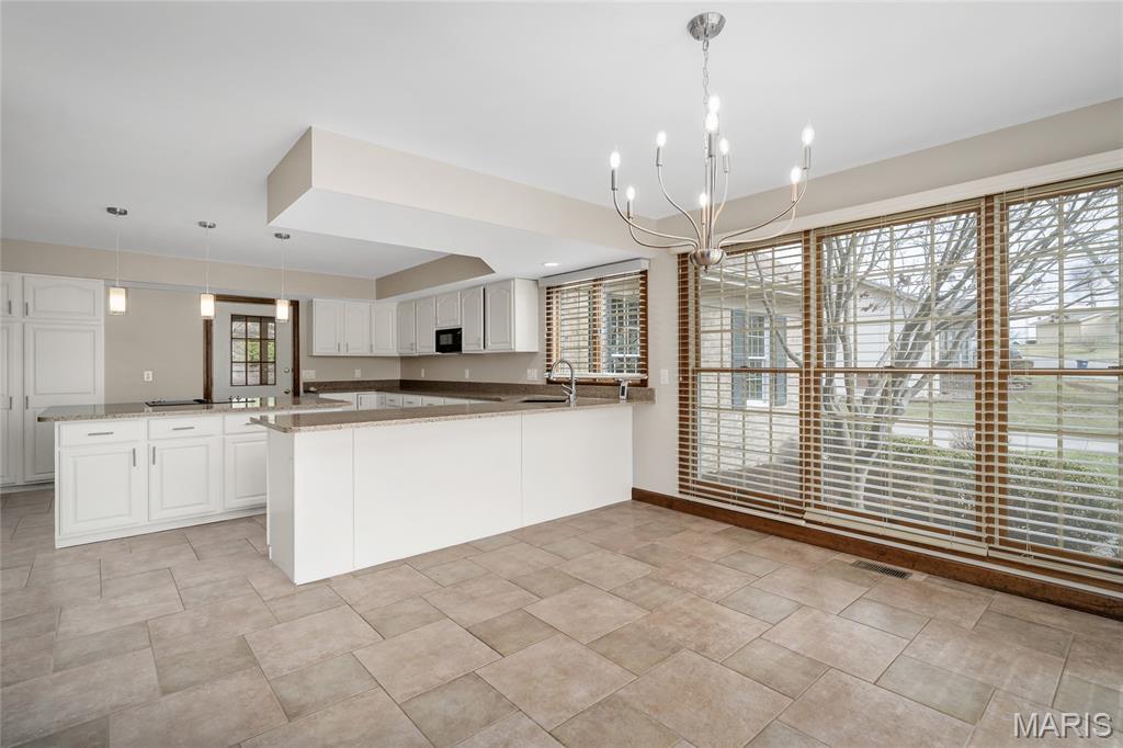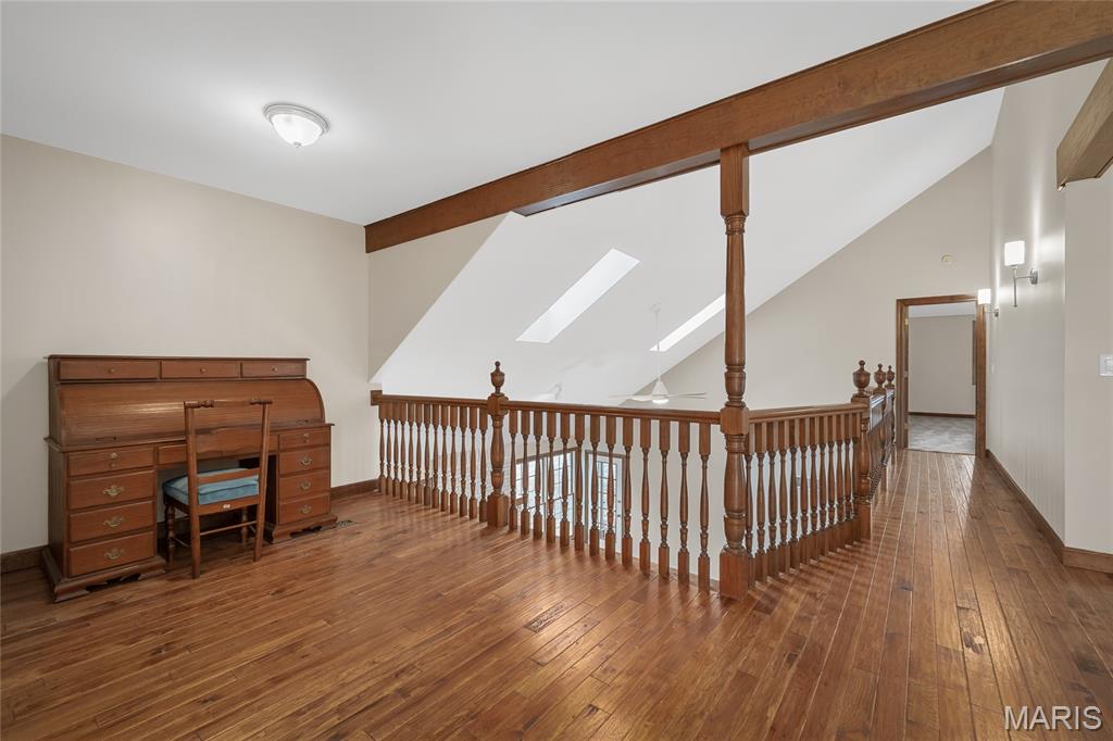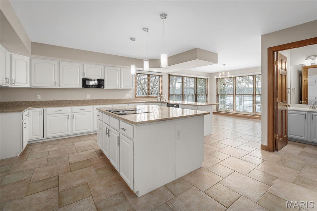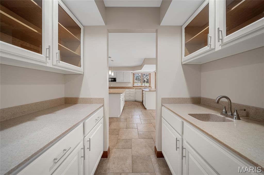 Beautiful story-and-a-half ranch offering over 3,600 sq ft on a serene half-acre lot with gorgeous lake views from multiple rooms. The enormous chef’s kitchen features abundant white cabinetry, quartz counters, double ovens, and a huge island with storage on both sides, all with a stunning water view. A breakfast room wrapped in windows brings the lake right to your table. The butler’s pantry with wet bar and glass-front cabinets leads to the formal dining room with bay windows and French doors opening to the soaring great room with custom bookcases, new hardwood floors, a gas fireplace, and views up to the loft and catwalk above. The main-floor primary suite includes a large walk-in closet and updated bath where you can relax in the oversized soaking tub surrounded by windows letting in nature. A vaulted home office or family room provides wonderful additional family space with its wood beam and bay window. Upstairs offers new wood floors, fresh carpet, oversized bedrooms, a spacious loft, catwalk, and incredible closet space, including a lake-view center bedroom ideal for an office. Enjoy the three-seasons room or private brick patio. Thoughtful features include; lighted flagpole, Andersen windows, zoned HVAC, central vacuum, irrigation system, invisible dog fence, professional landscaping, dog wash, workshop area, and an oversized two-car garage with golf-cart space, new flooring and entire home freshly painted. True craftsmanship shines throughout this exceptional home.