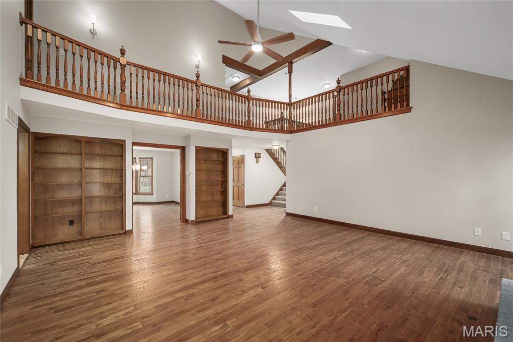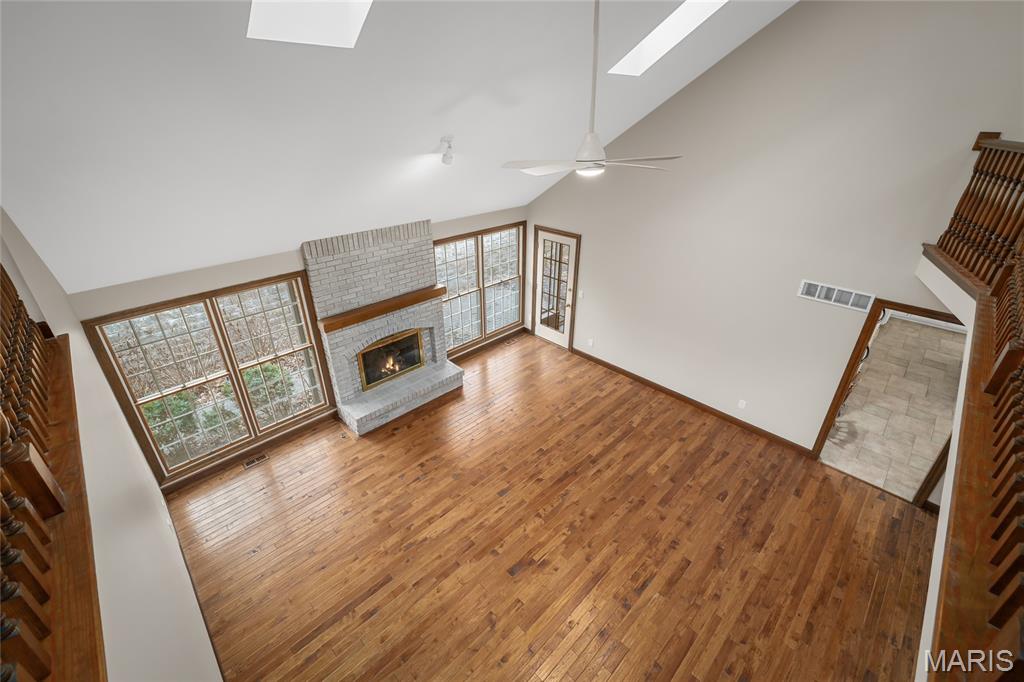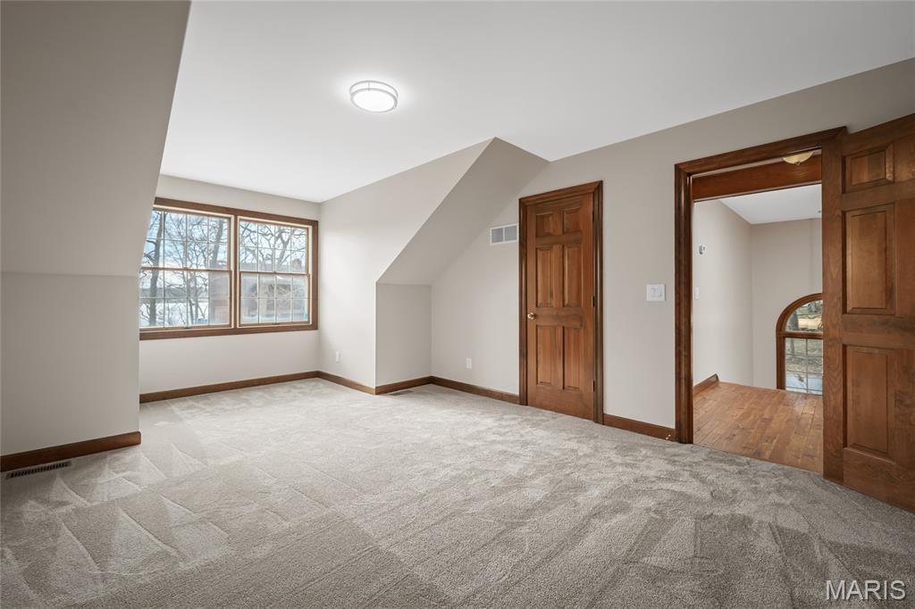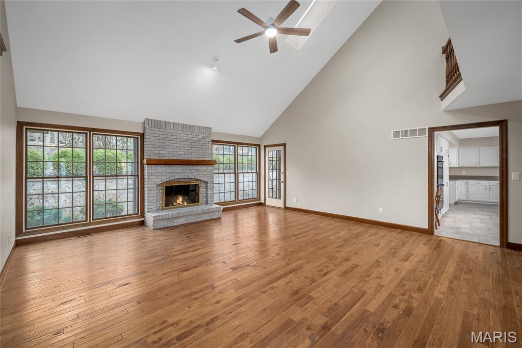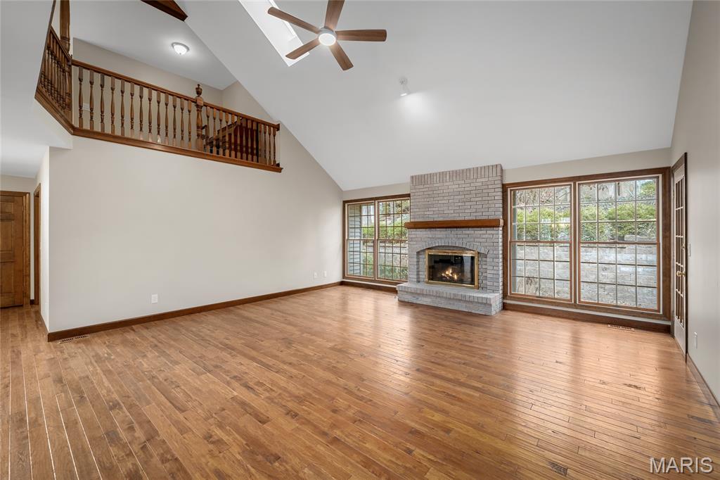 Beautiful story-and-a-half ranch offering over 3,600 sq ft on a serene half-acre lot with gorgeous lake views from multiple rooms. The enormous chef’s kitchen features abundant white cabinetry, quartz counters, double ovens, and a huge island with storage on both sides, all with a stunning water view. A breakfast room wrapped in windows brings the lake right to your table. The butler’s pantry with wet bar and glass-front cabinets leads to the formal dining room with bay windows and French doors opening to the soaring great room with custom bookcases, new hardwood floors, a gas fireplace, and views up to the loft and catwalk above. The main-floor primary suite includes a large walk-in closet and updated bath where you can relax in the oversized soaking tub surrounded by windows letting in nature. A vaulted home office or family room provides wonderful additional family space with its wood beam and bay window. Upstairs offers new wood floors, fresh carpet, oversized bedrooms, a spacious loft, catwalk, and incredible closet space, including a lake-view center bedroom ideal for an office. Enjoy the three-seasons room or private brick patio. Thoughtful features include; lighted flagpole, Andersen windows, zoned HVAC, central vacuum, irrigation system, invisible dog fence, professional landscaping, dog wash, workshop area, and an oversized two-car garage with golf-cart space, new flooring and entire home freshly painted. True craftsmanship shines throughout this exceptional home.