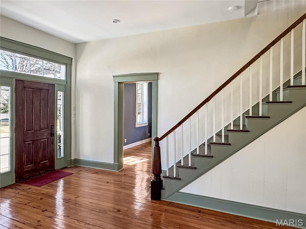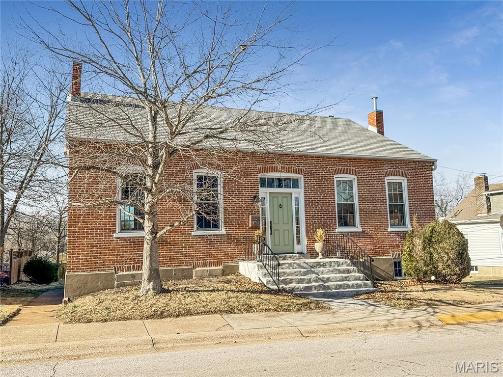 Rich in character and architectural significance, this 1880 Brick 1 1/2-story home showcases timeless craftsmanship, including intricate original woodwork, soaring ceilings, and authentic wood flooring. Thoughtful updates have been carefully integrated to complement the home’s historic integrity while providing modern comfort. The main level features gracious living and dining spaces ideal for gatherings, a custom kitchen with granite countertops, stainless steel appliances, a walk-in pantry, and a main-floor bedroom with dual closets—an uncommon and valuable feature in homes of this era. Upstairs, two spacious bedrooms and a tastefully renovated full bath continue the home’s classic appeal. The partially finished lower level offers the laundry area, a flexible space for study, an archive room, or a creative retreat, a 4th Bedroom, and a walkout to the driveway. Outdoors, you'll find a maintenance-free deck overlooking the backyard, which creates a peaceful setting. An oversized 24X24 approx. two-car garage also provides generous space for storage or a workshop. The yard is big enough for a small garden. Ideally located just steps from historic shops, dining, parks, and the scenic riverfront, this rare offering allows you to own a cherished landmark that honors the past while embracing the present. A truly special property!
