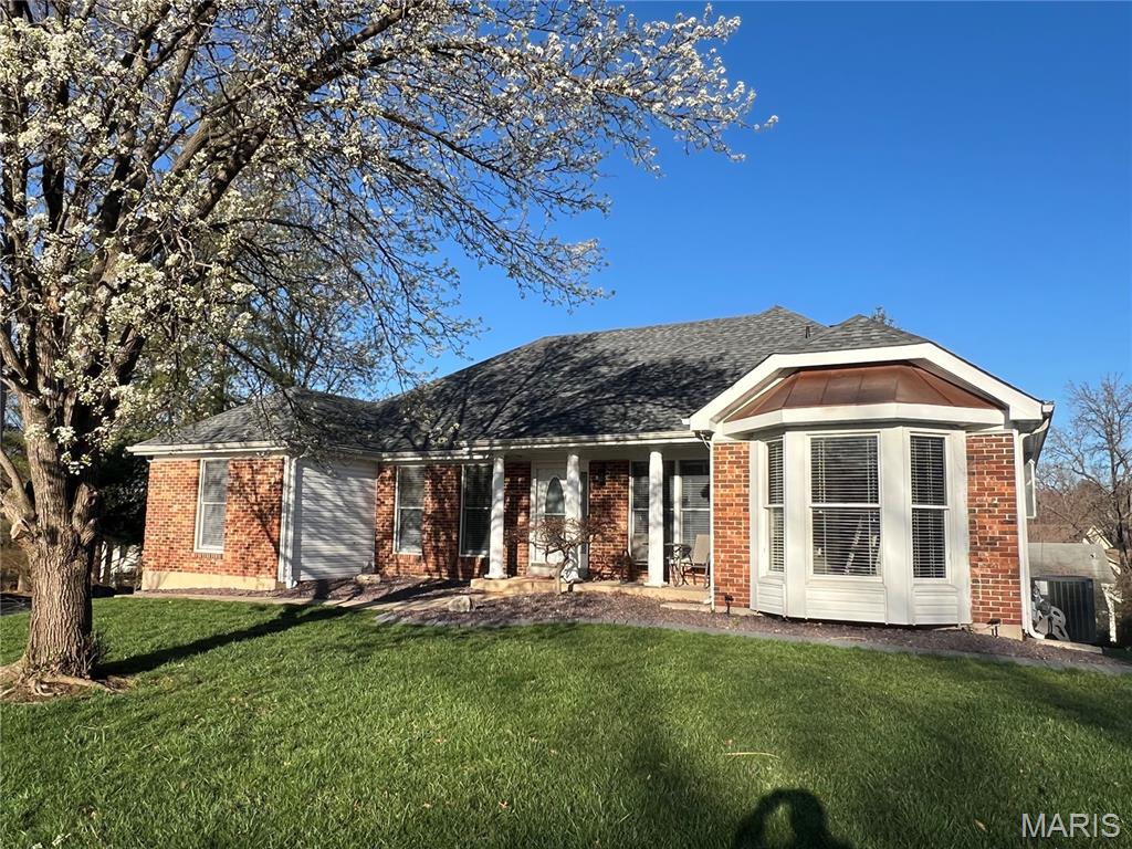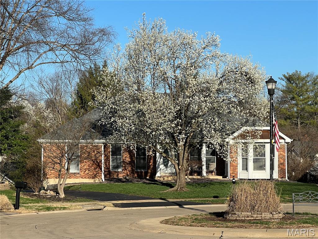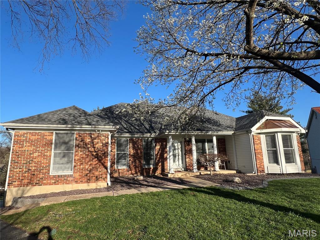 Located in the desirable Regal Green section of Polo Run—featuring neighborhood pool, tennis courts, sidewalks, and common ground—and within the highly regarded Parkway School District, this beautifully maintained ranch-style home offers comfortable one-level living in a peaceful, established neighborhood. Tucked away on a quiet cul-de-sac at 1905 Kings Row Manor, the home features a thoughtful floor plan, generous living space, and the privacy of mature landscaping that defines this sought-after community. The main level offers approximately 2,030 square feet (plus additional finished space in the walk-out lower level—see floor plans), featuring three bedrooms and two full baths. The spacious great room is highlighted by a gas fireplace, beamed ceiling, and beautiful wood flooring, creating a warm and inviting gathering space for everyday living or entertaining. Just off the great room, a light-filled three-season room overlooks mature trees and natural surroundings, providing a relaxing retreat for morning coffee, quiet reading, or simply enjoying the changing seasons. A formal dining room and breakfast room offer flexible spaces for both casual meals and special occasions, while the kitchen is designed for everyday comfort and functionality with abundant cabinet space, solid surface countertops, a center island for prep and casual seating, and stainless steel appliances. The primary suite includes a private bath with double vanity, separate shower, and a walk-in closet featuring custom built-in shelving that offers excellent organization and storage. Two additional bedrooms and a full hall bath complete the main level, providing ideal space for guests, family, or a home office. The walk-out lower level, not included in the above square footage, adds valuable versatility with a large recreation room, third full bathroom, additional storage space, and direct access to the backyard. This flexible area could easily serve as a media room, game room, guest suite, home gym, or hobby space. Additional highlights include main-floor laundry, smart thermostat, access to high-speed fiber internet, EV-ready oversized rear-entry two-car garage with a 50-amp charging outlet, architectural shingle roof, and a radon mitigation system. Residents of Polo Run enjoy a variety of community amenities including a neighborhood swimming pool, tennis courts, sidewalks for walking and biking, and expansive common ground areas that create a park-like setting throughout the subdivision. The neighborhood is known for its mature landscaping, welcoming atmosphere, and convenient access to nearby parks and recreation. Conveniently located near shopping, dining, parks, and major highways, this home offers an excellent balance of privacy, comfort, and modern convenience—making it a wonderful opportunity in one of the area's most established and desirable neighborhoods.