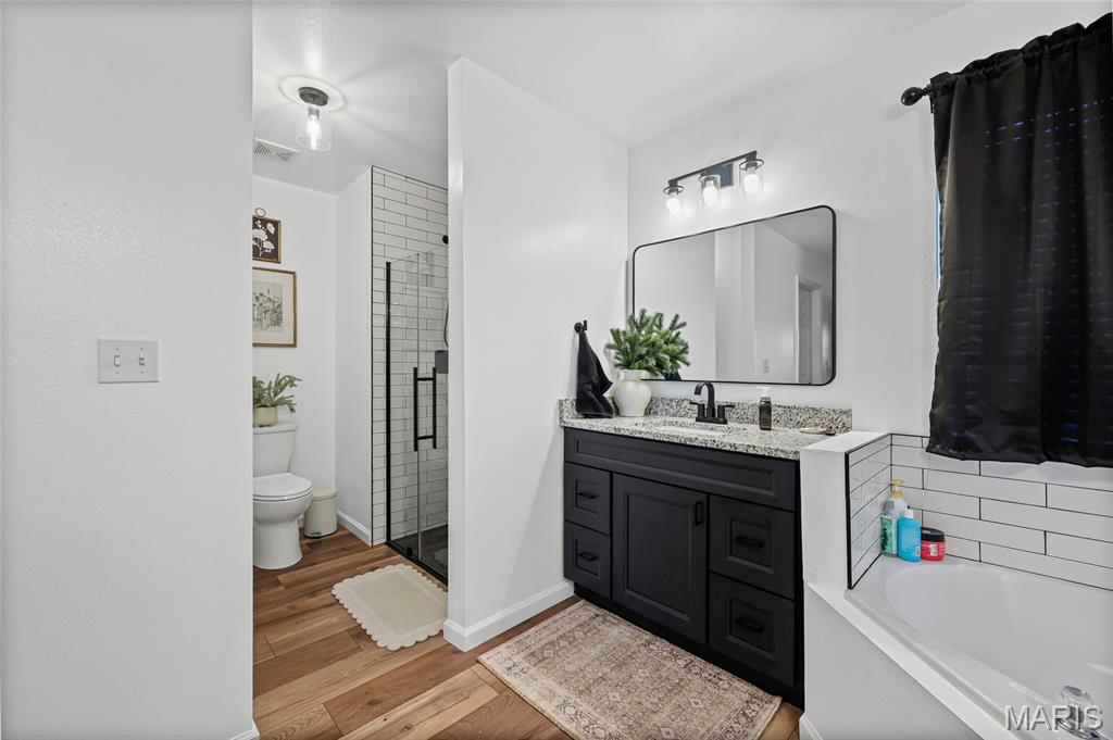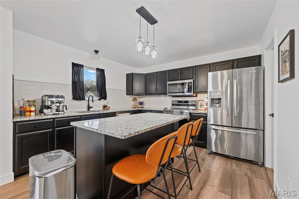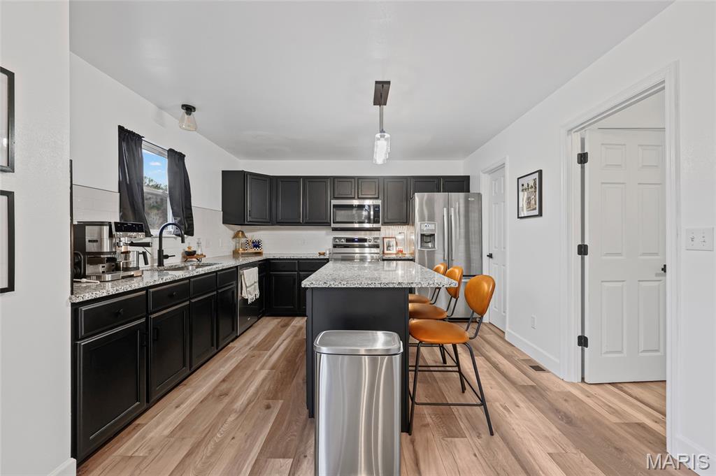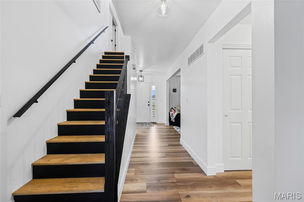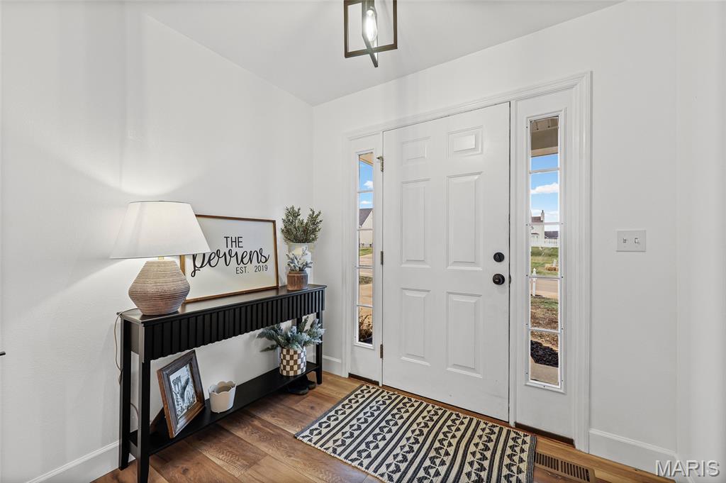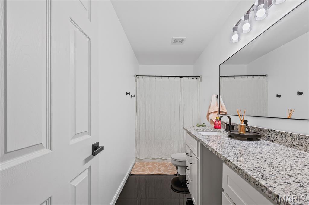 Welcome home to this beautifully updated two-story residence located in the highly sought-after Williamsburg Subdivision. This move-in-ready home is packed with upgrades and offers a spacious, well-designed layout perfect for everyday living, entertaining, and growing needs. As you step inside, you’re greeted by durable and stylish LVP flooring flowing throughout the entire main level. Just off the entry is a charming bonus room/library with built-in shelving—ideal for a home office, study, playroom, or flex space. The main living area opens to a huge living room with an open-concept design, creating an inviting space for gatherings and relaxation. The large, updated kitchen serves as the heart of the home and features a center island, granite countertops, refinished cabinetry with abundant storage, and brand-new appliances. The open layout allows for seamless connection to the living and dining areas. A conveniently located main-floor bathroom has been refreshed with a new vanity, updated plumbing fixtures, and a new toilet. Upstairs, you’ll find four generously sized bedrooms and two full bathrooms, with three of the four bedrooms offering walk-in closets, providing excellent storage throughout. The spacious primary suite is a true retreat, featuring two walk-in closets and an updated en-suite bathroom complete with a separate tub and shower, double vanity, new plumbing fixtures, and modern finishes. Several bathrooms throughout the home have been updated with new toilets and vanities, creating a cohesive and refreshed look. The finished walk-out basement adds even more living space and versatility, offering an additional bedroom, a full bathroom, and a large rec room—perfect for guests, a home gym, game room, or second living area. You’ll also appreciate the ample storage options throughout the home, making organization effortless. Outside, enjoy the huge, fully fenced backyard—ideal for pets, play, and outdoor entertaining. Additional highlights include dual-zoned heating and cooling, an attached two-car garage, granite countertops in the bathrooms, new light fixtures throughout, fresh paint, new trim, updated door hardware, new plumbing fixtures, and new shelving in the laundry room for added functionality. With extensive updates, generous living spaces, and abundant storage, this home truly checks all the boxes. Don’t miss your opportunity to own this beautifully updated property in a fantastic neighborhood!