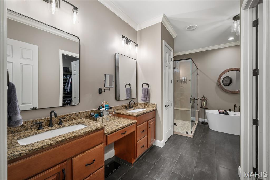 This exceptional villa offers over 3,400 square feet of fully finished living space plus additional partially finished living space, featuring 4 bedrooms and 4.5 bathrooms designed for comfort and functionality. Three of the bedrooms include private en-suite baths, providing ideal accommodations for family and guests alike. The home showcases refinished hardwood floors, updated lighting throughout, and a seamless flow between generous living and entertaining spaces. The kitchen is equipped with updated appliances, perfect for both everyday living and hosting gatherings. The primary suite is a true retreat, highlighted by a newly renovated spa-inspired bathroom complete with a luxurious soaker tub. Additional living space includes a bonus partially finished workout room and hobby area—a rare and versatile gem offering endless possibilities. Ideally located in close proximity to shopping, medical offices, restaurants, and everyday conveniences, this villa combines modern updates, expansive square footage, and a highly desirable location for comfortable, low-maintenance living.
