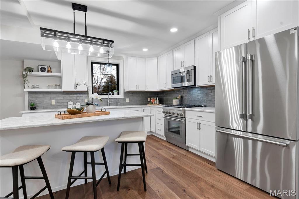 Set on nearly 3.9 private acres within the highly desirable Large Lot Residential (LLRD) zoning district of Eureka, this beautifully rebuilt Custom Craftsman-style residence offers a rare combination of brand-new construction, land flexibility, and long-term value. Originally built in1939, the home was fully rebuilt following a fire, utilizing the existing foundation and locally sourced stone while delivering entirely new systems, finishes, fixtures, and appliances—truly everything is brand new. Offering approximately 3,496 square feet, the home features 4 bedrooms, 3 full bathrooms, and 1 half bathroom across two well-designed levels. The main level showcases engineered wood flooring, abundant natural light through Andersen casement windows, and a comfortable open layout ideal for everyday living and entertaining. The gourmet kitchen is a standout, featuring Thermador appliances, quartz countertops, custom cabinetry and a spacious island. The living room features a wood-burning masonry fireplace, with an existing gas line already in place for easy conversion if desired. The primary suite serves as a private retreat with high ceilings, generous proportions, and a spa-inspired bath finished with quartz countertops and modern fixtures. An additional flex room provides the perfect space for a home office, study, or hobby room. Outdoor features include exterior flood lighting, a gas line on the patio for a BBQ grill, and expansive acreage offering privacy, wooded views, and endless possibilities. Located in the Rockwood School District, this property blends luxury living with space, privacy, and convenience. WHY THIS HOME?? TRUE LARGE-LOT LIVING: Located in the LLRD zoning district, this property sits on nearly four acres—providing privacy, space, and long-term flexibility that smaller subdivisions simply can’t offer. FUTURE FLEXIBILITY: LLRD zoning allows single-family residential use with customary accessory buildings, offering potential for additional structures such as riding stables, detached garages, workshops, or other residential accessory uses (buyer to verify specific plans). BRAND-NEW WITHOUT THE WAIT: Enjoy the benefits of new construction—modern systems, energy-efficient features, and high-end finishes—without the delays or uncertainty of building from scratch. HIGH-END FINISHES THROUGHOUT: From Thermador appliances and quartz countertops to engineered wood flooring and Andersen windows, every detail was selected for quality and longevity. RARE ACREAGE IN A PRIME LOCATION: Properties of this size in Eureka are hard to find, making this a once in a life-time opportunity for buyers seeking land, privacy, and proximity to amenities. MOVE-IN READY WITH LONG-TERM VALUE: With zoning that protects lot size and surrounding land use, this home offers not just luxury today—but confidence in the future character of the area. Homes like this don’t come along often—brand new construction, acreage, and zoning flexibility in a prime location. Come see it and imagine the possibilities.