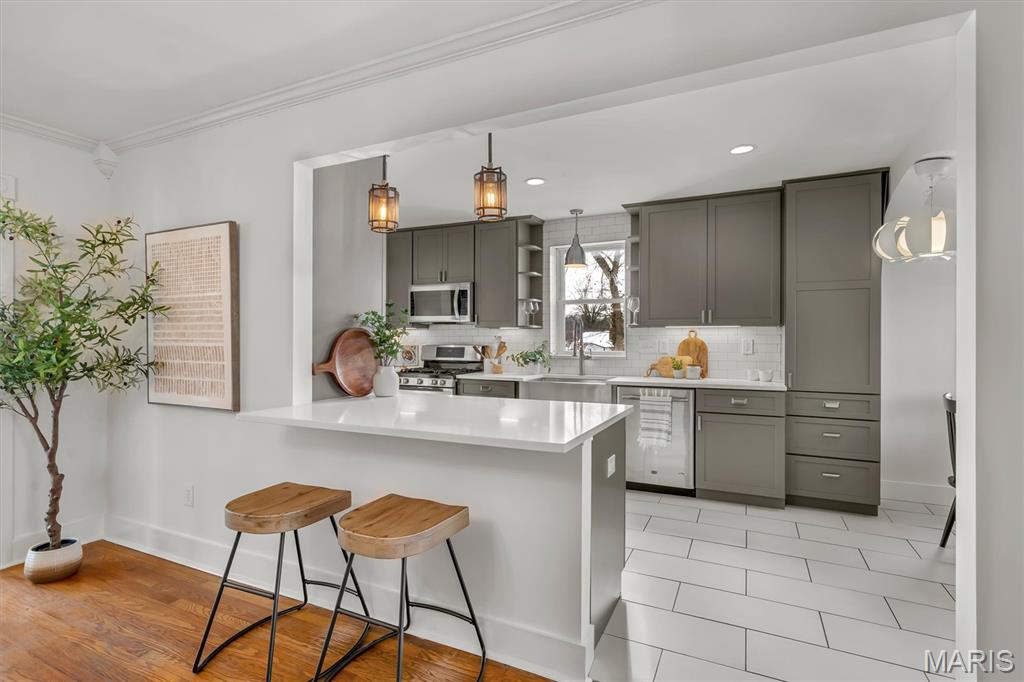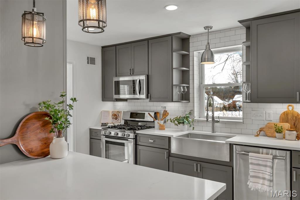 Welcome home to this beautiful 3 bed/2 bath Kirkwood gem, where timeless character blends seamlessly with today’s conveniences. From the moment you arrive, you’ll be drawn in by the charming covered front porch, perfect for morning coffee or evening conversations. As you enter the home the natural light fills the space, highlighting original details alongside thoughtful updates. Relax in the living room with a wood burning fireplace and built in media center. The large formal dining area opens to the updated kitchen ideal for both everyday living and entertaining. The kitchen has ample storage and counter space with bar seating and a charming breakfast nook. Off the kitchen is the main floor laundry area, mudroom, full bathroom plus an office space. Up the stairs is the primary bedroom with walk in closet. Two more ample sized bedrooms offer flexibility for guests, a home office, or growing households, plus full hall bathroom. The walk out basement offers plenty of room for storage. Step outside to enjoy a spacious, level backyard, an ideal setting for outdoor gatherings or simply relaxing. Located in the heart of Kirkwood, within walking distance to Magic House, Community Center, parks, schools, Downtown Kirkwood restaurants/shops and all the charm this beloved community is known for. This home is ready to welcome its next chapter.