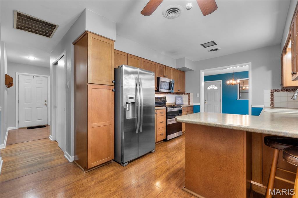 PRICED UNDER APPRAISAL! Immaculate, all brick ranch near SEMO University with many updates. Some hardwood flooring, some laminate. Kitchen also has breakfast area, SS appliances including double oven in range, brick fireplace in living room. Updates include NEW ROOF and REPAINTING inside in 2023, NEW WINDOWS AND BLINDS 2024, NEW DECK 2025 perfect for outside entertaining, French drain. Quality stone landscaping in both front and back, NEW STORAGE SHED 2025, NEW CONCRETE in carport and part of the driveway, fence updating, a/c ventilation ductwork in attic was replaced. This home has a wonderful gas-fired hot water heating system for moist, efficient heat throughout!