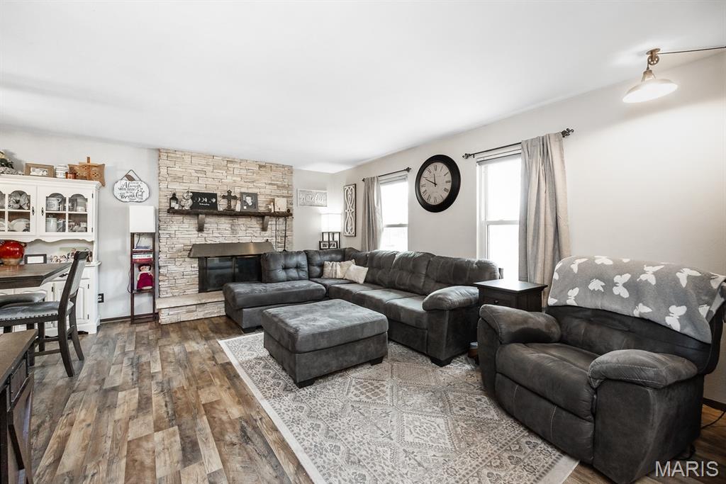 Located in an adorable neighborhood on a sprawling lakefront lot, this home has it all! Relax in the huge sun room outlooking the fully-stocked lake. Fishing, swimming, and beach access all with an affordable HOA of just $175/year. The large family room is perfect for holiday gatherings and parties. Enjoy all the recent updates such as LVP Flooring (2024), new septic (2023), roof (2024), remodeled family room, stove and fridge (2023). This home won't last long. Call your favorite agent for a private showing.