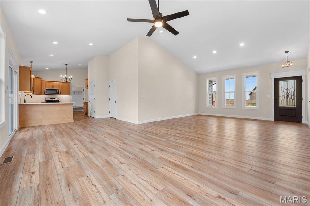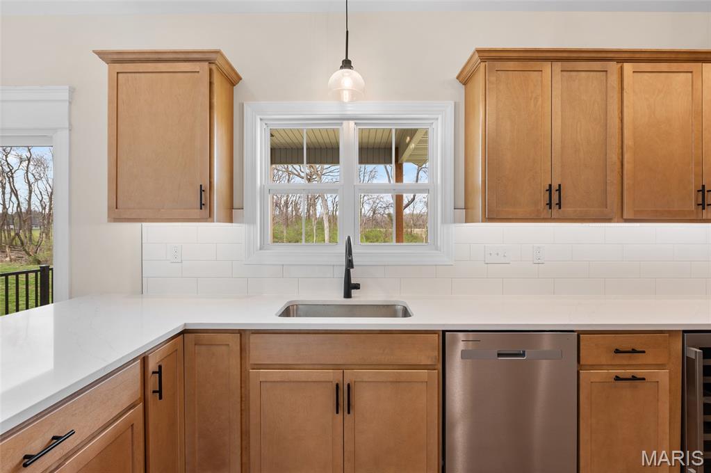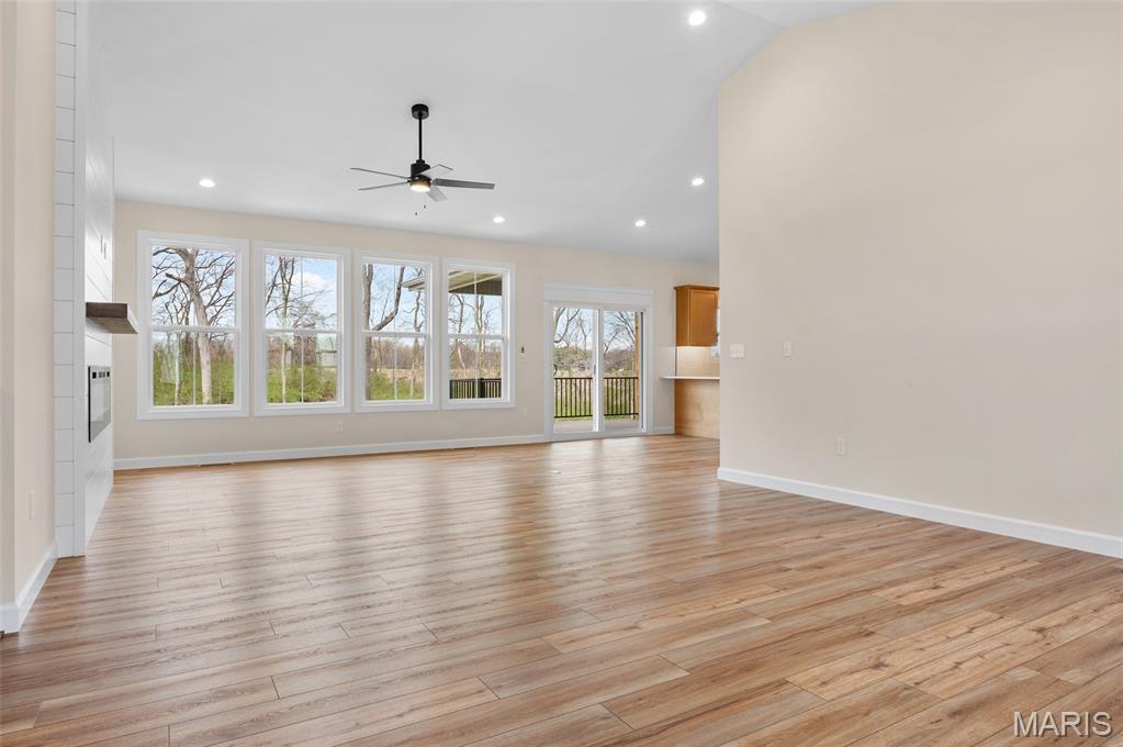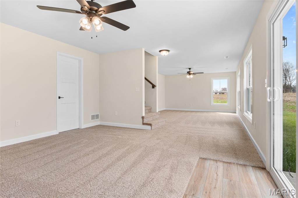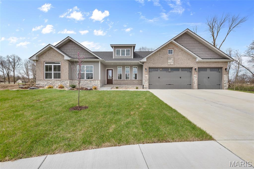 New Construction home located at the back of a quiet culdesac lot, offering privacy and scenic backyard views. The open floorplan is filled with natural light from numerous windows and features a cozy fireplace in the family room. The kitchen offers ample counter space with quartz countertops, stainless steel appliances, and a bonus beverage cooler making it ideal for everyday living and entertaining. Enjoy outdoor living on the large covered deck, perfect rain or shine. The primary bedroom includes a private en-suite bath with dual sinks, large shower, and a walk-in closet. Additional main level features include secondary bedrooms, full bathroom and a convenient main floor laundry. The walk-out lower level offers an additional family room, 4th bedroom, full bathroom, along with plenty of unfinished space for storage or future expansion. A patio provides even more outdoor entertaining space. Home is currently under construction, with additional photos to be added as progress continues. Call today for more information and to schedule your personal tour!