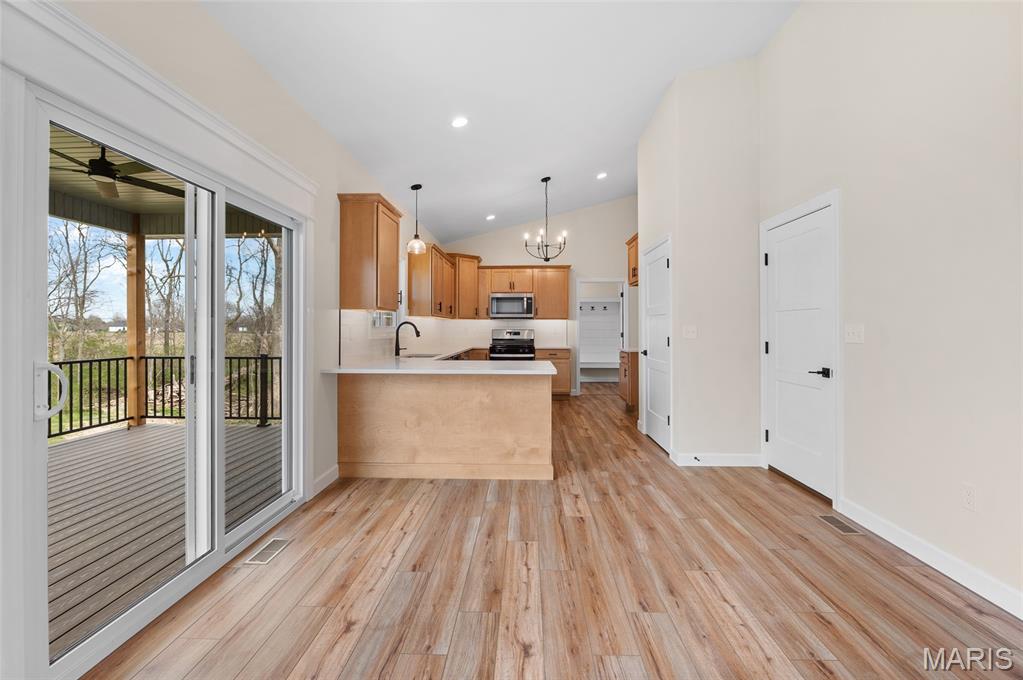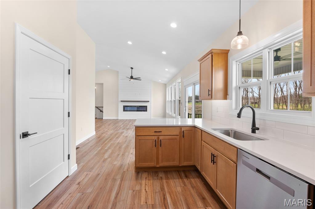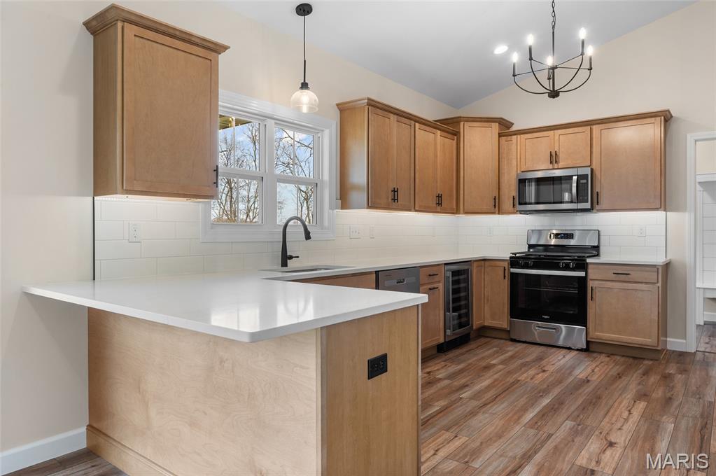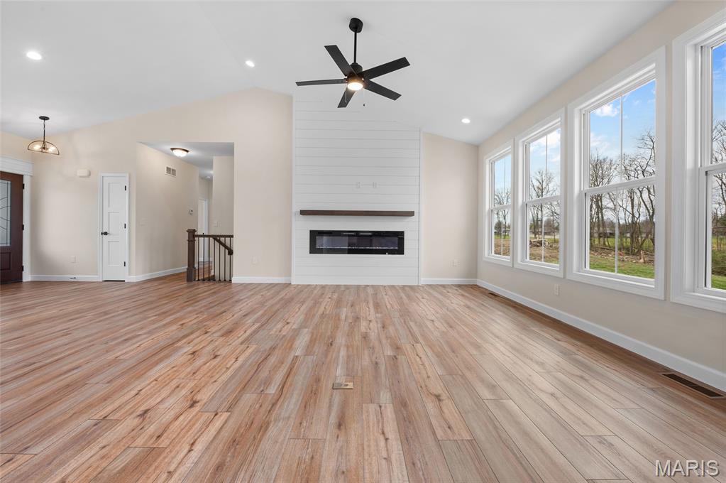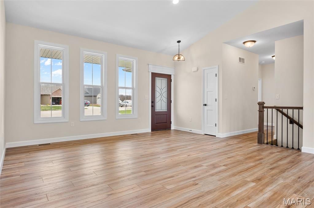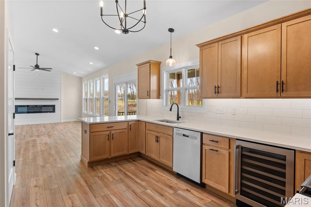 New Construction home located at the back of a quiet culdesac lot, offering privacy and scenic backyard views. The open floorplan is filled with natural light from numerous windows and features a cozy fireplace in the family room. The kitchen offers ample counter space with quartz countertops, stainless steel appliances, and a bonus beverage cooler making it ideal for everyday living and entertaining. Enjoy outdoor living on the large covered deck, perfect rain or shine. The primary bedroom includes a private en-suite bath with dual sinks, large shower, and a walk-in closet. Additional main level features include secondary bedrooms, full bathroom and a convenient main floor laundry. The walk-out lower level offers an additional family room, 4th bedroom, full bathroom, along with plenty of unfinished space for storage or future expansion. A patio provides even more outdoor entertaining space. Home is currently under construction, with additional photos to be added as progress continues. Call today for more information and to schedule your personal tour!