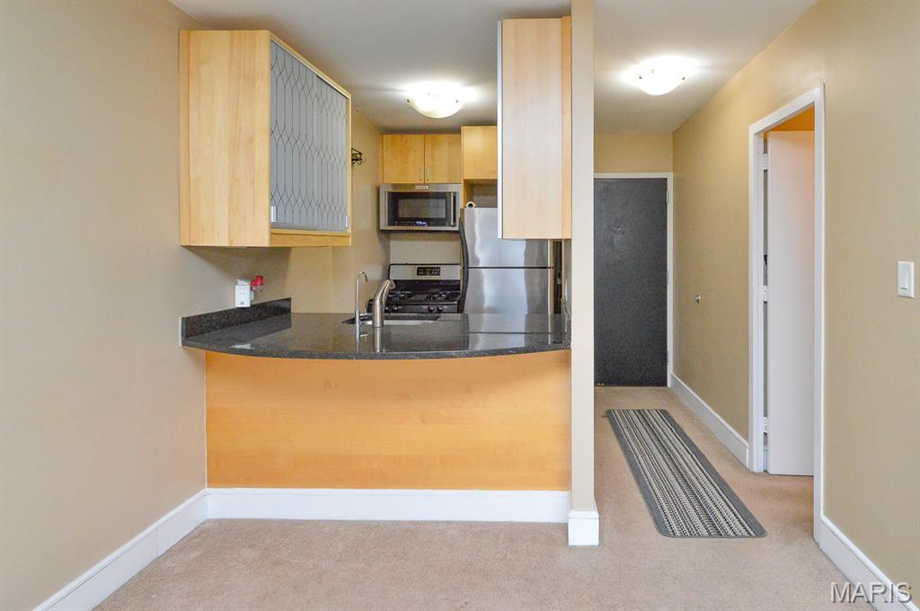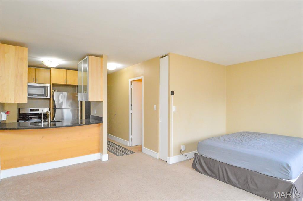 Price listed is Starting Bid Only. Bidding starts closing 3/5/2026 @ 5:30 p.m. Experience the best of downtown St. Louis living in this stylish 1-bath studio condominium located in the Blu City Spaces building. With resort-style amenities and a vibrant urban setting, this open-concept studio features a full kitchen equipped with stainless steel appliances and a breakfast bar with a granite counter-top. Recent updates include a Kitchen Aid convection microwave oven and maple, wet cabinet for drying dishes, adding modern convenience. The spacious main living area offers plush carpeting underfoot and is highlighted by large windows offering stunning panoramic views of downtown. A custom walk-in closet with floor-to-ceiling shelving provides ample storage, while the full bathroom is conveniently located nearby. This modernized unit comes fully equipped with efficient steam baseboard heating and a newly installed mini PTAC, with a heat pump and internet-controlled thermostat. Residents enjoy access to a shared gym, laundry facilities, and an outdoor patio with community grills. The expansive game room and lounge include a pool table and wet bar. Additional benefits include a secure bike room. With secure parking available to be rented through St. Louis Parking. The monthly HOA fee of $379 covers water, sewer, trash, and maintenance of shared areas. Whether for a short escape, student life, or year round living, you will enjoy an ideal mix of comfort, convenience, and urban sophistication. Property will sell under auction terms and be sold AS- IS, WHERE-IS. Seller, will not make any repairs as a result of any building, occupancy, or environmental inspections. Buyer will be required to sign an Auction Purchase & Sale Agreement if final bid is accepted by Sellers