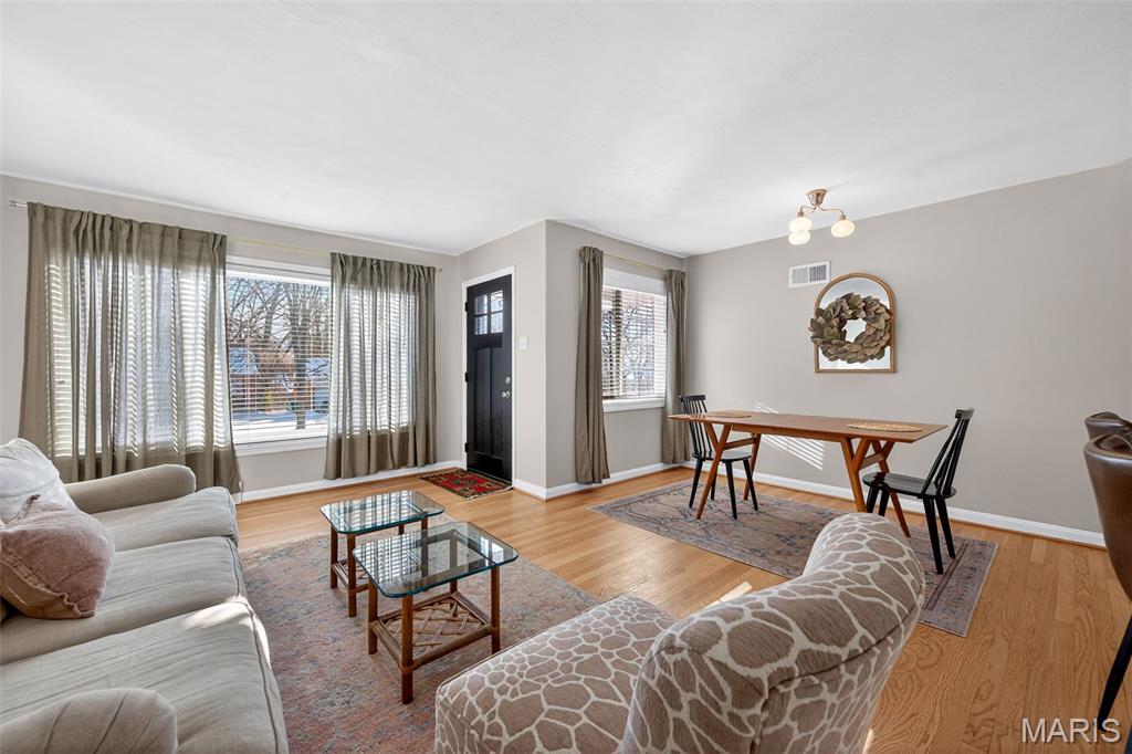 Open House 2/5 4-7pm! Showings begin 2/5! Charming brick ranch in the highly desirable Yorkshire Hills neighborhood of Webster Groves, one of St. Louis’ top rated communities, offering over 1,700 square feet of living space with a finished lower level ideal for a rec room, additional living space, or easily converted into an extra bedroom and bathroom. The living room features hardwood floors and opens to an upgraded kitchen with granite counters, custom cabinets with crown molding, tile backsplash and floors, breakfast bar, and new stainless steel appliances. The main level also offers a primary bedroom with dual closets, a second bedroom, and a versatile breezeway for a breakfast room, office, or pantry. Wait until you see the built-in storage! Recent upgrades include a sliding glass door, new blinds, and new kitchen appliances, while major systems and exterior updates provide peace of mind, including a 2024 roof, 2021 furnace and air conditioner, 2024 water heater, new siding, gutters, exterior doors, garage door, and a whole house water filtration system. Relax on the patio and enjoy the fully fenced yard with new large shed. Located on a quiet street, just 15 minutes to Downtown St. Louis and Downtown Clayton, 5 minutes to shopping and dining at Old Orchard or the newly reenergized Crossroads Webster business district with Bagel Union, Off Elm cocktails, Sylvie Dee’s ice cream and coffee, fitness studios, and boutiques, 5 minutes to Interstate 44, and within walking distance to Memorial Park, Webster Groves Recreation Center, and the new Webster Groves pool. This home is in the top-rated Webster Groves School District, in a welcoming family friendly community. You cannot find this combination of location, schools, shopping/dining, and value anywhere else...you have to see it to believe it!