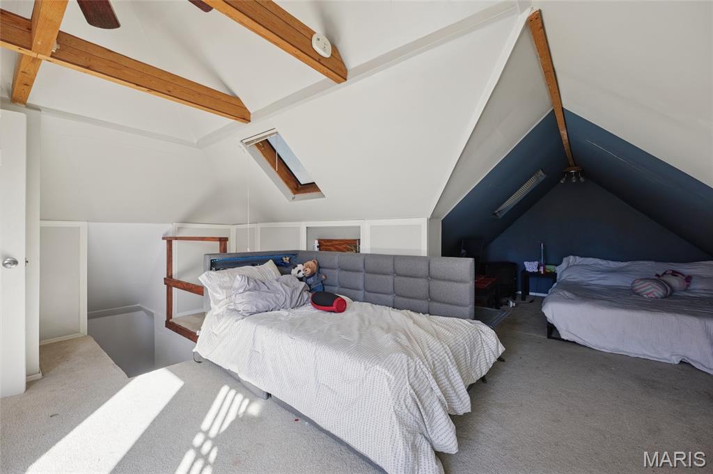 Set on an expansive city lot just blocks from Carondelet Park, this three-story, three-bedroom, two-bath farmhouse showcases charming and enduring appeal. A stone facade, covered patio, and entry lead into a warm main floor featuring vaulted cedar-arched ceilings, wood paneling, a wood-burning stove, and built-ins that anchor the living space. The dining room offers a tray ceiling, window bench with storage, and original wood trim, creating a natural gathering place. The eat-in kitchen is well laid out with ample cabinetry and ceramic tile flooring. The second level includes two large bedrooms, a full bath with dual sinks, separate tub and shower, abundant natural light, and an additional bonus room suited for a home office or hobby space. The finished third floor functions as a private retreat with a large bedroom, full bath, balcony, and generous storage, an ideal a primary suite. Outdoors, the fully fenced backyard provides privacy, open green space, and a deck designed for relaxing or entertaining. Off-street parking includes a two-car carport. City occupancy has been passed, and the home is truly move-in ready. With its flexible layout, finished attic, substantial lot, and close proximity to Carondelet Park, this home offers historic charm and functional space, and desired livability in South St. Louis.