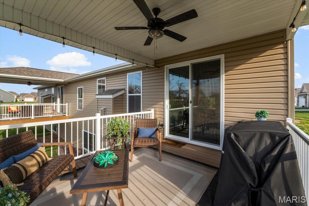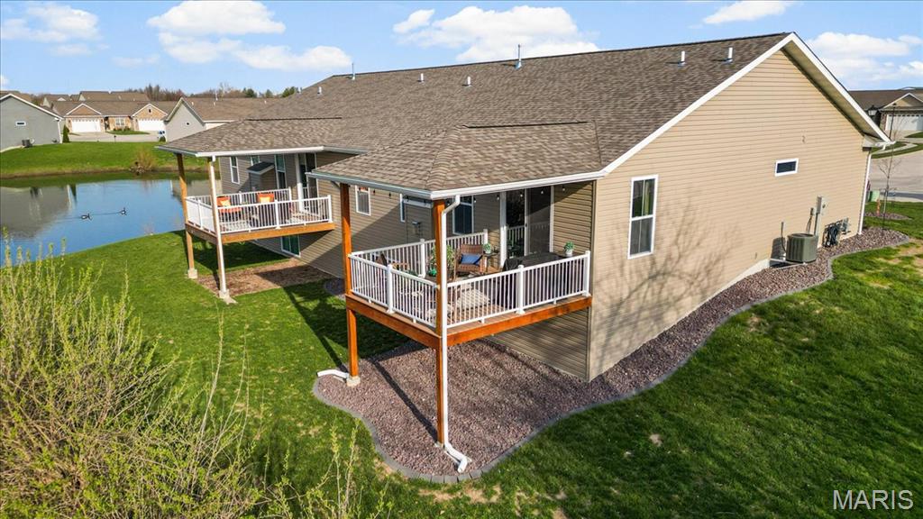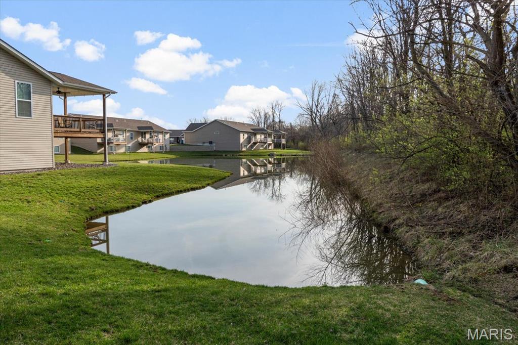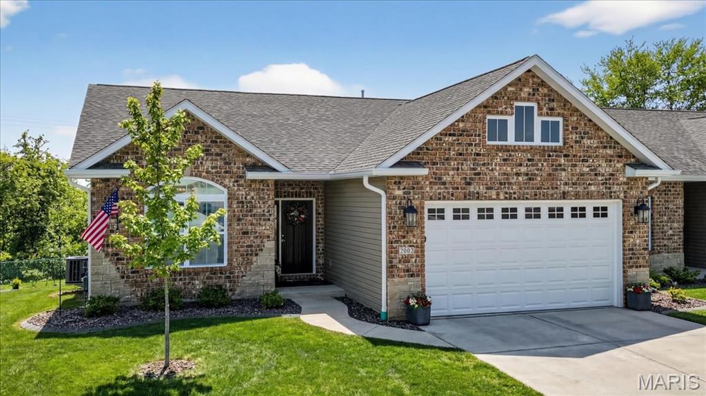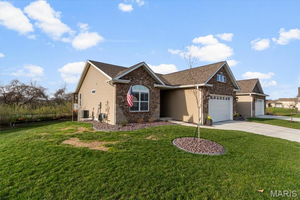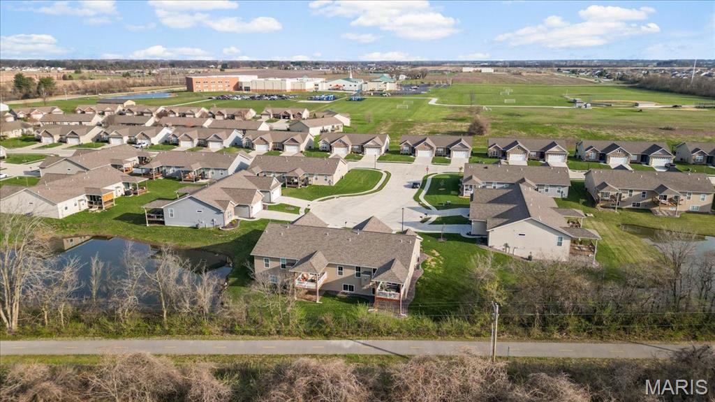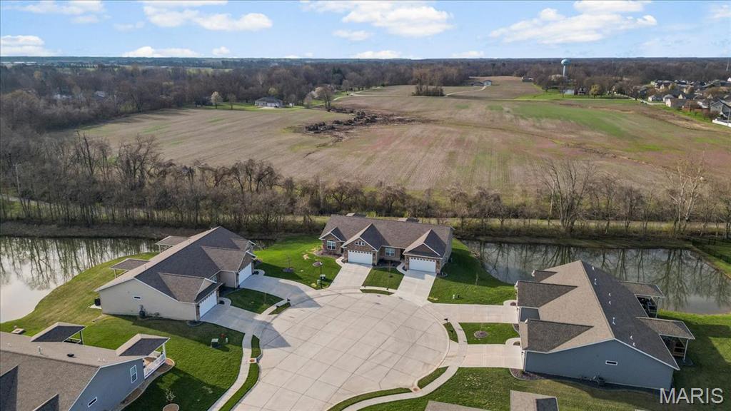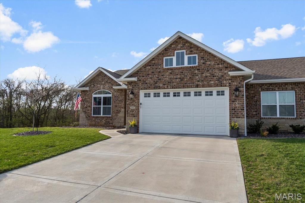 Nearly New Cul-de-Sac Villa with Pond Views | Remington Villas, Maryville, IL Enjoy peaceful, low-maintenance living in this less than 2-year-old, beautifully upgraded villa tucked inside a private 2-unit enclave on a quiet cul-de-sac—an increasingly rare find in today’s market. This 3-bedroom, 3-bath home offers an open-concept design filled with natural light, vaulted ceilings, stone fireplace, and upgraded luxury vinyl plank flooring throughout the main living areas. The spacious great room flows effortlessly into a stylish kitchen featuring a large center island, pantry, granite countertops, and stainless steel Whirlpool Gold Series appliances—perfect for both everyday living and entertaining. The main-level primary suite provides a private retreat with vaulted ceilings, a walk-in closet, and a well-appointed ensuite bath with dual vanities and a tiled shower. A convenient pass-through from the closet to the laundry room, with built-in drop zone, adds smart, everyday functionality. The finished lower level with 9’ ceilings expands your living space with a generous family room, built-in dry bar with mini refrigerator, oversized bedroom, full bath and upgraded carpet throughout; ideal for guests, entertaining, or multi-generational living. Ample unfinished storage space ensures everything has its place. Step outside to a maintenance-free covered deck overlooking two stocked ponds, offering a serene setting for morning coffee, evening relaxation, or fishing just steps from your backyard. Direct subdivision access to nearby bike trails adds even more outdoor enjoyment. Additional Highlights: Granite countertops throughout kitchen, baths, and laundry Ceramic tile flooring, kitchen backsplash, under cabinet lighting High-end cabinetry and upgraded finishes Lawn care included in the HOA for true low-maintenance living Move-in ready with modern construction and design Conveniently located near St. Louis, major highways, Anderson Hospital, shopping, and dining, this home offers the perfect blend of comfort, convenience, and quiet community living.