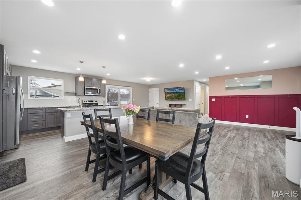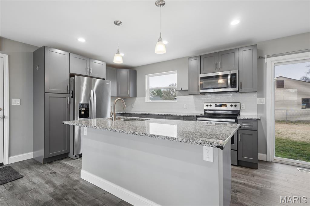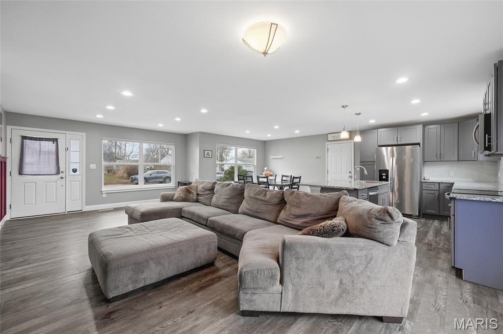 Welcome to this delightful ranch-style home located in the highly sought-after Lindbergh School District in Fenton, Missouri, known for top academic performance and nationally recognized schools. Offering approximately 1,500 sq. ft. of living space on a generous 1/3-acre lot, this 3-bedroom, 1-bathroom home is perfect for families, first-time buyers, or anyone seeking functional and comfortable living. Step inside to an inviting open-concept living area that seamlessly connects the living room to the kitchen — ideal for entertaining and everyday living. The kitchen features a center island perfect for meal prep, casual dining, and gatherings with friends and family. Natural light fills the home, highlighting the thoughtful layout and cozy spaces throughout. The partially finished lower level adds valuable flexibility with an extra recreational room, perfect for a family room, home office, fitness space, or guest area, along with additional storage. Outside, enjoy the flat, spacious backyard—perfect for relaxing, entertaining, gardening, or outdoor activities. The property also features an oversized garage and ample driveway parking for convenience. Located near multiple family-friendly parks within walking distance, as well as shopping, dining, and major highways, this home blends suburban charm with everyday convenience.