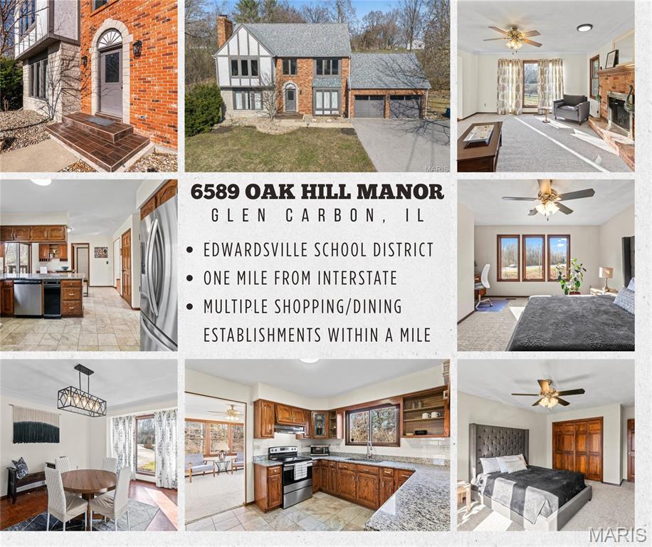 EDWARDSVILLE SCHOOL DISTRICT & A MILE AWAY FROM THE INTERSTATE/ MULTIPLE SHOPPING/DINING EXPERIENCES! Get the best of both worlds with easy commuting access & a sought-after school district! This beautiful 5-bedroom, 4-bath Tudor-style home is filled with timeless charm and character throughout. Abundant natural light pours into every level, creating a warm and inviting atmosphere while highlighting the home’s classic elegance. Recent updates include new dual-zone climate control, ensuring comfort on every floor. The main level offers a seamless flow from the living room to the kitchen and dining area, providing the perfect setting for everyday living, cooking, and entertaining. Upstairs, you’ll find four generously sized bedrooms, including the inviting primary suite complete with a relaxing en-suite bath designed as a private retreat. The finished basement adds even more living space, featuring a cozy fireplace, a pull-down projection screen perfect for movie nights, and plenty of room for gatherings. An additional bedroom and full bath make this level ideal for guests or a private suite. Step outside to enjoy multiple outdoor living spaces—perfect for dining, relaxing, or simply taking in the sunset. Don’t miss the opportunity to own this charming home in the heart of Glen Carbon! ** Some photos virtually staged to show potential. **