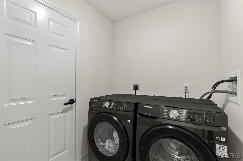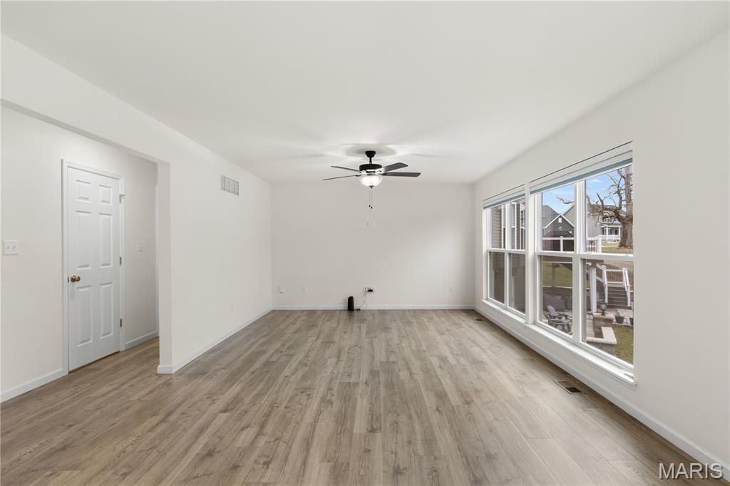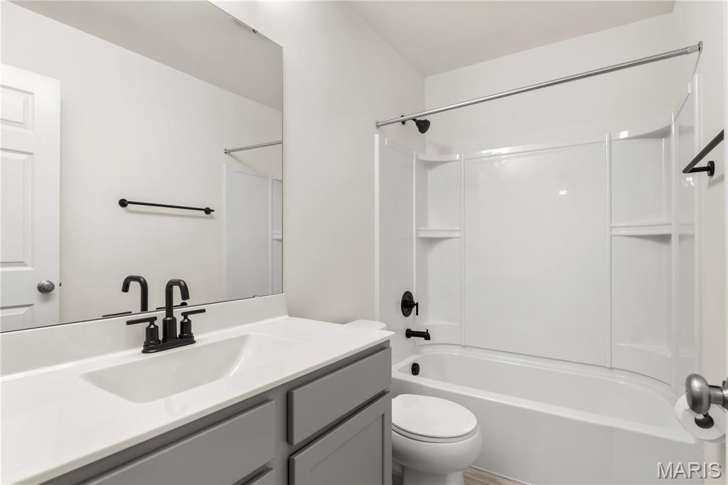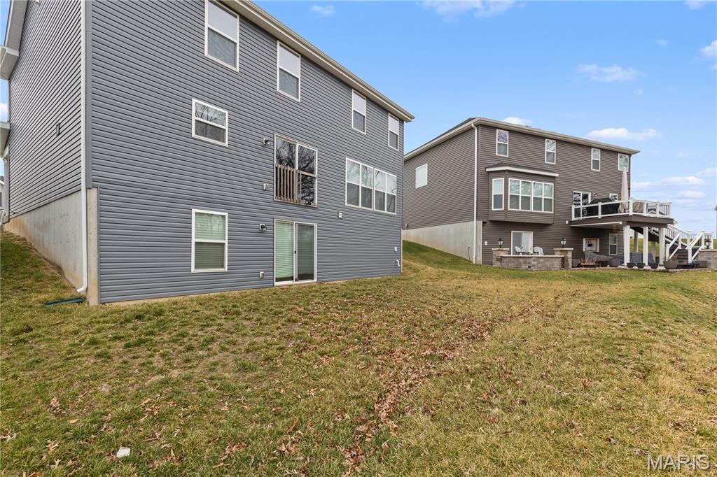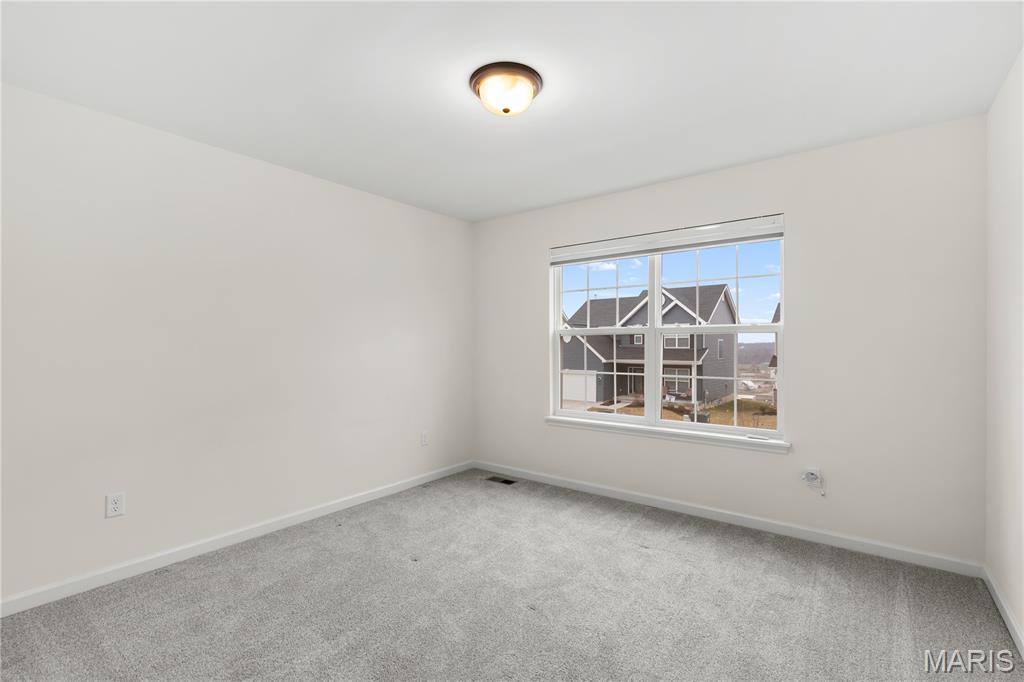 Welcome to this beautiful 2 year young 4 bedroom, 2.5 bath home in the desirable Majestic Pointe subdivision and sought after Rockwood School District. As you walk into the entry foyer you will be greeted by a naturally sunlit space, open spindled staircase, soaring ceiling and stunning wood laminate flooring which extends throughout the main floor. In addition to the open floor plan, the kitchen includes 42" custom cabinetry, large center island with sparkling white quartz countertops, walk-in pantry, and stainless steel appliances. The main floor also includes laundry room, a breakfast room with sliding glass doors to backyard, a spacious living room with a window wall and a formal dining room. The second floor includes a master bedroom suite with a walk-in closet, private luxury bath with double bowl vanity, soaking tub, enclosed toilet and walk-in shower and 3 additional bedrooms and hall bath. The spacious walkout basement has a rough-in for future finish and plentiful storage space. The walkout sliding doors lead to a private level backyard is perfect for entertaining and play. This home has it all with upgraded fixtures and honeycomb day and night blinds throughout. 10 year builders warranty included. Buyer incentive available! Ask about up to $5000 toward clsoing costs when using the preferred lender.