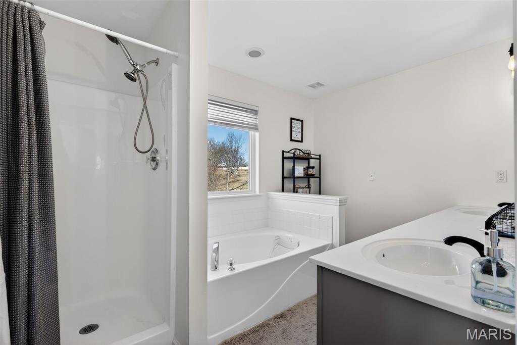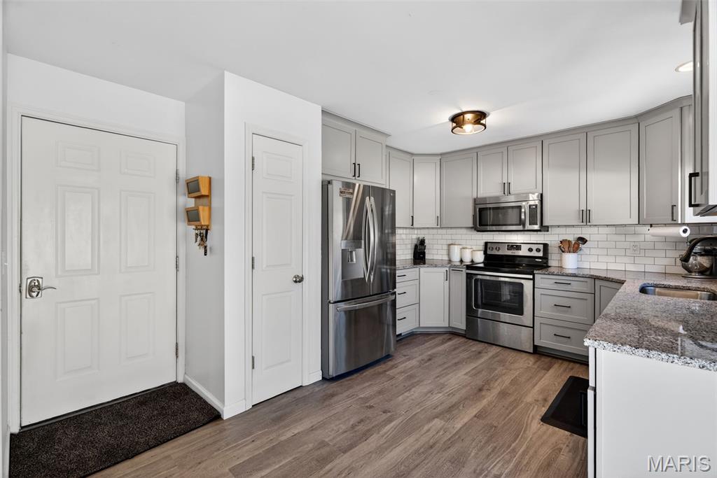 This is the one you’ve been waiting for! You're going to LOVE that this one is completely MOVE IN READY with TONS of updates!! New roof, siding, & HVAC, newer water heater, aluminum fascia & soffit, and completely renovated kitchen and bathrooms! Plus all updated PVC plumbing and electrical panel (house built in 2003)! Maintenance free interior and exterior & ready for you to enjoy! This welcoming 3 bedroom, 3.5 bath home greets you with spacious, sunlit rooms and a warm, inviting atmosphere. The living room showcases a wood-burning fireplace and beautiful hardwood floors that continue into the dining room. The open floor plan creates an ideal space for entertaining and hosting family gatherings. The spacious kitchen features stainless appliances, granite countertops, custom soft-close cabinetry, and a timeless subway tile backsplash. Sliding glass doors lead to the covered deck overlooking the beautifully manicured and private backyard, seamlessly blending indoor and outdoor living. A convenient half bath completes the main level. Retreat to your private primary suite, where you'll find a vaulted ceiling, walk-in closet, and a massive en-suite bathroom with a separate shower, soaking tub & double sinks. Two additional generously sized bedrooms and another full bath complete the upper level. The walk-out finished lower level offers even more living space with a family room featuring luxury vinyl plank flooring, a full bath, laundry room, and additional storage. Enjoy warmer days on the covered deck overlooking the large, white vinyl fenced backyard with plenty of room for gardening, play, or pets. Plus you'll love making S'mores around the firepit during cool spring and fall nights! Ample parking includes a two-car garage plus an additional parking pad which comfortably fits 6 cars total. Conveniently located in the heart of Arnold near I-55 for easy commuting.