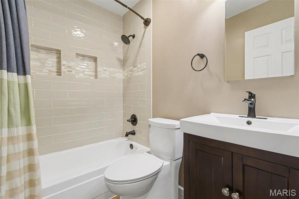 OPEN HOUSE SUN 3/15 1-3 PM. This wonderfully maintained Marquette ranch will check every box on your list. Main level plan offers 3 bedrooms-all with ceiling fans-& 2 full baths. Bright Living area opens to kitchen & dining. Your first morning view is a spacious yard from large kitchen triple window or sliding atrium door. Kitchen offers custom hickory cabinets with roll out storage, gas cooking, & ample countertops. Primary Bedroom has nicely updated en-suite bath and roomy walk-in closet. Two additional freshly painted bedrooms, and updated hall bath, round out main level. Sun deck is just steps to patio garden & fenced level yard. Walk-out lower level family room has been newly carpeted & is adjacent to laundry & storage space, which includes a cedar closet. Lower level accesses both tuck-under garage & yard. Blink door bell stays. Pool nearby at corner of Fox Village Ct. & Westglen Dr. **Lennox HVAC-2 Yr / Architectural Roof-1 Yr / New Sewer Lateral <1 Yr**Passed Ballwin Inspection**