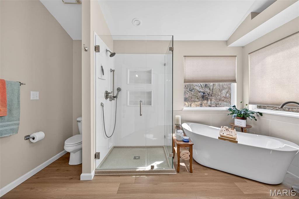 Welcome home to this stunning two-story residence boasting 5 bedrooms, 3.5 baths, and over 3,600 square feet of total living space. Situated on a premium lot back to woods, this home offers privacy and serene views from your backyard oasis. Step inside to a spacious foyer with beautiful hardwood floors that flow throughout the main level. The large dining room is perfect for family gatherings, while the great room features a wood-burning fireplace flanked by built-in shelving and a bright bay window overlooking the tree-lined backyard. The updated kitchen is designed for both style and functionality. Upstairs, you’ll find 4 spacious bedrooms including an expansive primary suite with a luxurious updated bath featuring a soaking tub—the perfect place to unwind. Each secondary bedroom offers generous closet space. The finished walkout basement includes a large recreation room with a wet bar, a full bedroom and bath—ideal for guests or a private retreat—plus plenty of storage and a dedicated workspace for hobbies. Step outside to the oversized patio beneath the deck and enjoy the peaceful, wooded setting. Freshly painted and move-in ready, this home blends comfort, space, and tranquility—perfect for making new family memories!