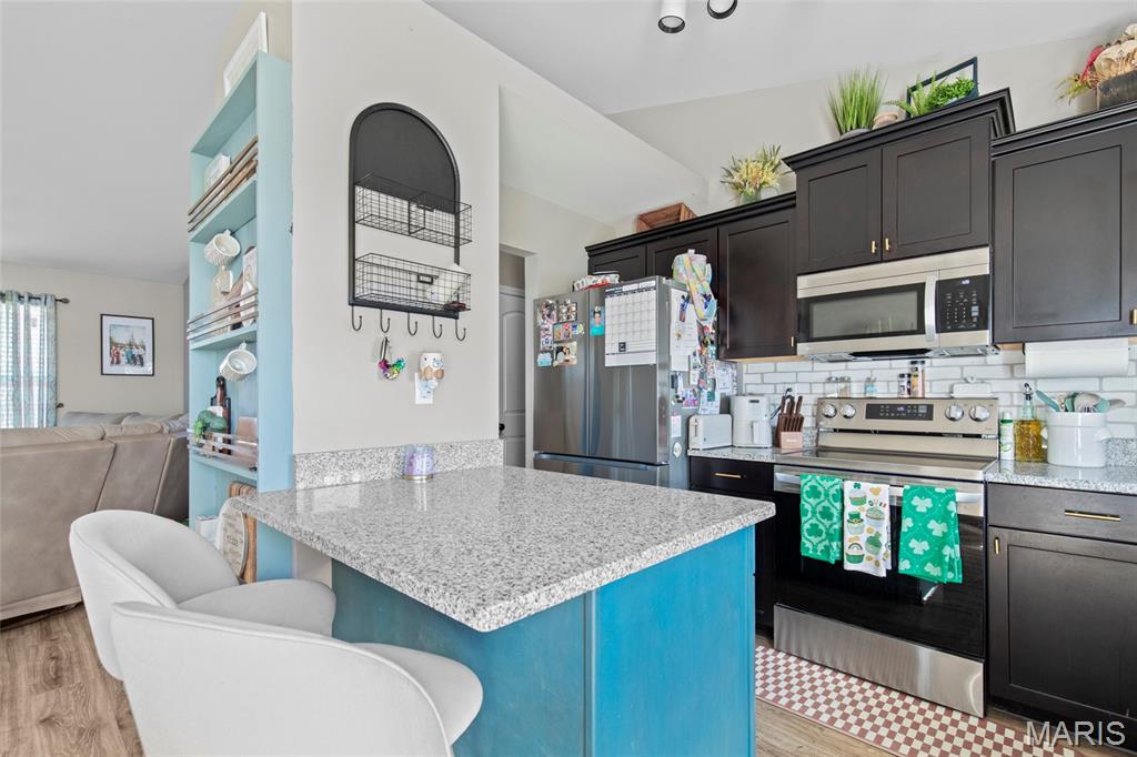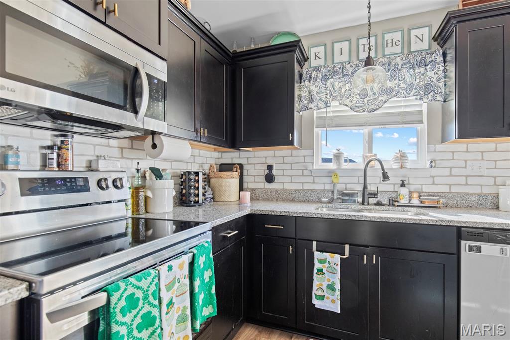 This move-in ready home is turn key and ready for its new owner! The modern kitchen features granite countertops, multiple built-ins including a charming plate rack, and brand-new LG appliances (stove, microwave, refrigerator, washer, and dryer), all added in 2024 and included with the home. The fully finished basement offers versatile living space with custom shelving—ideal for a family room, home office, or gym. The laundry room is also finished, and is ready for your new craft area or additional storage -- you decide! It features a private, fully-fenced backyard complete with a 14' x 16' deck—perfect for entertaining, relaxing, or outdoor dining. It also comes with a riding lawnmower to help with the large yard! An oversized garage (longer than the newer build 19' standard -- bring your trucks!) provides ample storage and workspace. Inside, you’ll find stylish luxury vinyl plank flooring throughout, neutral paint, and an open, inviting layout. Additional highlights include a whole-house water purifier, water softener, and water heater replaced in 2022, ensuring comfort and efficiency. The primary bath also features built-in shelving for added convenience. With thoughtful upgrades throughout and nothing left to do but move in, this exceptional home is truly turnkey. Schedule your private showing today! Showings start 3/2, open house 3/8 from 1-4 pm!