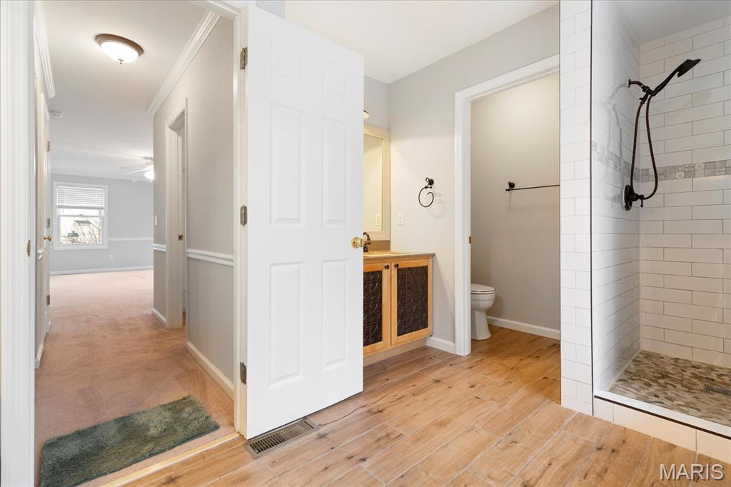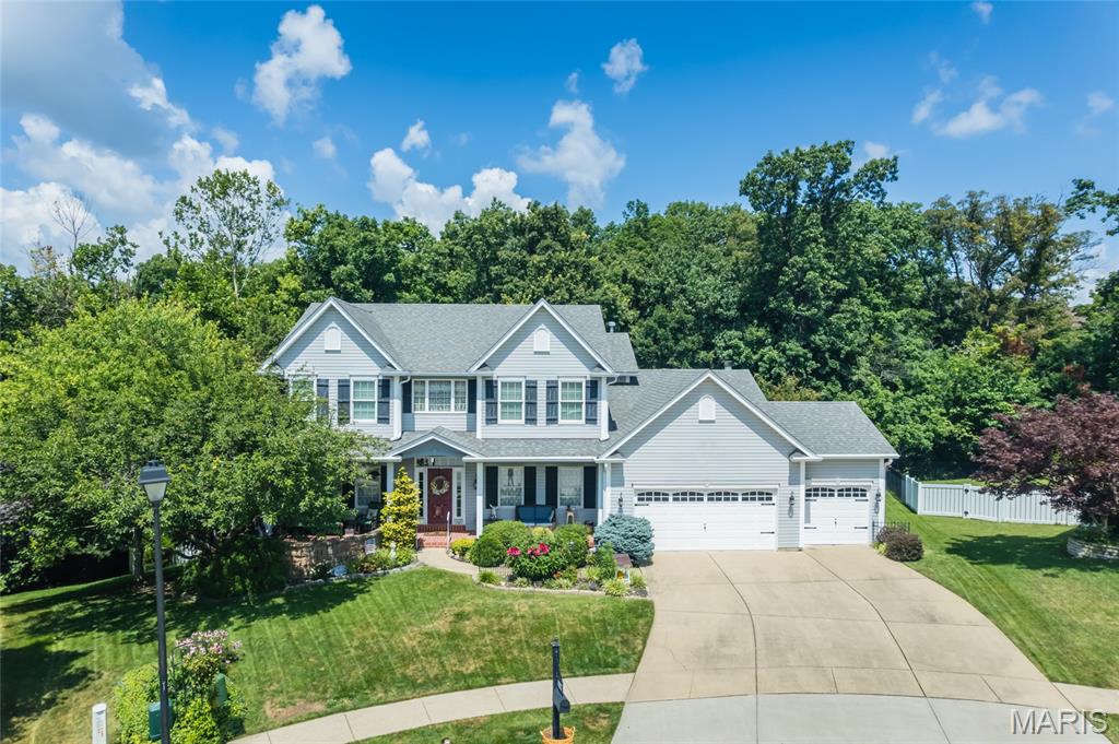This Sprawling Two-Story Home, Freshly Painted on Both Levels '26, With Over 3,300 Sq Feet Of Living Space Is A Must See! Featuring A One-Acre Heavily Wooded Back Drop and NEW HVAC 3 Years Ago. Main Level Provides an Incredible amount of Space To Relax Or Entertain With Living Room, Family Room, Kitchen - Hearth Room Combo (Incredible Cabinet & Counter Space, Center Island, Desk Hub, Wood-Burning Fireplace, And More), Dining Room, & 1/2 Bath, Main Floor Laundry And Bonus Enclosed Sun Room With Wooded Views. Heather Glen Boasts Hardwood Flooring, Crown Molding, Wainscoting, And Other Architectural Features Throughout The Home. Upper Level Primary Bedroom Suite With Full Bath (Separate Tub & Shower), 3 Additional Large Bedrooms And Second Full Bath! Walkout Lower Level Provides Bonus Room And Endless Opportunities To Meet Your Future Needs. Patio Oasis Overlooking Your Private, Wooded Lot Allows You To View From Your Spa While Relaxing Or Exercising. Cozy Extended Front Porch Area. . Spacious. 3 Car Garage. Cul-De-Sac Lot!