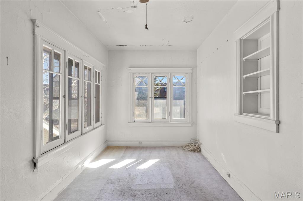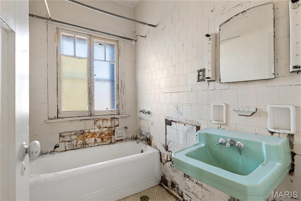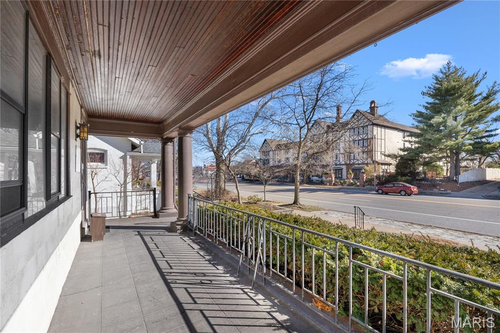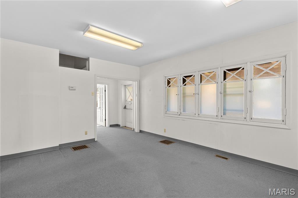 Renovation opportunity with over 2300 sq ft and full basement within Clayton's LIVE WORK OVERLAY DISTRICT, mixed-use property (50% or more residential). FANTASTIC VISIBILITY with 18,000 avg traffic count daily, DUAL PARKING ACCESS from shared front driveway and rear alley. CRAFTSMAN style architecture with stucco exterior and covered front porch. HIGH CEILINGS, wonderful NATURAL LIGHT, plus lots of original WOODWORK and hardwood flooring. Main-level currently features a living room, sunroom, kitchenette, working half bath, plus second kitchen rough-in. Upstairs 4 bedrooms and full bath rough-in. Tons of STORAGE downstairs with walk-up exit. Rear deck steps out to 2 OFF-STREET oversized parking spaces. NEWER HVAC and UPDATED ELECTRIC. Short walk to world-class FOREST PARK (1,300 acres, 30+ miles of trails, 6 scenic lakes, 2 golf courses, zoo, museums and more). One block to SSM St Mary's medical complex. Easy access to Highways 64/40/170 and popular St Louis attractions nearby.