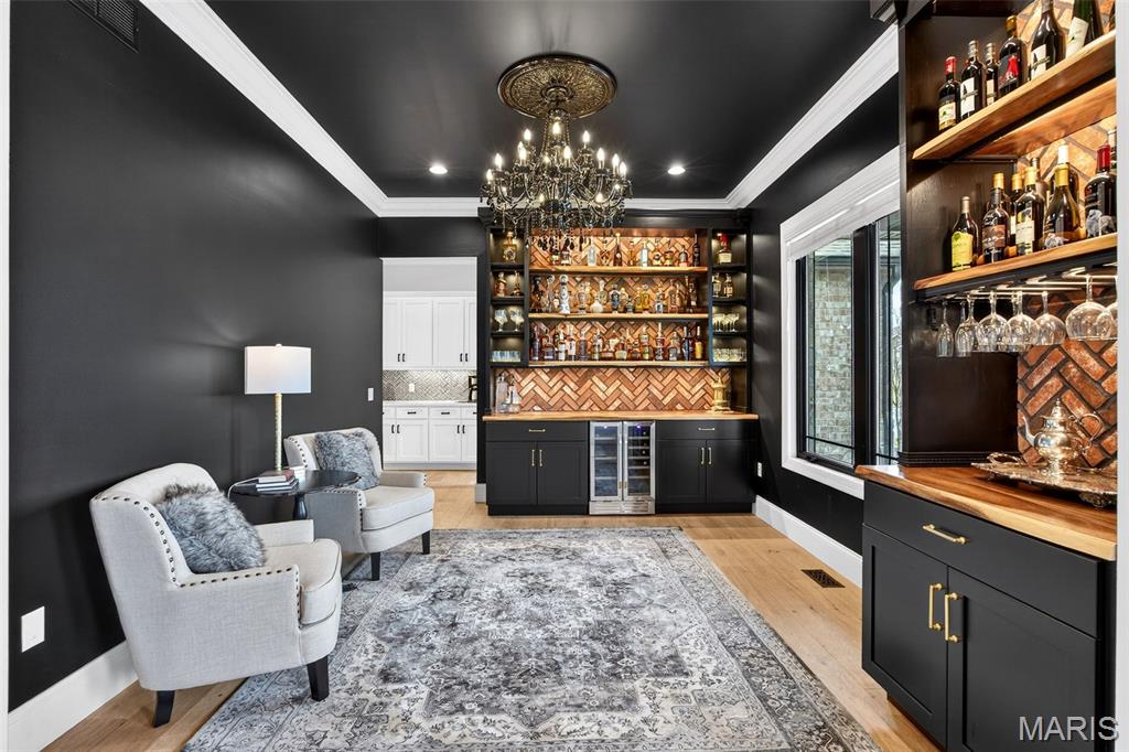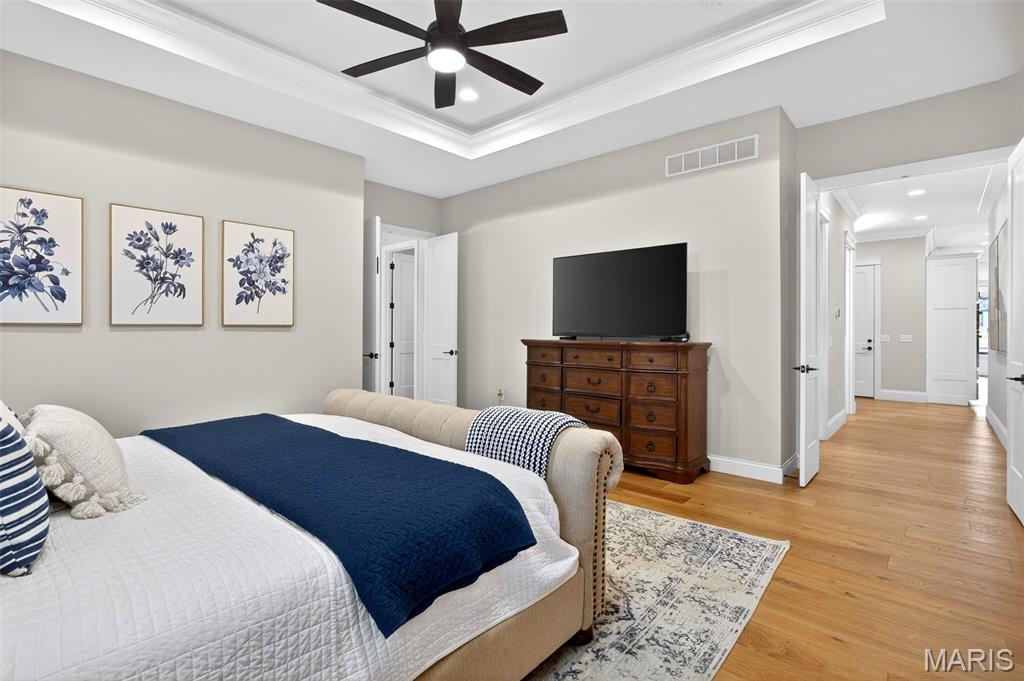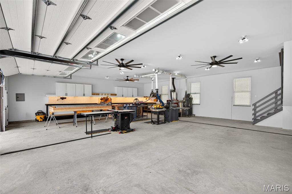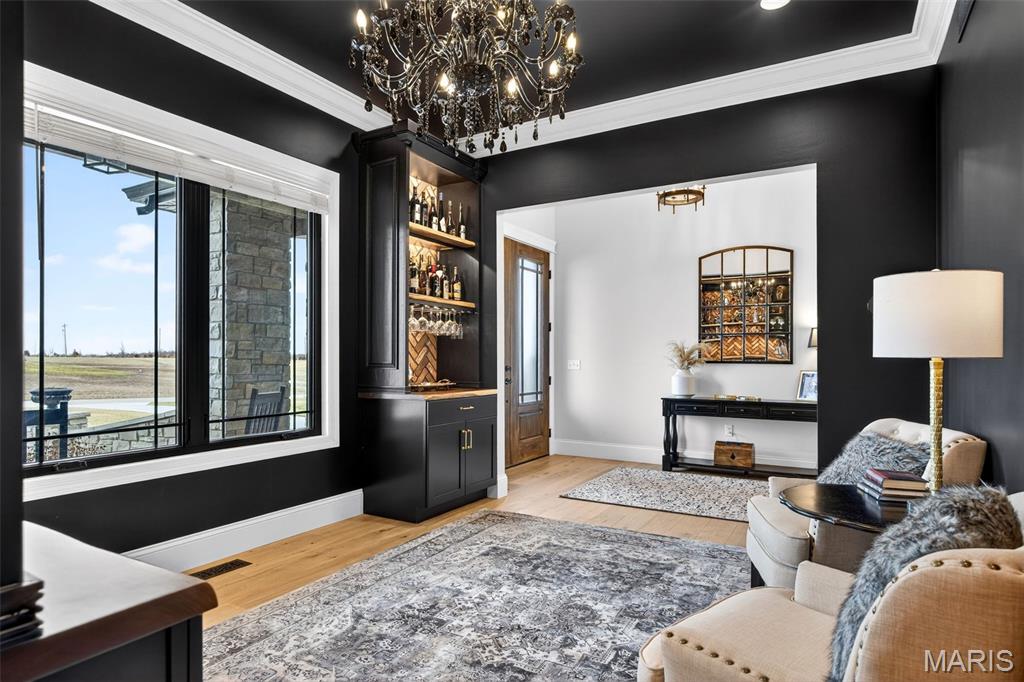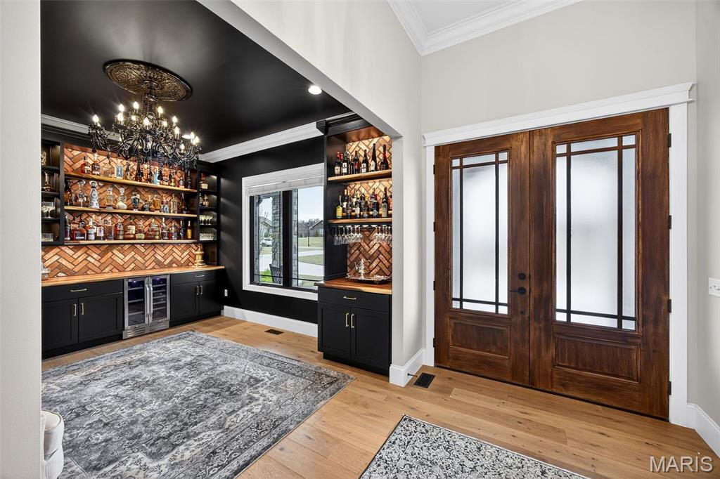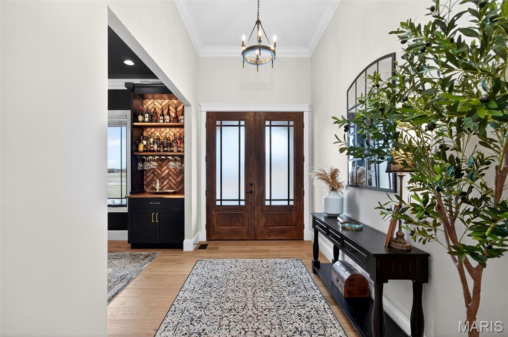 Refined Luxury in the Heart of Wine Country! Nestled on 3.1 impeccably landscaped acres featuring fenced backyard with serene lake views, this exceptional estate offers an unparalleled blend of elegance, craftsmanship, and modern comfort. Designed to impress at every turn, the residence seamlessly integrates refined indoor and outdoor living spaces — perfect for both intimate gatherings and grand entertaining. The stately brick and stone facade complemented by lush landscaping and striking stone wing walls that welcome you from the circular drive to the grand double-door front entry. Inside provides over 7,000 sq ft with 4,896 sq ft of finished living space showcasing exquisite attention to detail. A desirable split-bedroom floor plan is enhanced by custom millwork, rich hardwood flooring, soaring 10- and 12-foot ceilings, and transom windows that allow in natural light. The great room and hearth room anchor the home with dramatic floor-to-ceiling stone gas fireplaces, creating warmth and architectural presence. The gourmet kitchen is a true centerpiece, featuring dual oversized islands, custom cabinetry, stainless steel appliances, granite countertops, and a designer backsplash. A butler’s pantry connects seamlessly to the dining area, while a walk-in pantry and spacious mudroom off the attached garage add everyday functionality without compromising style. Car enthusiasts and hobbyists will appreciate both the oversized attached and detached three-car garages. The 36 x 40 detached garage has a wood burning stove and even a finished loft — ideal for a studio, private office, or additional hobby/storage space. Built with both comfort and efficiency in mind, the home includes dual-zone HVAC and tankless water heaters. Ideally located just minutes from Lake St. Louis and the rolling vineyards of Augusta Wine Country, this estate offers the tranquility of a private retreat with convenient access to premier dining, recreation, and wineries. Showings begin Wednesday March 4th.