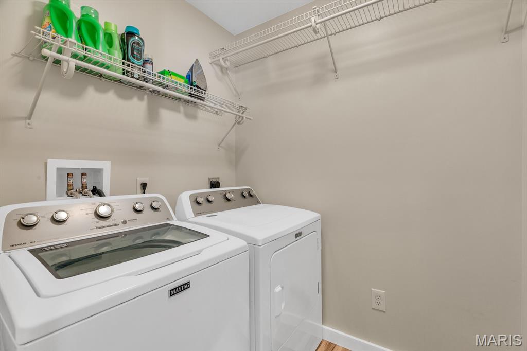 This is the kind of townhome buyers hope for — updated, dialed-in, and genuinely cared for. The main level feels open and easy, with hardwood floors throughout and natural light filling the space. The layout flows effortlessly from the living room into the kitchen and breakfast area, where stainless steel appliances and a breakfast bar make everyday living simple. Refrigerator, Washer & Dryer Stay! Upstairs, the primary suite offers dual walk-in closets and a private bath and a generous vanity. A second spacious bedroom (perfect for guests or a home office), full hall bath, and second-floor laundry make the layout practical and efficient. New LVP flooring upstairs (2024) gives the upper level a fresh, current feel. Major updates are already handled, including a newer maintenance-free deck and railing (2021), new light fixtures (2021), and a new furnace and A/C (2023). The lower level is clean, spacious, and ready for whatever you envision, complete with a bathroom rough-in. Buyers can move in without a looming project list. Community amenities include a pool, basketball courts, pond, and playground, with exterior maintenance handled for you. Conveniently located near highways, shopping, restaurants, and served by Prairie View Elementary, Frontier Middle, and Liberty High. Updated. Practical. Easy living. This one just makes sense.