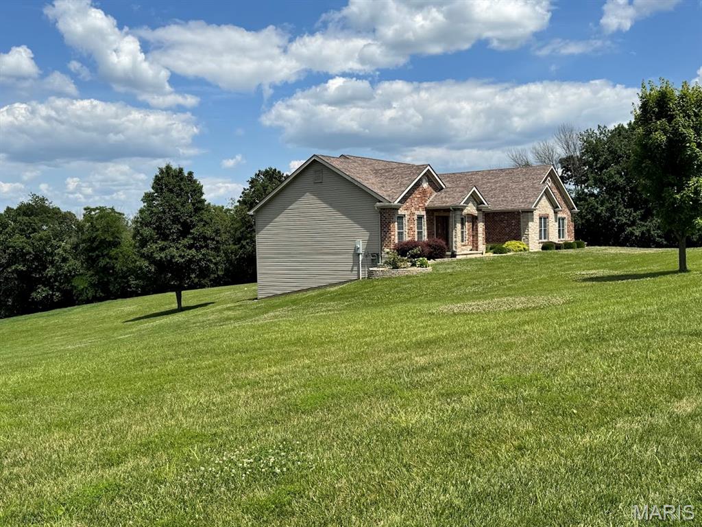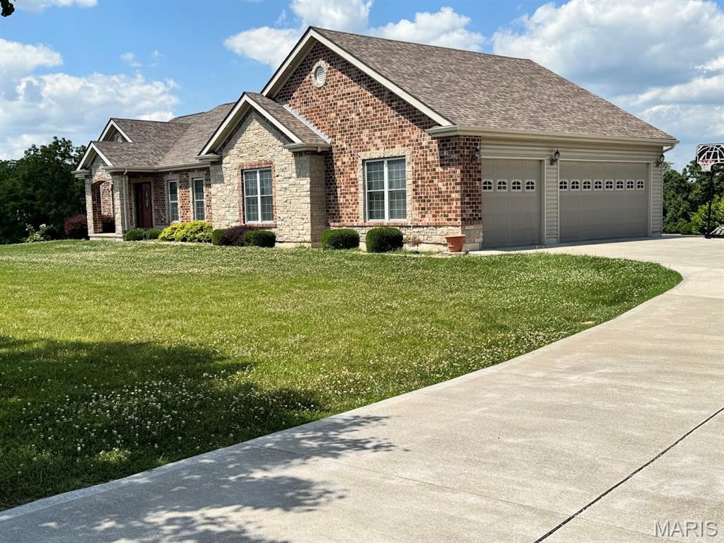 Continue to show! Welcome to this spacious and inviting atrium ranch, beautifully situated on 3 picturesque acres. Featuring a timeless brick and stone exterior, this home offers classic curb appeal paired with the peace and privacy of a scenic, country-like setting. Step inside to a bright, open floor plan with a desirable split-bedroom layout offering added privacy for the primary suite. This 5-bedroom, 3½-bath home provides plenty of space for family, guests, or a home office. The spacious master retreat includes ample closet space and a private bath, creating a comfortable place to unwind. A stunning wall of atrium windows fills the home with natural light and showcases the beautiful surrounding landscape. Step out onto the covered deck, perfect for entertaining or simply relaxing while enjoying the peaceful views. The finished lower level features two walkouts to the backyard, bringing in even more natural light and offering additional living space for recreation, guests, or hobbies. Additional highlights include a spacious 3-car garage, generous living areas, and a roof that is only 3 years old. Geo Thermal still has 7 years of warranty. Home is being sold AS-IS; however, the sellers are offering a home warranty with an acceptable offer, providing added peace of mind for the new owner. Don’t miss this opportunity to own a rare property offering acreage, privacy, and room to grow!