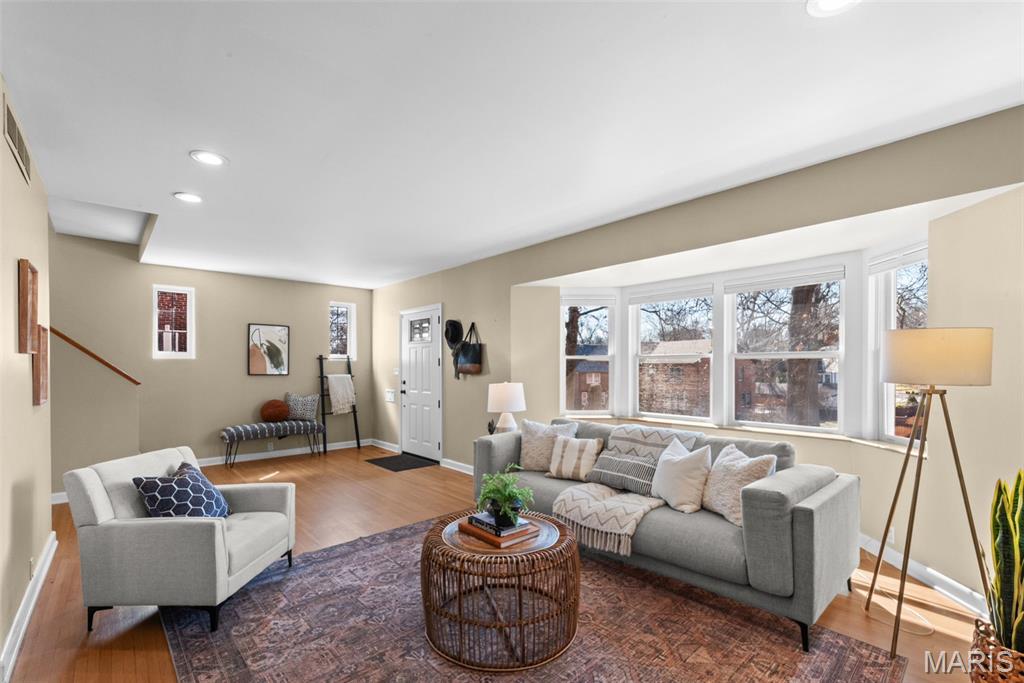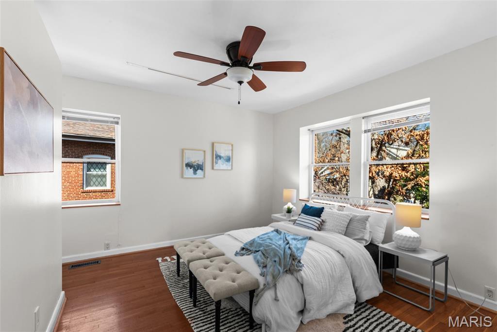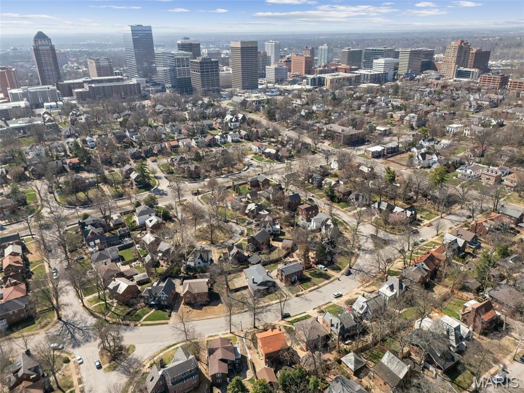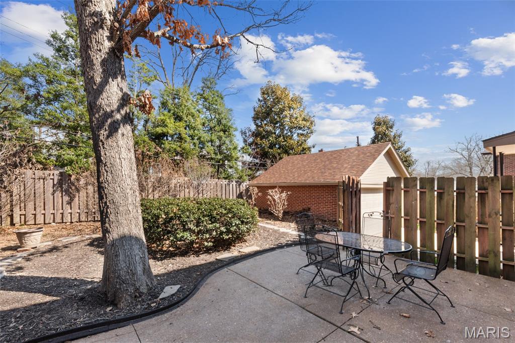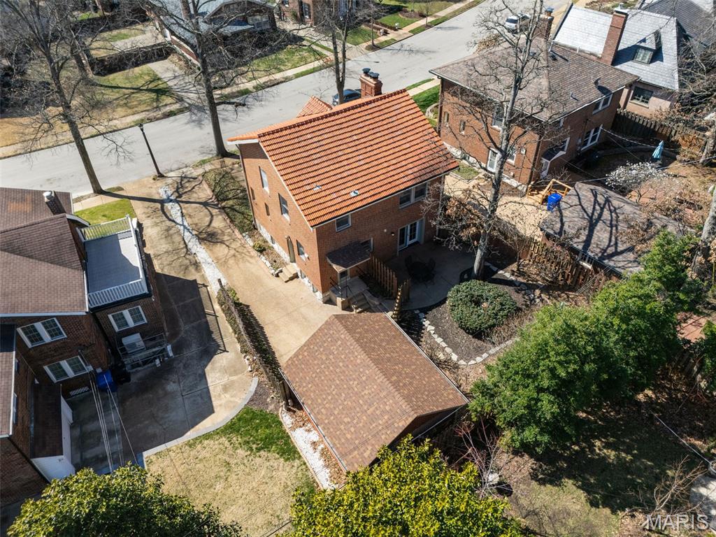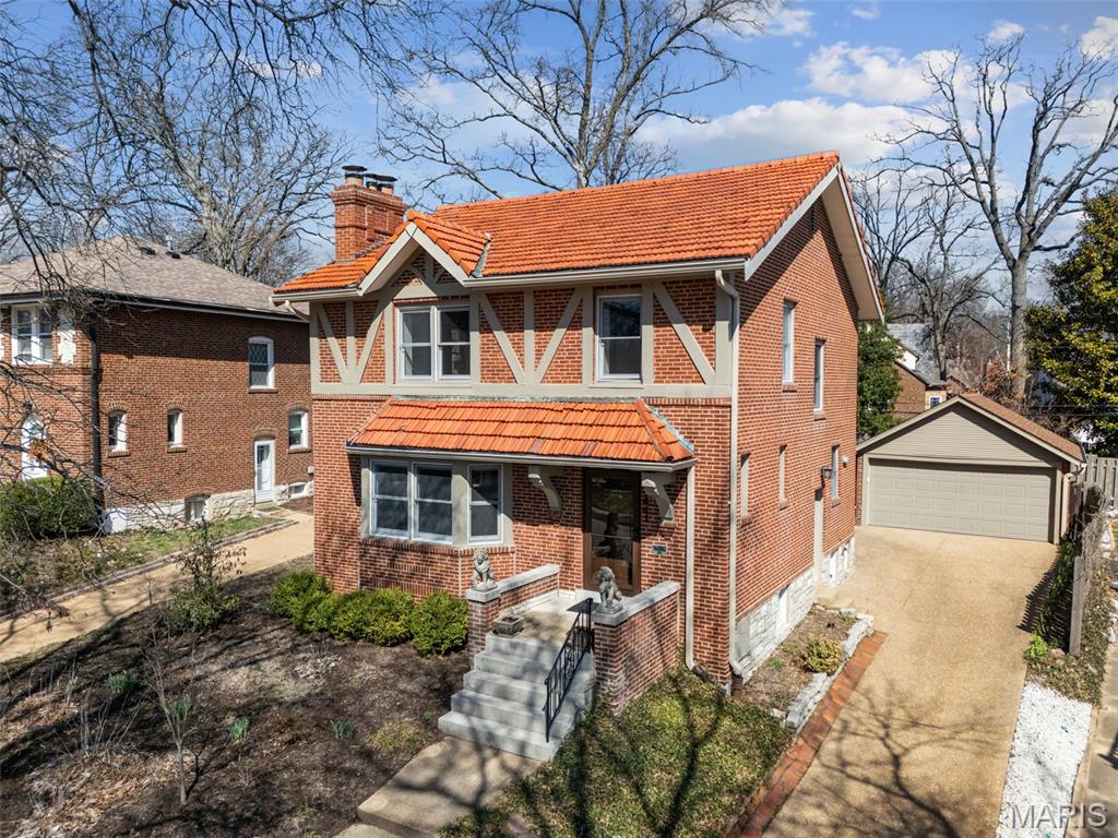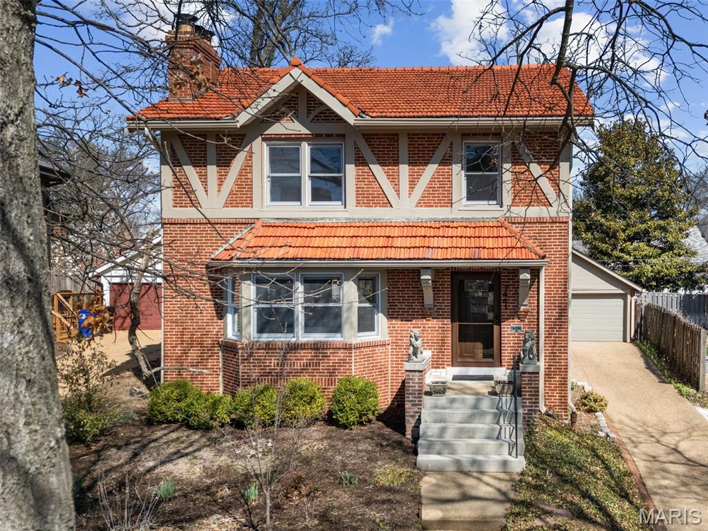 University City Tudor in the fabulous Alta Dena subdivision! The stunning neighborhood with tree-lined streets is artfully filled with an amazing blend of classic architecture, highlighting some of St. Louis' most stunning homes. Solid oak hardwood flooring throughout both floors provide comfort and warmth while standing the test of time. Welcoming kitchen with newly installed quartz countertops and stainless appliances is a great place to form memories with loved ones while preparing meals together. Spacious living room with gas fireplace and bay window boasts a stunning view of the downtown Clayton skyline. The adjacent dining room provides great flow for family living & for entertaining your prestigious guests. Second floor with 3 bedrooms and a full bathroom with separate tub & shower. Backyard with concrete patio and privacy fencing is a great setting to unwind after a long day. Detached brick garage offers ample space for parking and workshop / storage area. Professionally installed in 2023, all exterior entry doors are top grade, including double patio door. New house gutters and garage roof 2022. High efficiency HVAC system provides real energy savings. The beautiful exposed aggregate driveway allows tandem parking for several vehicles. Maturely landscaped front and back yards with a variety of native plantings minimize the expense and consistent need for mowing. Exceptional location with optimal access to downtown Clayton is ideal for working professionals seeking an active lifestyle while living in the heart of our beloved STL.