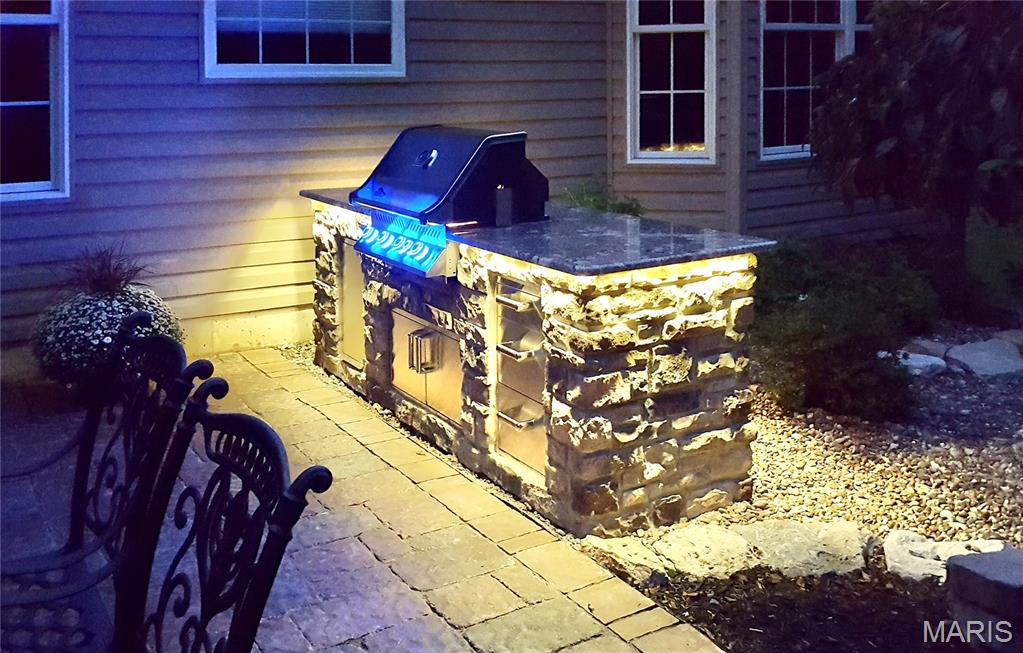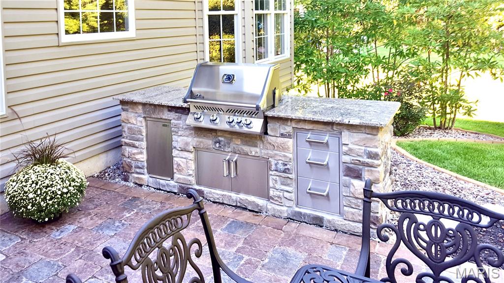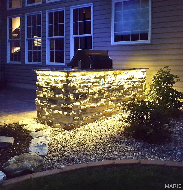 Multiple offers received. Please submit your highest and best by ASAP. Welcome to 2042 Paul Renaud Blvd! A meticulously maintained, custom-built Modern Executive Ranch home. Featuring a timeless brick-and-stone exterior design that is built to last, and delivers BIG on eye-catching curb appeal! Located in Wyndgate Forest, a sought-after neighborhood consisting of larger, high-quality custom built homes. This home is perfectly situated for continuous year round scenic views, and is connected along the rear property line to more than 16 acres of wooded common ground and a winding creek! Professionally landscaped property with in-ground sprinkler system (front and back yard) for a perfectly lush green lawn. While you're letting the sprinkler system take care of the grass, relax in the shade on the custom screen porch addition and watch the deer walking along the creek. Hang out with family and friends on the custom outdoor patio featuring a granite, stainless steel and stone outdoor kitchen, ready for parties and BBQ's. The home provides 4,359 sq ft of finished living space, 12 foot high ceilings in the main living areas, 4 bedrooms, 3 and 1/2 bathrooms, plus a main floor bonus room currently used as an office, easily used as a 5th bedroom if desired. Other features include a large chefs kitchen with stainless appliances, double ovens, 42" custom cabinetry and granite countertops. The Kitchen is wide open to the Breakfast room and Hearth room, spacious and bright with optional transom windows throughout, all are equipped with remote control sun shades. The wood burning fireplace has been upgraded with premium gas logs. Building mechanicals are updated for peace-of-mind with a new roof, updated dual zone HVAC systems and dual 50 gallon water heaters. The spacious primary suite provides 2 walk-in closets and gorgeously renovated en suite bathroom - with awesome walk in shower! The professionally finished lower level provides even more living space with a full bath, large open family room/game room flex-space, high ceilings and a great fitness room! Tons of room for all your stuff, with two massive connected storage areas in the unfinished portion of the basement, and even more storage in the expanded / oversized three car garage! See listing attachments uploaded for more info including; a prior survey, list of upgrades, floor-plan drawing, sellers disclosure, and more.