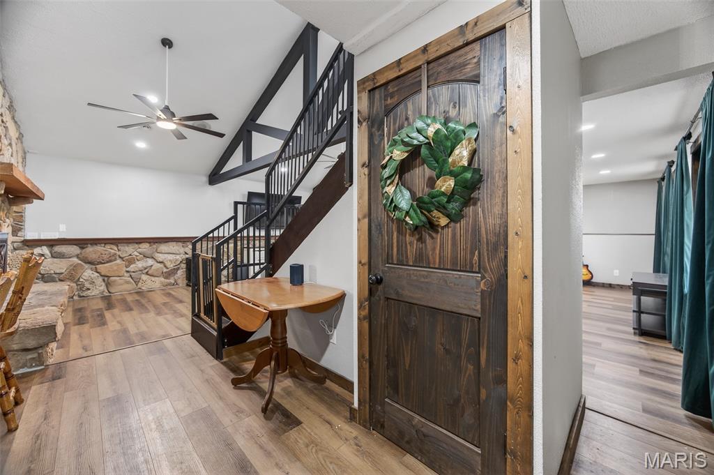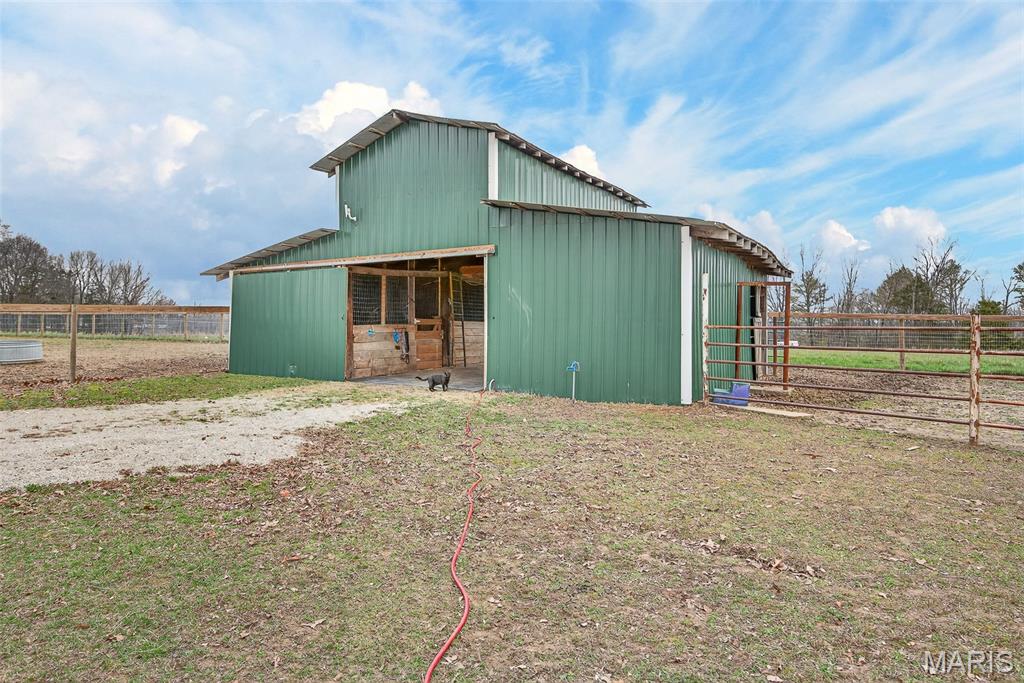 Welcome to this stunning, remodeled home where rustic charm meets modern comfort. The impressive great room showcases soaring ceilings with exposed beams, abundant natural light, stained glass and a striking stone fireplace—creating a warm and inviting gathering space. The kitchen provides eat-in space with a bay window to overlook a fenced yard. Thoughtful updates throughout the home blend style and functionality, offering true move-in-ready convenience, along with useful little nooks for all of your needs. The primary suite is located on the main floor, along with an additional bedroom—ideal for guests or multi-generational living. Upstairs, you’ll find three additional bedrooms plus a dedicated office, providing flexibility for remote work, hobbies, or growing households. Step outside to enjoy a property that is equally impressive. The newly renovated barn features paddocks and water access, making it well-suited for livestock or equestrian use, as well as WiFi so you can easily stay connected to work/music/etc while outside. Say the words and have the chickens and goats stay right here for you! Additional outbuildings include a detached garage and a poultry coop, offering versatility for hobby farming, storage, or workshop space. A new lagoon system has recently been installed, providing added peace of mind and long-term value. Conveniently located just off Highway NN, this property allows for an easy commute to town or quick access to Interstate 44, while still offering the peace, privacy, and space of country living. Imagine stepping outside to pick cherries and blackberries, right here where they are already growing! This exceptional property offers the perfect combination of modern updates, functional acreage amenities, and timeless character—ready to accommodate both comfortable living and a relaxed rural lifestyle. Don't let this idyllic property slip by!