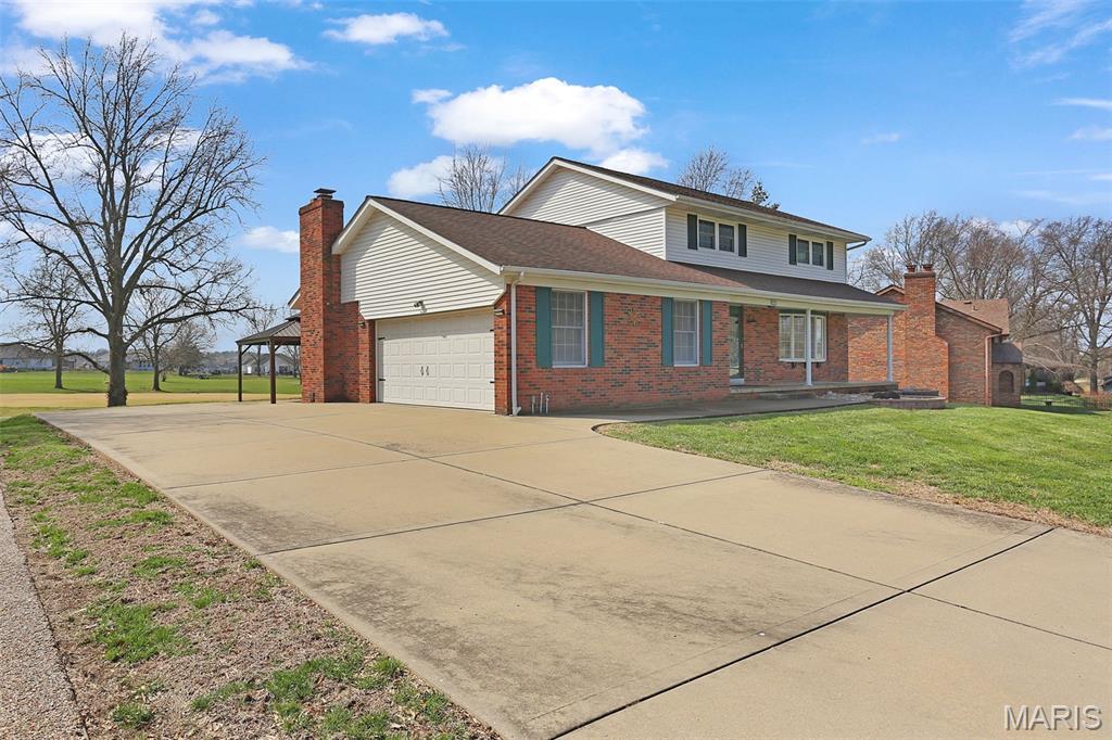 Beautiful 4-bedroom, 4 bath home located on a cul-de-sac in a scenic subdivision featuring a lake and golf course. The property overlooks the golf course and offers abundant natural lighting throughout. Spacious living areas include a living room, family room, and a large kitchen with center island, granite countertops, stainless steel appliances, and breakfast room. All four bedrooms are located on the second level, including the primary suite with a full bath. The primary suite includes a sliding door that opens onto a balcony overlooking the golf course. The finished lower level includes an additional full bath and provides extra living or entertainment space. Sliding glass doors from the kitchen and family room lead to the backyard featuring two gazebos, beautiful landscaping, and an inground sprinkler system.