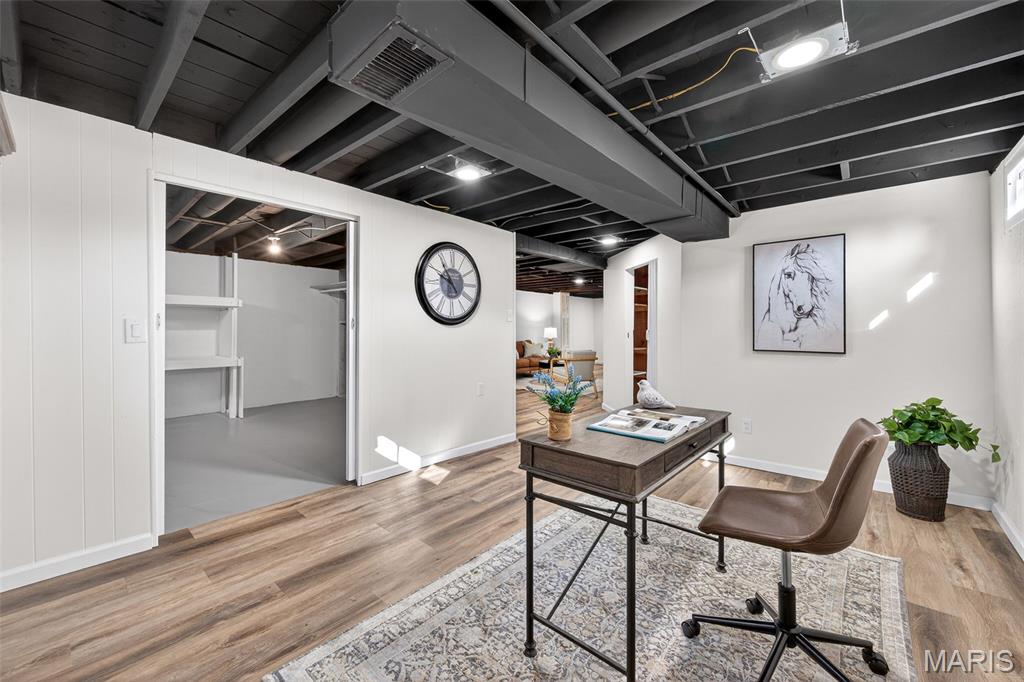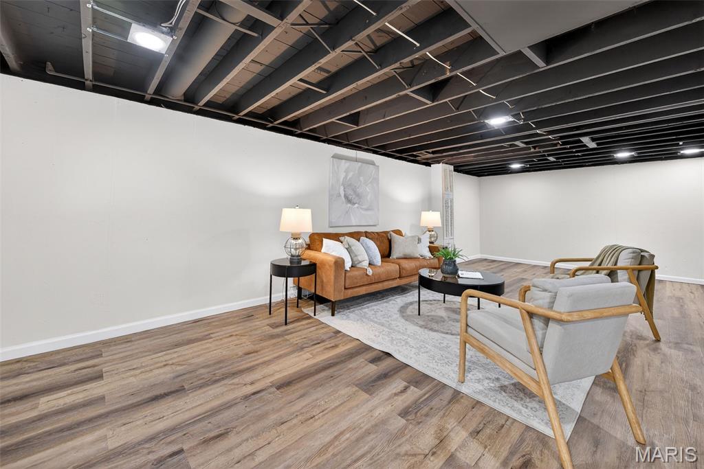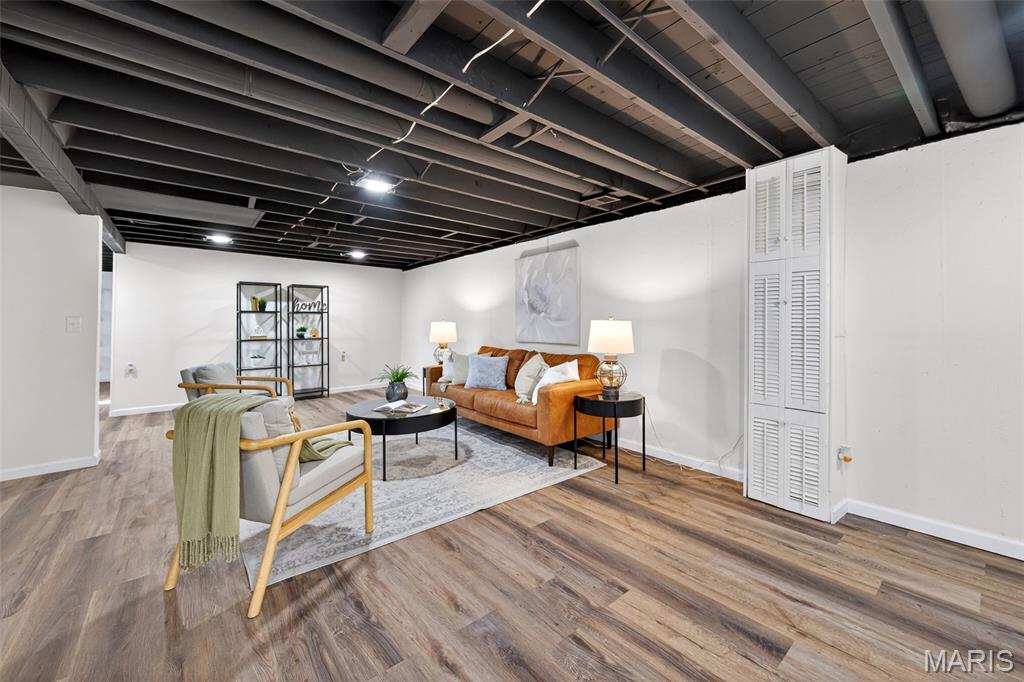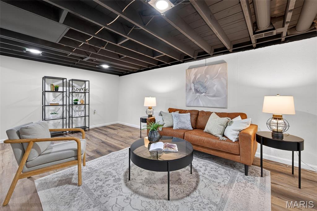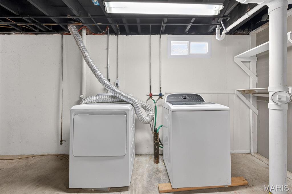**OPEN SUNDAY 1-3PM** Welcome to this charming 3-bedroom, 1.5-bath ranch in the heart of Florissant. Wrapped in low-maintenance vinyl siding and featuring newer windows, you’ll step inside to beautiful hardwood floors throughout. Freshly painted and spotless interior invites you to move in and relax. The brand-new kitchen dazzles with white shaker cabinets, quartz counters, stainless steel appliances, New dishwasher, undermount sink, faucet, garbage disposal & hood vent and pantry. Both bathrooms have been updated with well appointed accessories and style. Downstairs, enjoy 500 square feet of additional finished living space with new luxury vinyl plank flooring, recessed lighting & new windows in your finished lower level. Plenty of unfinished space for added storage. The laundry area comes complete with a washer and dryer. The update list is extensive: New Roof, HVAC (Air Conditioner), plumbing stacks (bathroom and kitchen), freshly poured concrete patio with rock surround and firepit (included). Freshly painted carport and interior with new lighting throughout. This home is the definition of turn key. Move in and enjoy!