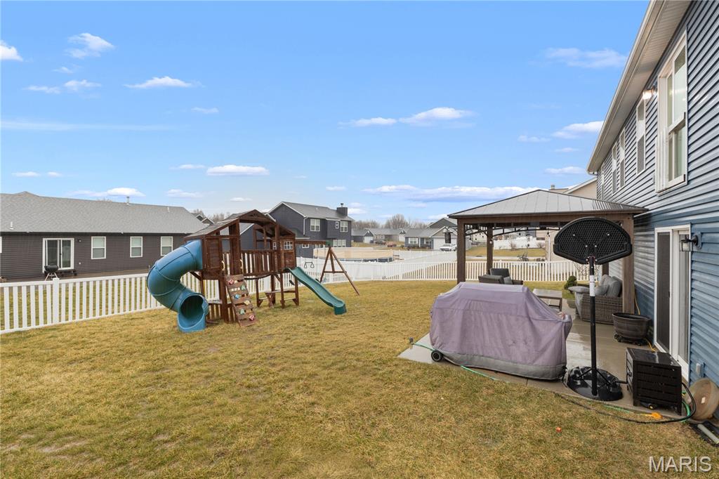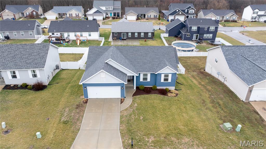 Welcome to 201 Majestic Lakes Blvd — a beautifully maintained 3 bed, 2 bath ranch built in 2021 offering modern finishes and a functional, open layout. This nearly 1,500 sq ft home features wood flooring throughout the main living areas, vaulted ceilings, and abundant natural light. The kitchen is designed for both everyday living and entertaining, with granite countertops, ample cabinetry, and upgraded finishes that flow seamlessly into the spacious great room. Main floor laundry adds convenience, while the primary suite includes a private bath. Outdoor living is where this home truly stands out. The walkout lower level opens to a large 12x24 patio and a beautiful 12x14 roofed gazebo, creating an ideal space for relaxing or hosting gatherings. The fully vinyl-fenced backyard with wide access gates provides plenty of room for outdoor enjoyment. The extra-deep garage offers additional functionality with built-in cabinets, a workbench counter, and added recessed LED lighting — perfect for storage, hobbies, or projects. Located in a desirable community offering amenities such as a neighborhood pool and clubhouse, this home combines newer construction with thoughtful upgrades already completed — allowing you to enjoy the benefits of a newer home without the wait of building.
