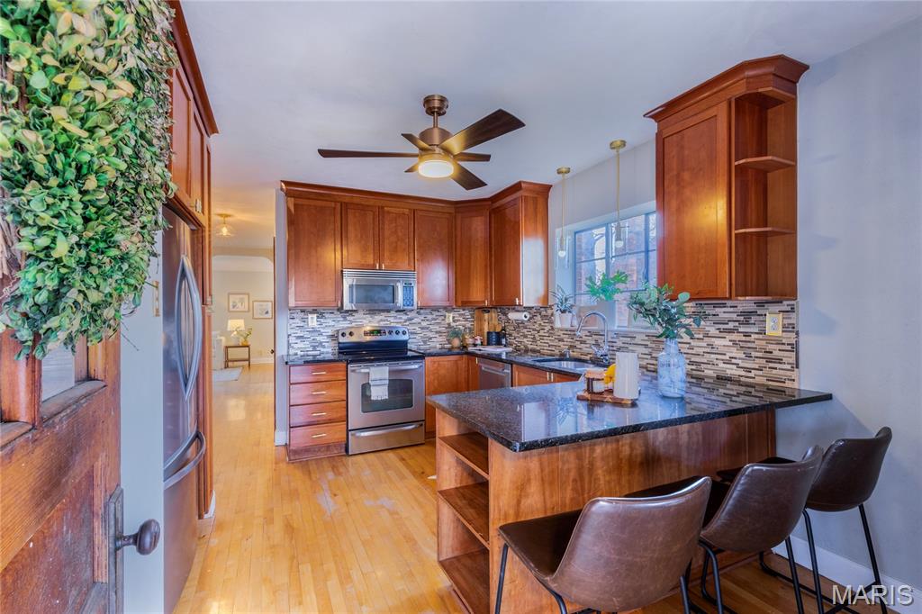 There's so much to love about this St Louis Hills brick beauty! Located on a quiet tree-lined street in such a solid neighborhood. Enjoy being walking distance to Francis Park, Ted Drewes and many more STL favorites down Chippewa. Head inside and enjoy the sun filled living room with freshly re-finished hardwood floors, large windows, TWO coat closets and an open layout to the formal dining room. The kitchen features SS appliances, stone tops, and lots of cabinets. An updated full bath and large bedroom (with beautiful original windows) round out the main level. The 2nd floor is just as dreamy with 2nd floor laundry and a 2nd full bath. Both upstairs bedrooms are a great size and one has a large walk-in closet! Out back you'll find a freshly painted enclosed sunroom, HUGE fenced in yard and a 1-car garage. The basement offers plenty of storage, an offer space + a half bath and old school shower that could be brought back to life. Live here and enjoy all that STL Hills has to offer!