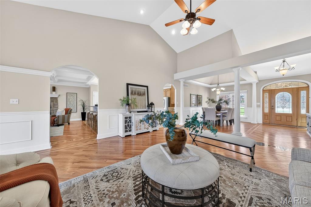 Welcome to desirable Forest Lake Estates and your opportunity to own a beautiful custom built atrium ranch on a spectacular 3.42 acre wooded lot which includes a shared lake. Situated on a quiet cul-de-sac and graced with stunning curb appeal, this home has been meticulously maintained and has some amazing features including: elegant MUST SEE hardwood floors, custom millwork & trim, vaulted-coffered & tray ceilings, open concept kitchen-breakfast & hearth area, 2 gas fireplaces, screened-in deck with a scenic tree line & lake views, oversized 31 x 27 finished & insulated 3 garage, and so much more. Enjoy over 4200+ sq ft of living space where each room offers amble size and is encompassed by excellent natural light from all of the windows. If this home wasn't enough, spoil yourself with a shared lake and enjoy fishing or playing in the water on those scorching hot Missouri days. Conveniently located minutes away from parks, wineries, dining, shopping, and in an excellent sought after Francis Howell school district. Thank you for your interest!