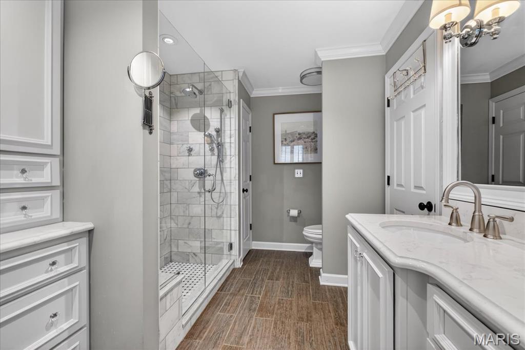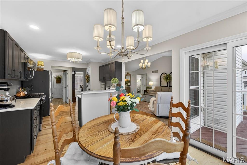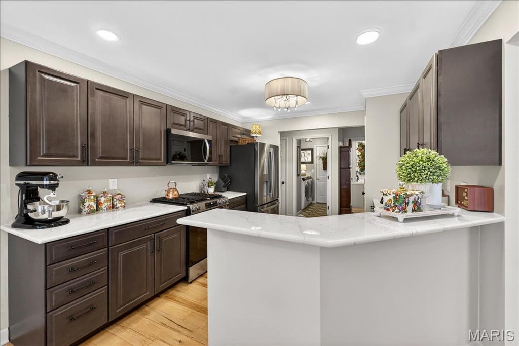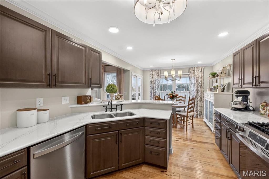 This stunning home that is meticulously cared for is a dream for ANY buyer. This home screams designers touch when you walk through the front door into the foyer! The Dining Room boasts a tray ceiling and custom built ins for convenient storage with overflow of kitchen dishes & appliances, vaulted ceilings in the Living Room with a fireplace makes this space airy but sooo cozy! The breakfast room feeds off the Living Room for great entertainment use and is adjacent to the newly remodeled kitchen! Split bedroom floor plan makes this home SO ideal for ANYONE from empty nesters to a house full!! Primary Bedroom has an ensuite that is newly remodeled with a tiled walk in shower and tons of custom cabinetry. The additional 2 bedrooms on the main level are ample sized with great closet space and light. Convenient main floor laundry so no steps required!! The Finished basement area has finishes are top notch! You step into massive finished space that is currently being used as Family Room/office. This room is flooded with light from the 2 NEW sliding glass doors and the daylight window. You will also find a legal bedroom (recently added) with a full sized daylight window and closet that (currently being used as a craft room) and an additional room downstairs that can be used however you wish(currently being used as a bedroom)! Still plenty of storage left with 2 storage rooms. A rough in conveniently located so a bathroom can easily be installed. This home is an absolute dream with almost 3,000 sf of upgraded living space! And can only be truly appreciated by viewing it IN PERSON. List of updates in the attachments.