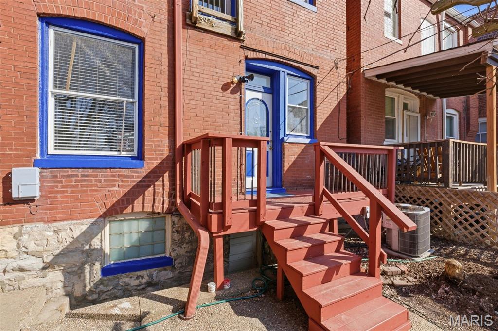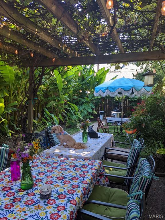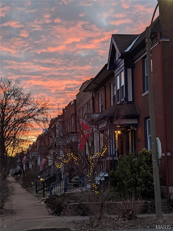 Charming brick two-story just steps from Tower Grove Park blending classic South City character with comfortable everyday living. The covered front porch with the original front door sets a welcoming tone as you enter the home. Inside, the main level features an open, light-filled living and dining area with hardwood floors that carry the warmth and character typical of historic Tower Grove homes. Large windows allow natural light to fill the space, creating an inviting setting for both daily living and entertaining. The kitchen offers ample cabinetry and counter space along with stainless steel appliances and opens directly to the dining room, making it ideal for gatherings or casual meals at home. All three bedrooms are located on the second floor and feature hardwood flooring. The rear primary bedroom offers abundant natural light from its corner location, as well as a Juliet balcony door overlooking the rear yard. The "lounge" bedroom includes a decorative vintage fireplace with summer screen and dual closets, adding both charm and practical storage. The backyard provides a private outdoor retreat with a fenced yard, patio area, and grape arbor that offers natural shade in the warmer months. A one-car parking pad adds convenient off-street parking. Located within walking distance of restaurants, shops, and the beauty of Tower Grove Park, this home offers a wonderful opportunity to enjoy one of St. Louis’ most beloved neighborhoods.