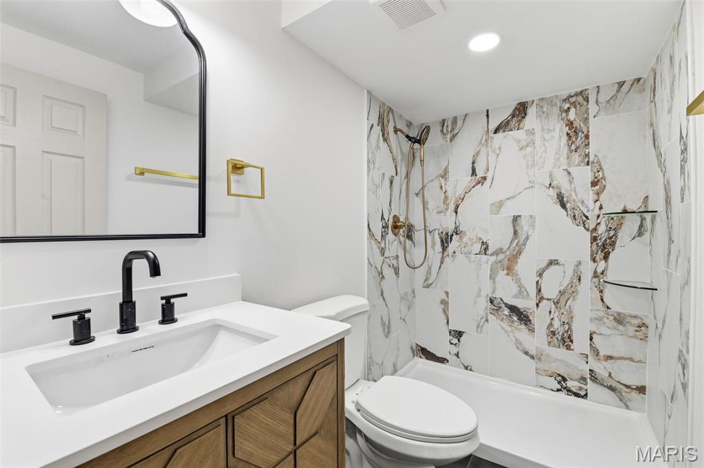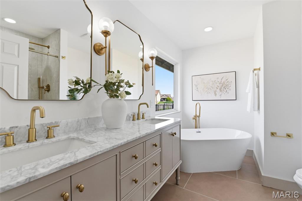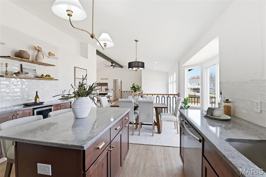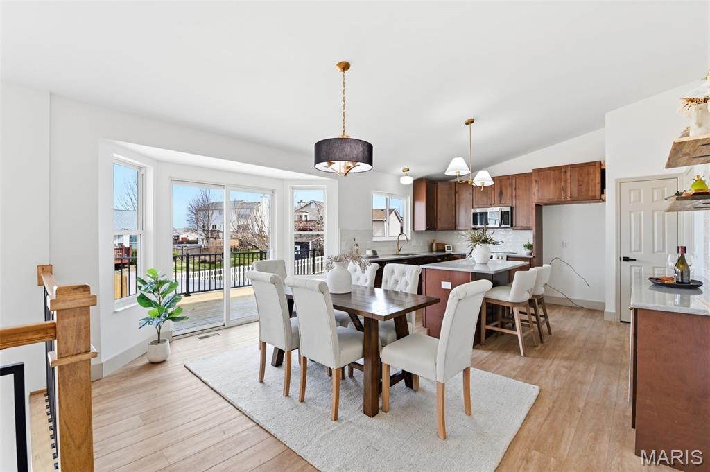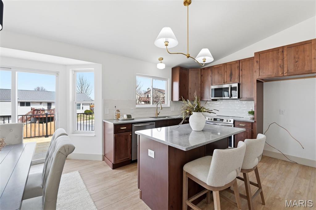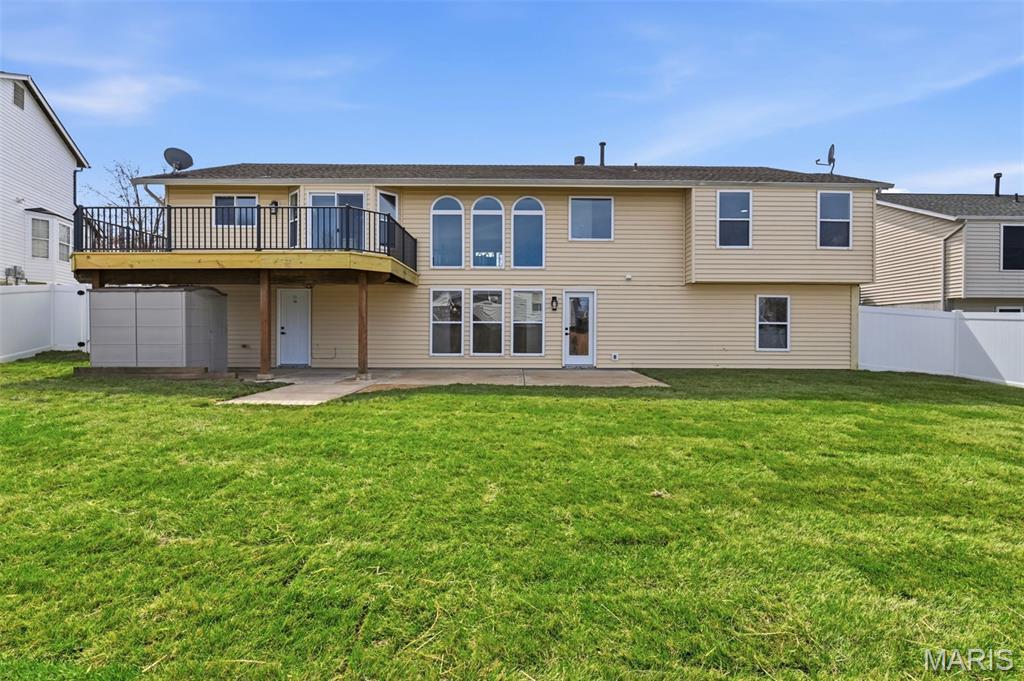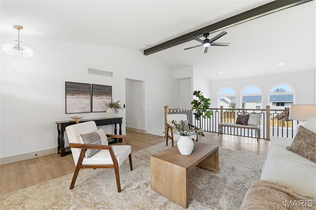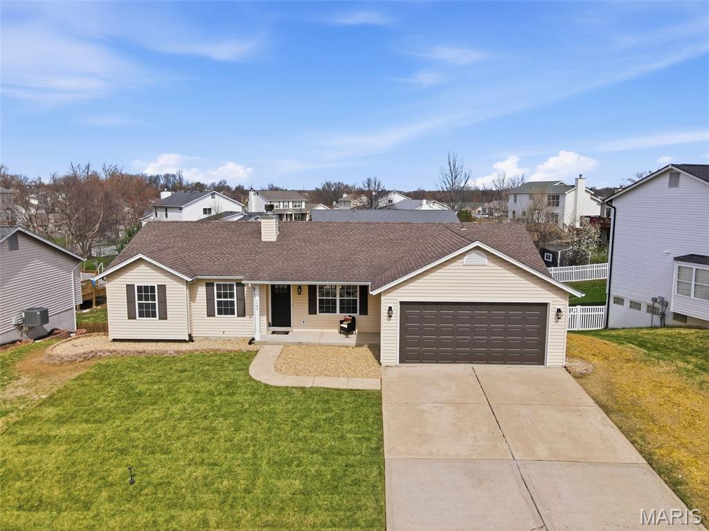 Let the showings begin! You don’t want to miss…..Stunning Fully Renovated Atrium Ranch with Walkout Lower Level & Fenced Yard! This beautifully transformed Atrium Ranch offers style, space, and thoughtful upgrades throughout. Featuring 5+ bedrooms and 3 fully upgraded baths, this home showcases a gorgeous chef’s kitchen with custom 42" cabinets, quartz countertops, prep/eating island, and a convenient coffee/bar area—perfect for entertaining or everyday living. The luxury primary suite is a true retreat with a walk-in closet, double vanity, freestanding soaking tub, and walk-in shower. The main level features wood-look luxury vinyl flooring, vaulted ceilings, main-floor laundry, and an open wrought-iron staircase overlooking the atrium, creating a bright and dramatic living space. The finished walkout lower level expands your living area with a spacious family/recreation room with fireplace, two additional bedrooms, plus an office or bonus room or even storage ideal for guests, hobbies, or working from home. Walkout Lower Level for you to Step outside to enjoy large patio, or 22’ x 12’ deck overlooking the fenced - level yard, perfect for relaxing or hosting gatherings. Additional highlights include new HVAC, quality professional renovation, and a fantastic location in the highly sought-after Francis Howell School District. Move-in ready and absolutely beautiful! Showings begin Saturday 3/14 — schedule your appointment to see this beauty today!