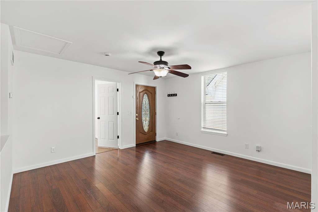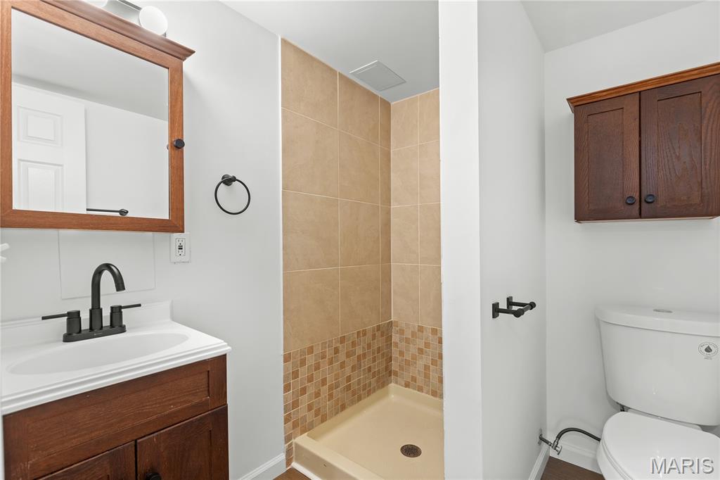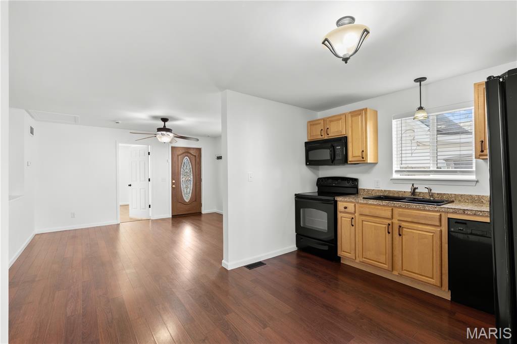 Open house Sunday March 15 is cancelled! Charming and updated 2 bedroom, 2 bath home featuring laminate flooring throughout the main level and finished lower level. The primary bedroom is spacious with walk in closet. The main floor bathroom features a tile floor, tub/shower combination, and large vanity. The kitchen offers granite tile countertops, black appliances, and custom cabinetry, providing both style and functionality. Fresh paint throughout the home creates a clean, move-in ready feel. The finished lower level includes recessed lighting, a spacious second bedroom, and a full second bath, offering additional living space and flexibility. Additional updates include a newer furnace and water heater. Step outside to enjoy the private, fenced backyard complete with a storage shed—perfect for relaxing or entertaining.