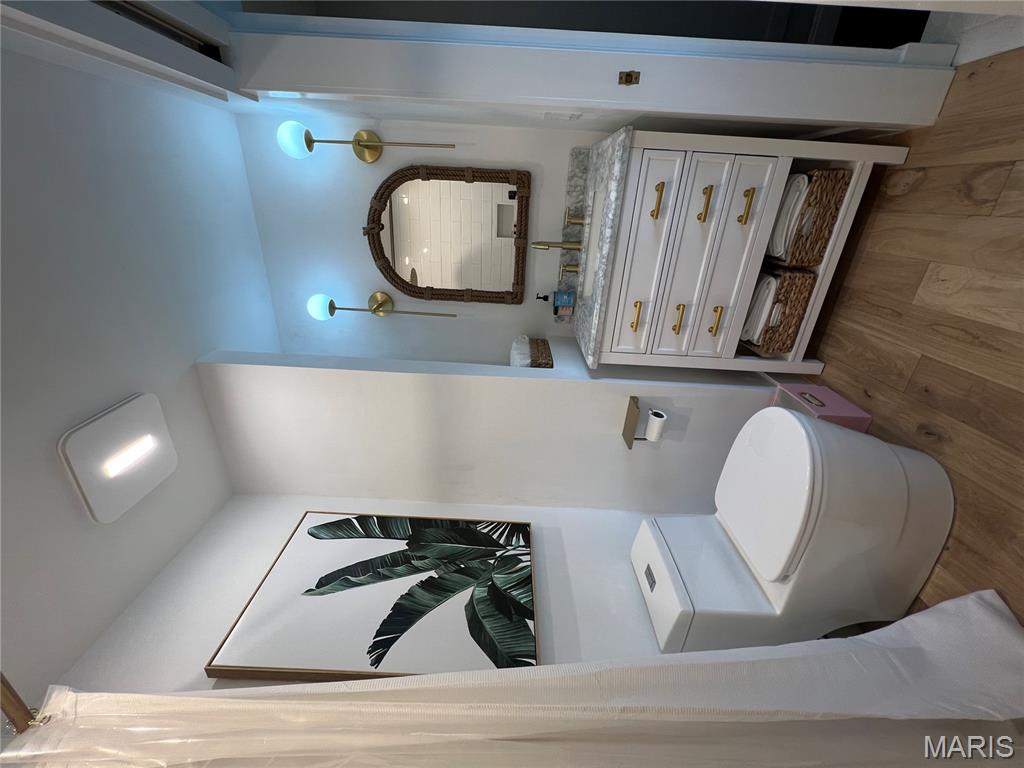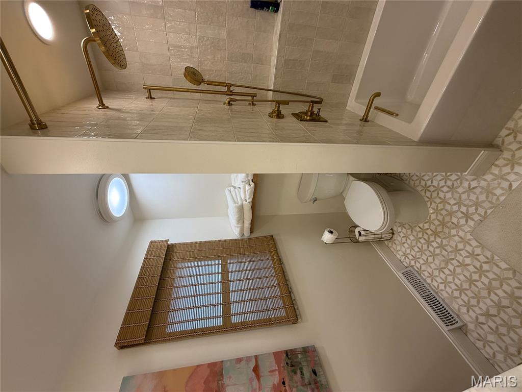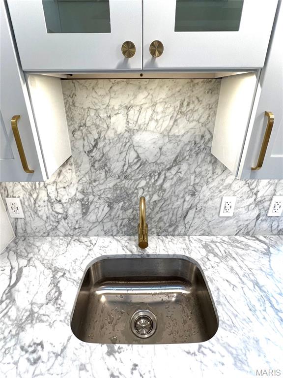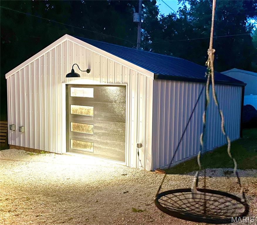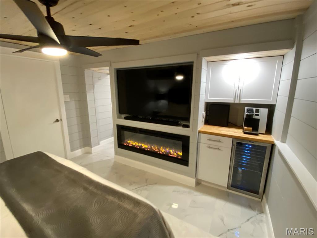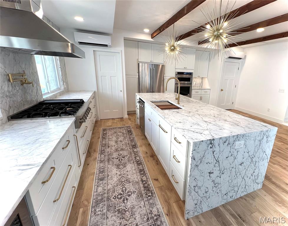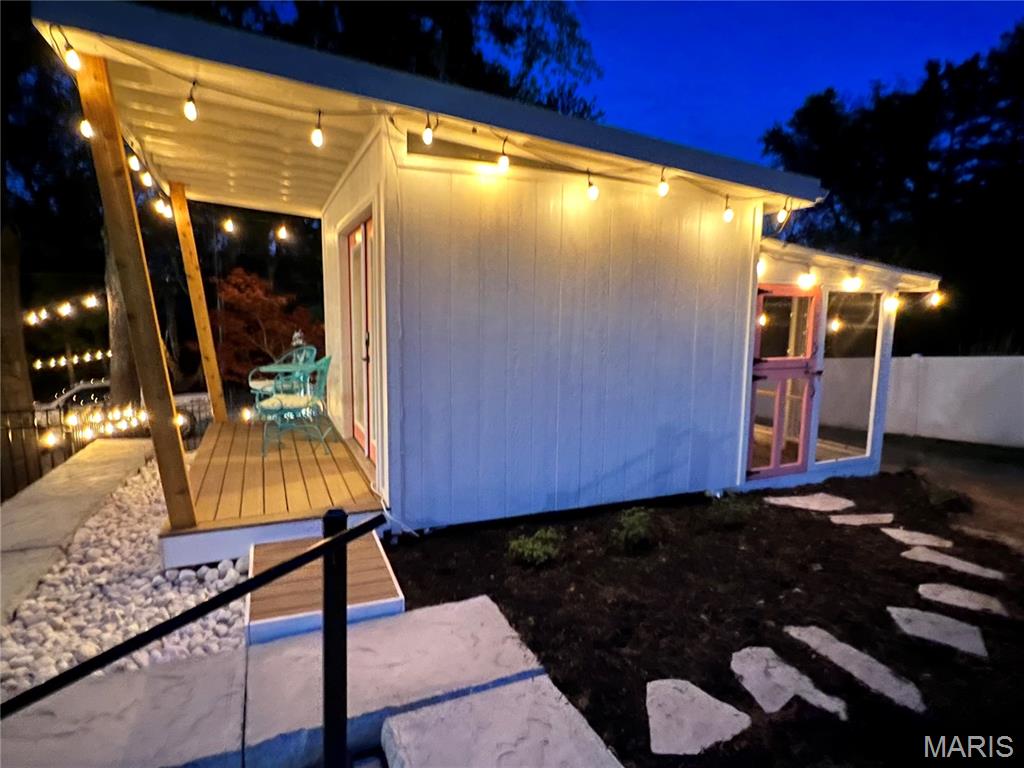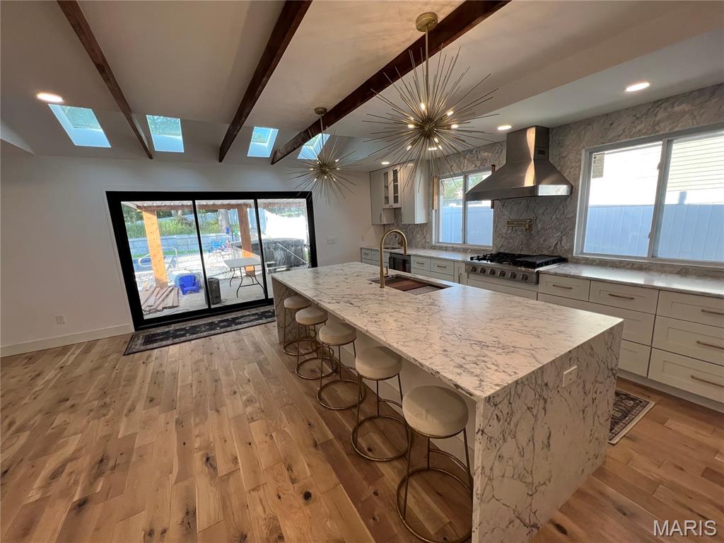 Agent owned. Francis Howell Central High School, unincorporated Saint Charles County. Designer kitchen with waterfall island, real ITALIAN marble backsplash, 6 burner gas cooktop, KITCHENAID wall oven/microwave, drink fridge, pantry cabinets, laundry built in. Outdoor kitchen with built in flat top, sink, and room for additional grill and pizza oven; natural gas so no need to replace the propane ever. 888 sq-ft surface area Saltwater pool with Baha tanning ledge (doubles as kiddie pool and has bubbler), 4 deck jets, sports court designed, HEATED, cartridge filter, travertine coping & patio, surrounded by turf. The lot is huge with a creek contained on the property and adjacent to a large 40+ acres of continuous common ground area in the neighboring subdivision. Basement has a kitchenette, full bath, recreation area with wood fireplace, and a room with closet, electric fireplace, and additional laundry. Large, detached garage or workshop area.